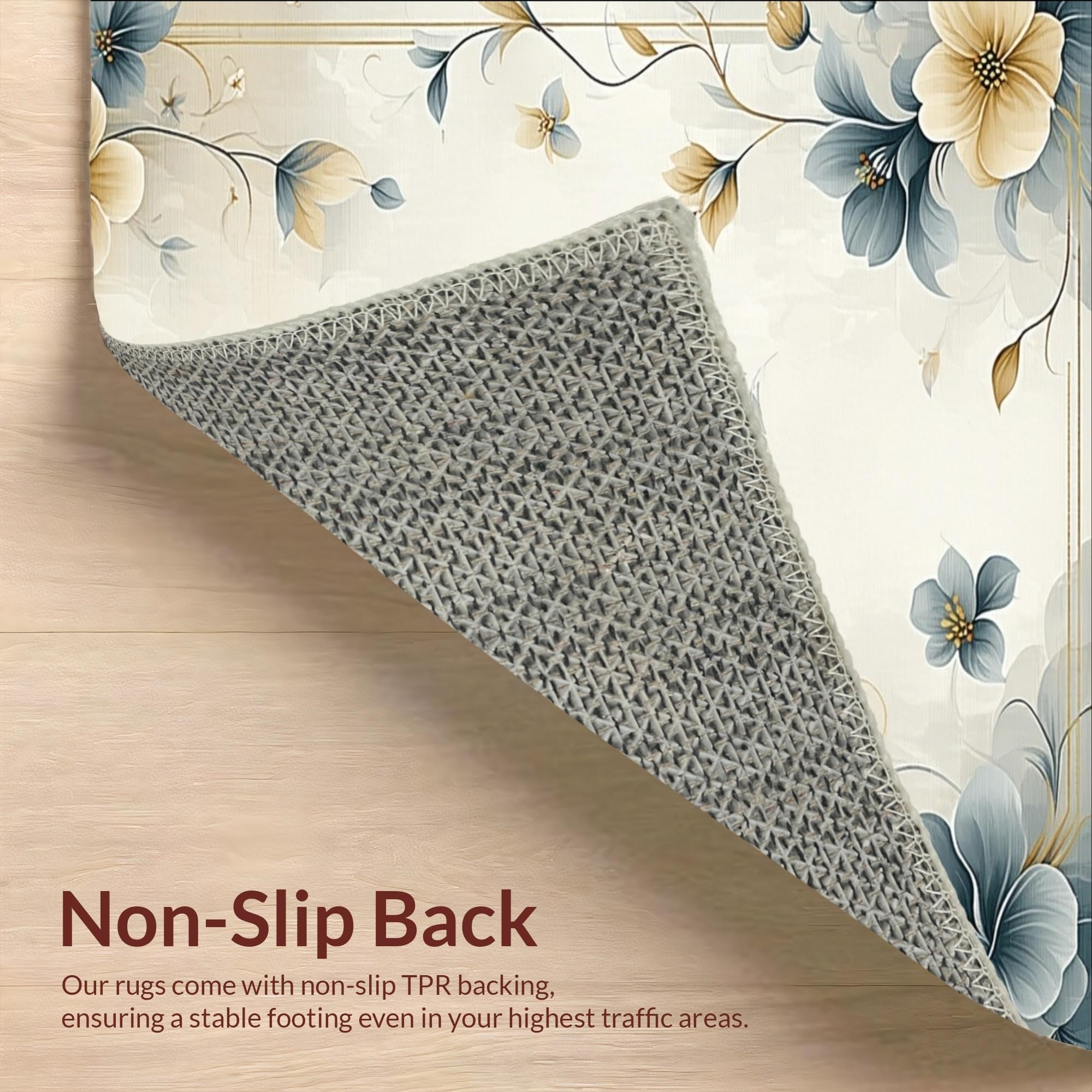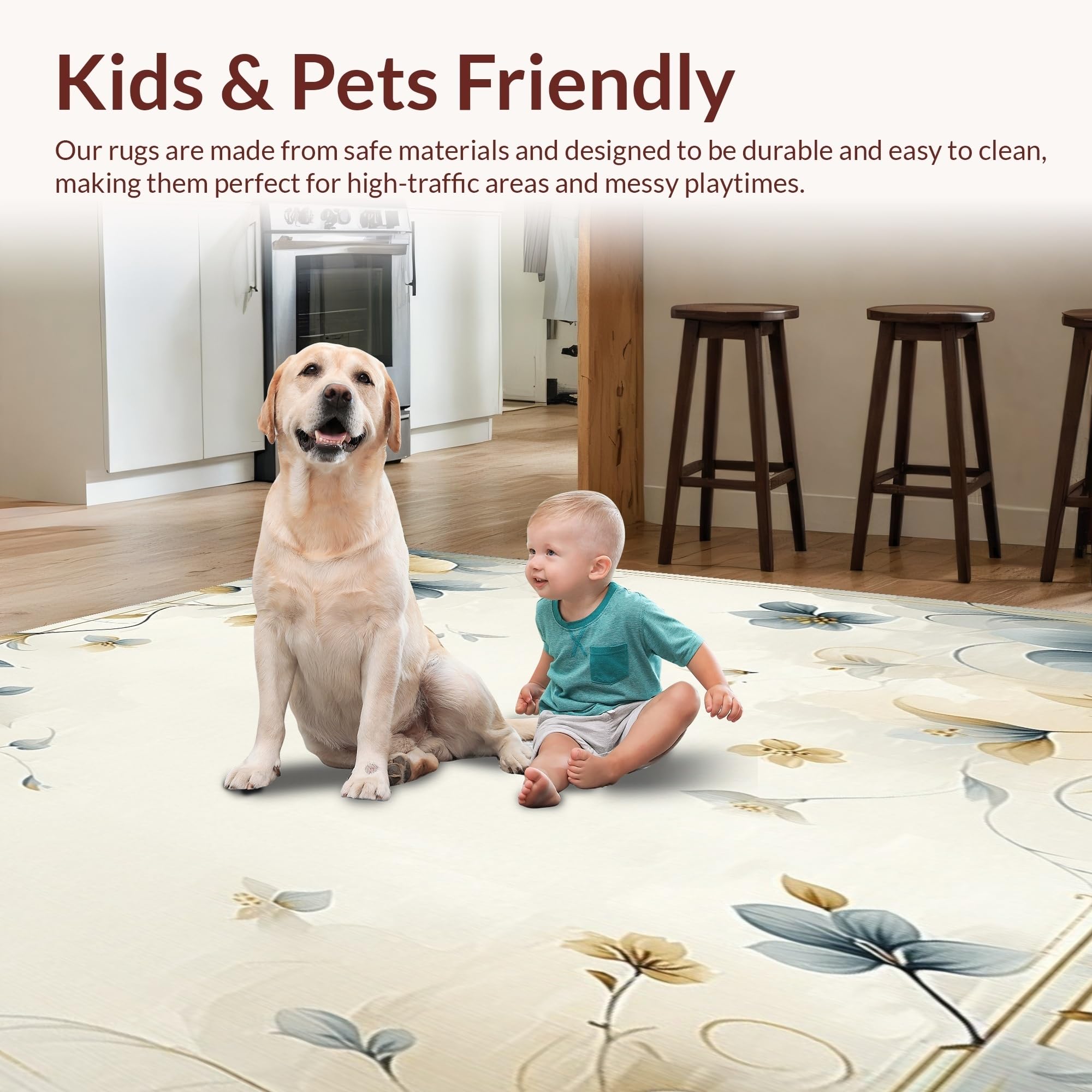 Ultra Soft Area Rug, Non Slip, Stain Resistant, Washable Area Rugs for Living Room, Bedroom, Contemporary Abstract Floral Smoke and Beige Palette Swirling Details(Beige) Overview: