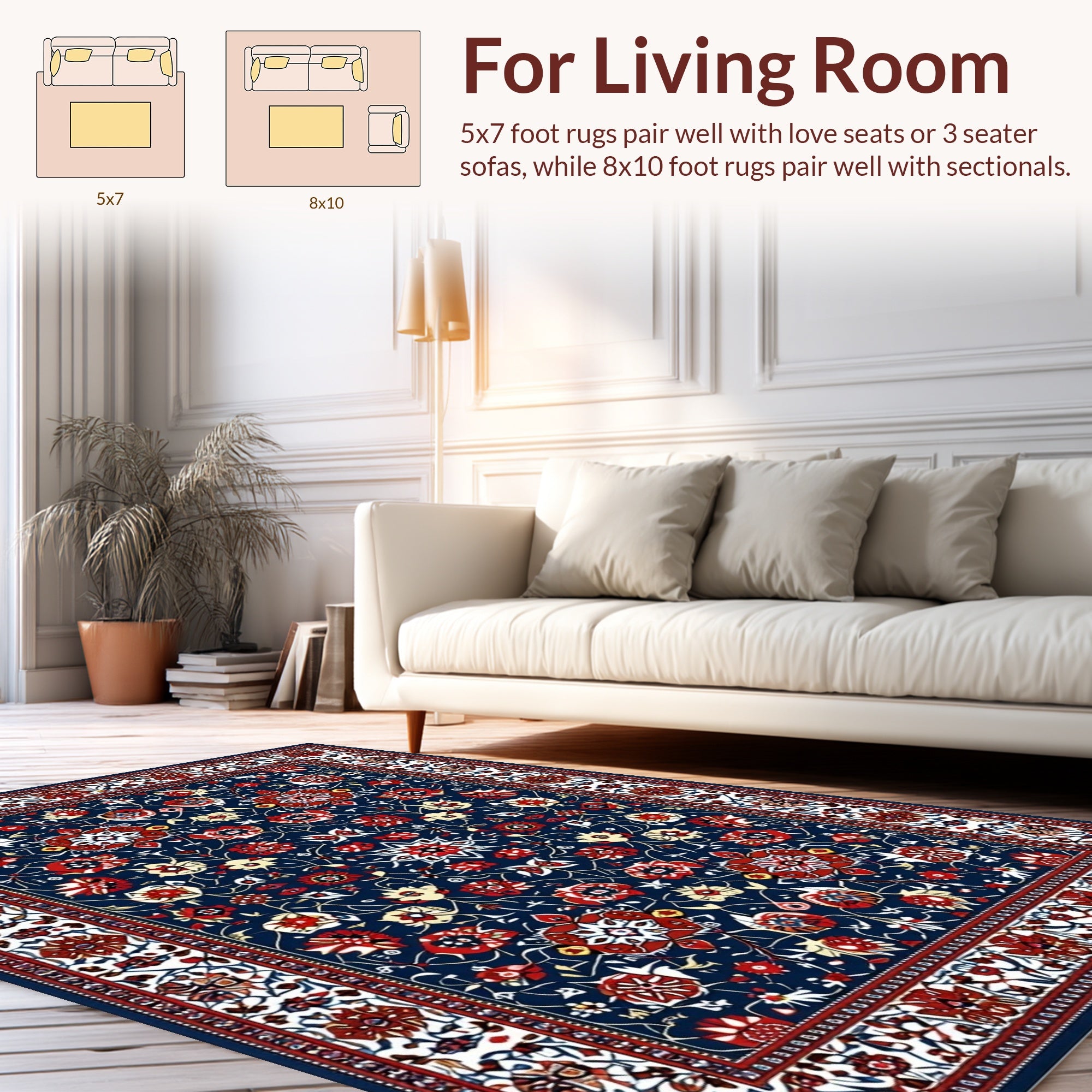 Flatwoven High Traffic Area Rug, Contemporary Abstract Floral Touch, Non Slip, Stain Resistant, Washable Area Rugs for Living Room, Bedroom (Blue) Overview: