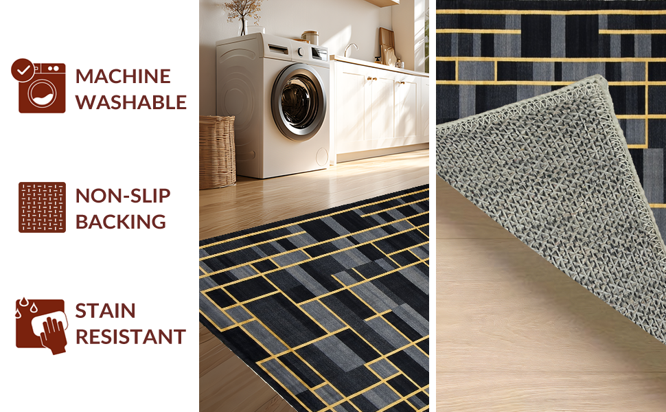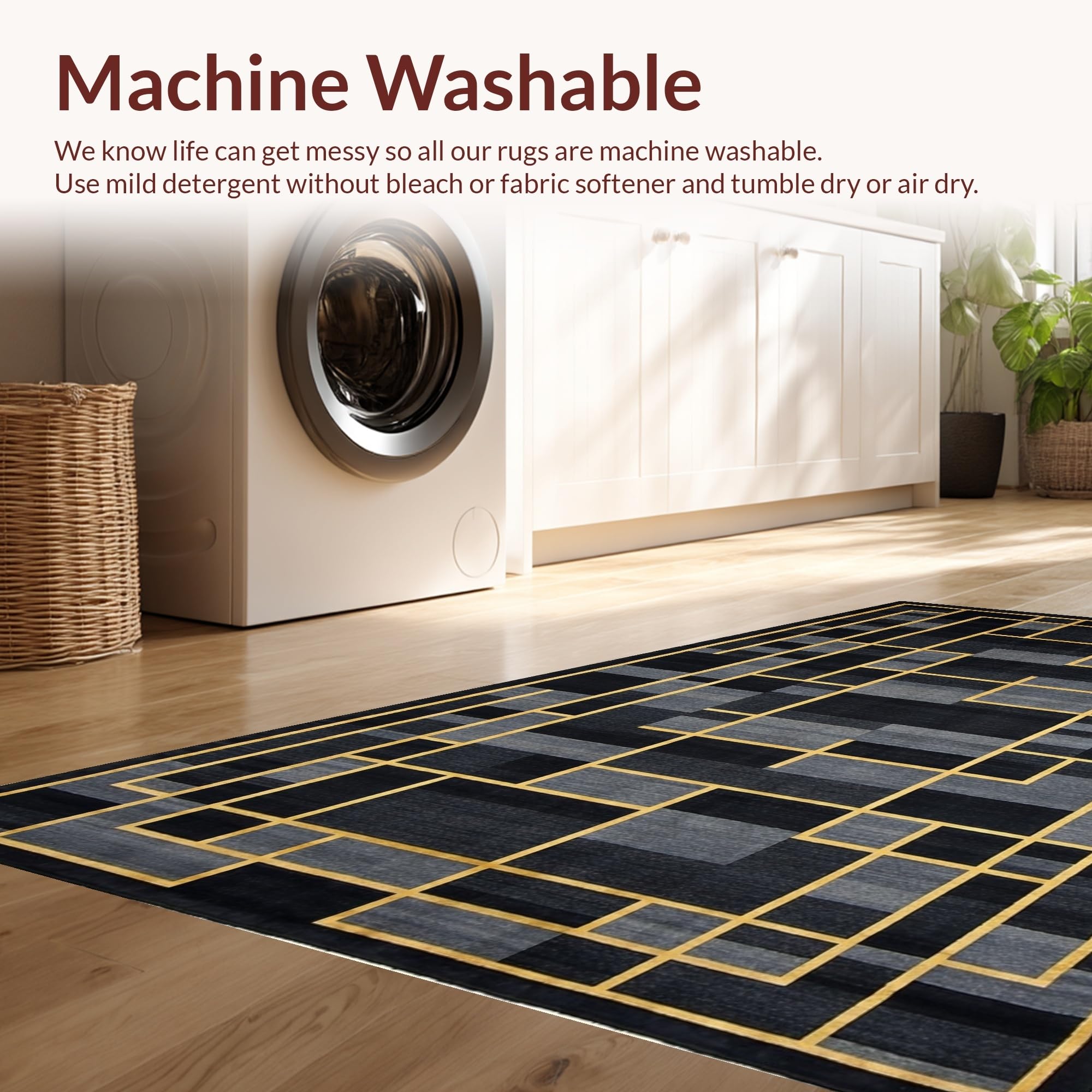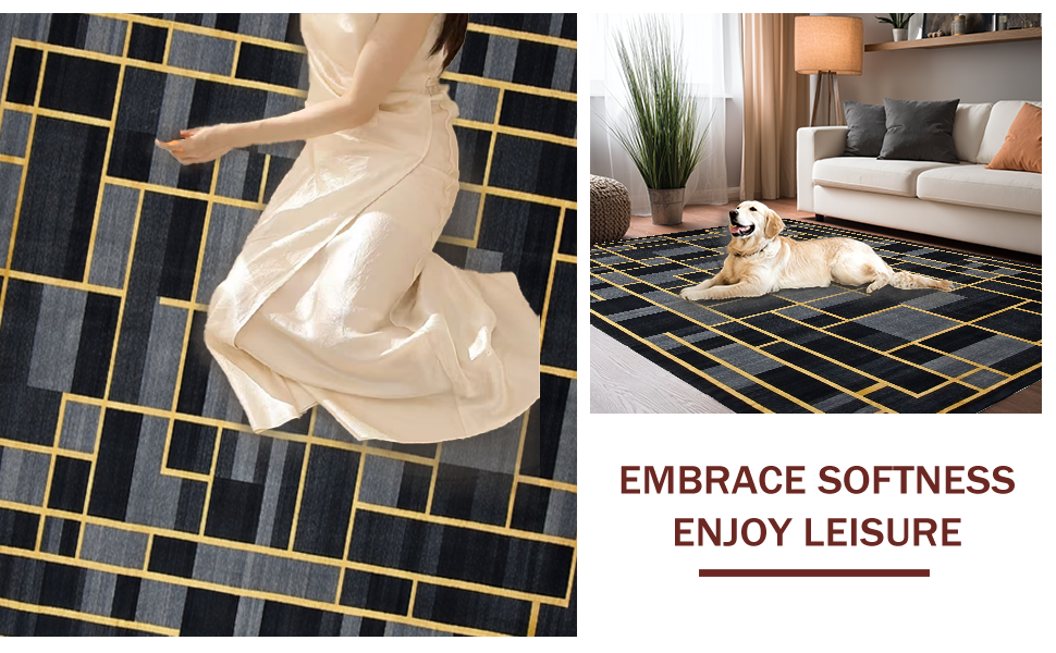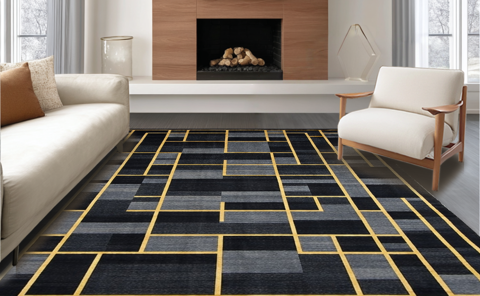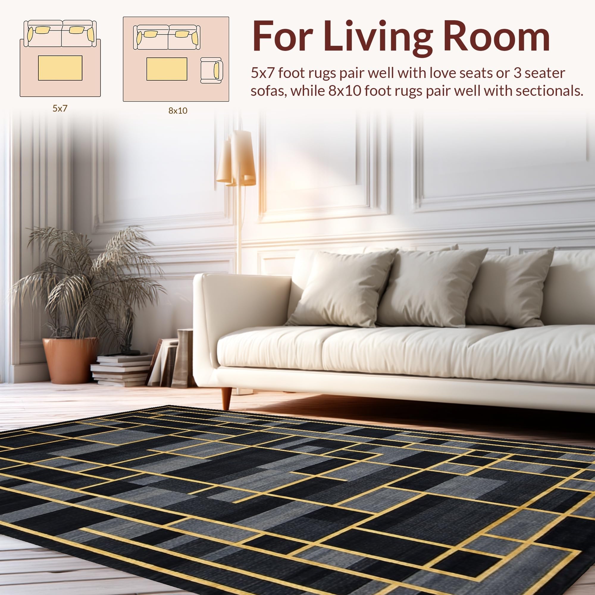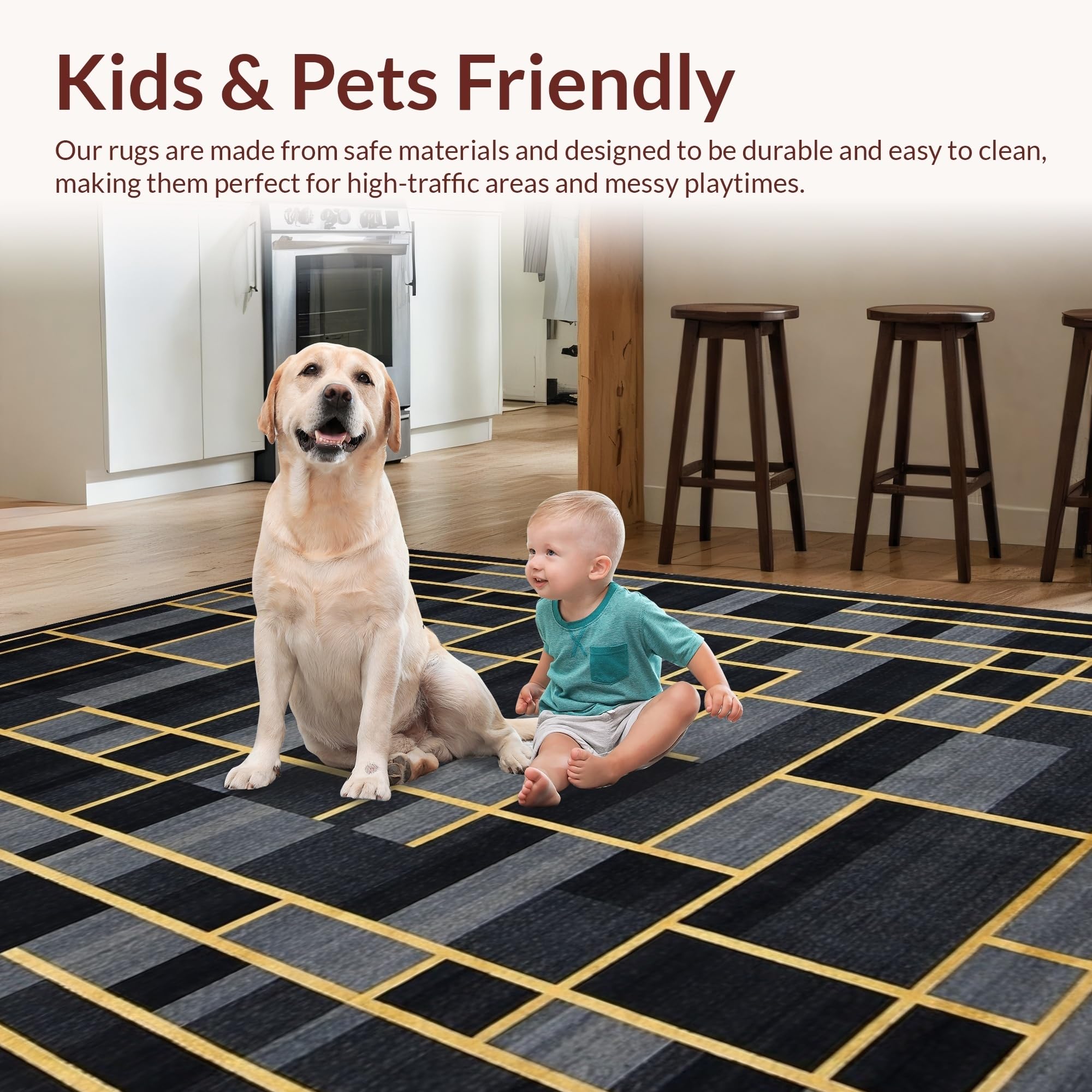 Ultra Soft Area Rug, Non Slip, Stain Resistant, Washable Area Rugs for Living Room, Bedroom, Contemporary Abstract Geometric Aesthetic(Black) Overview: