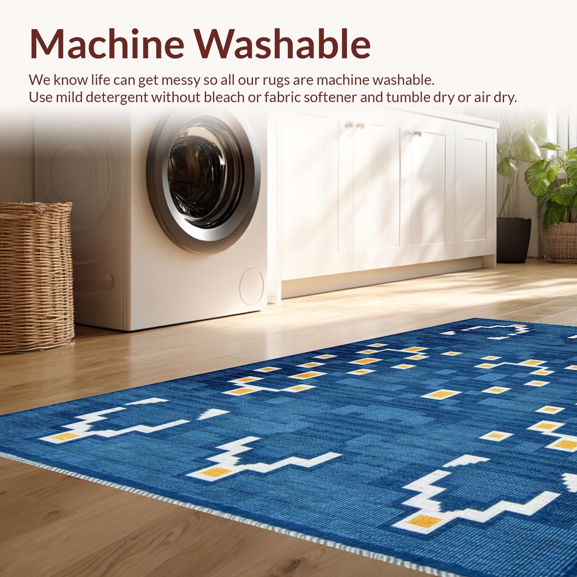 - Machine Washable: Our rugs can be easily thrown in the wash machine.