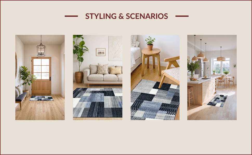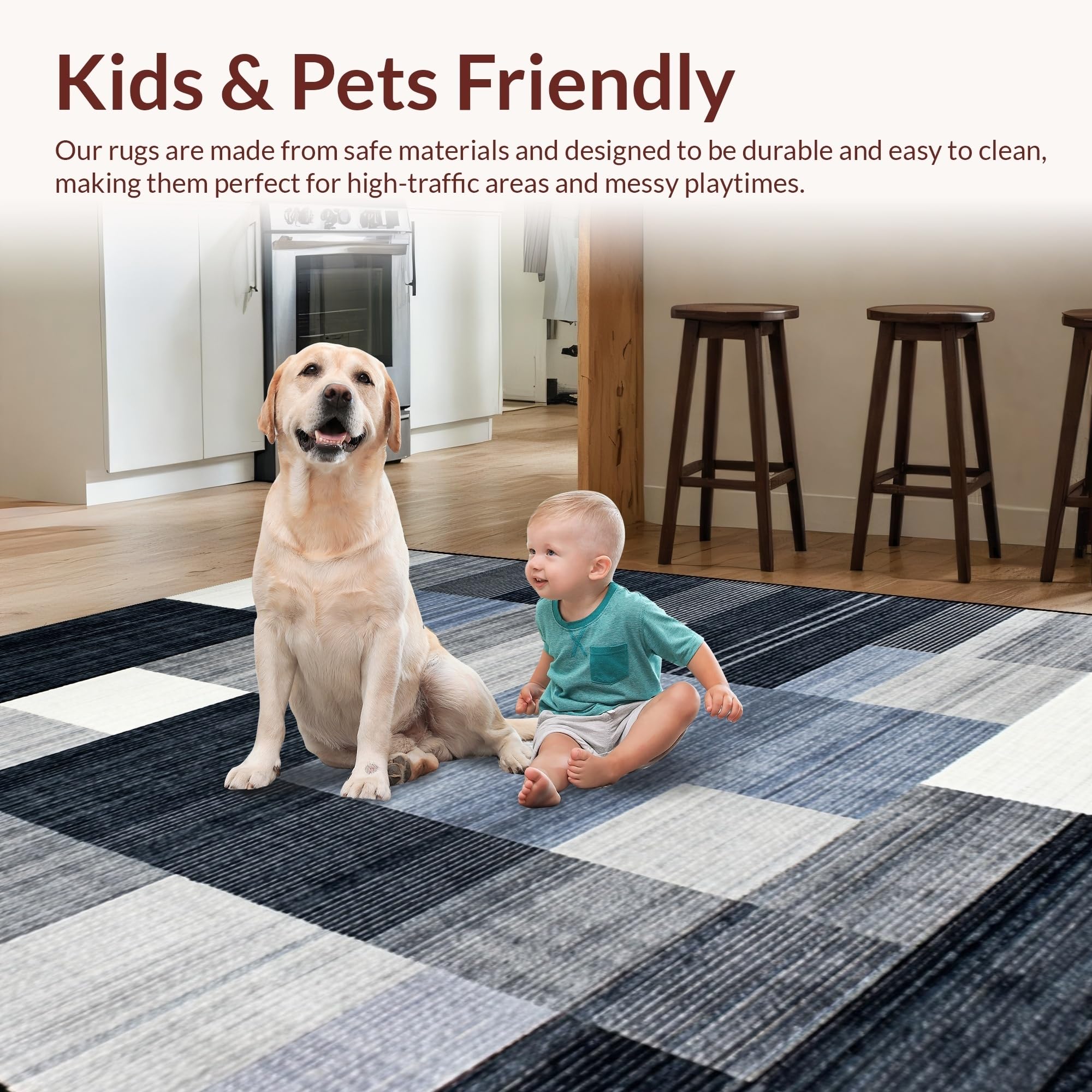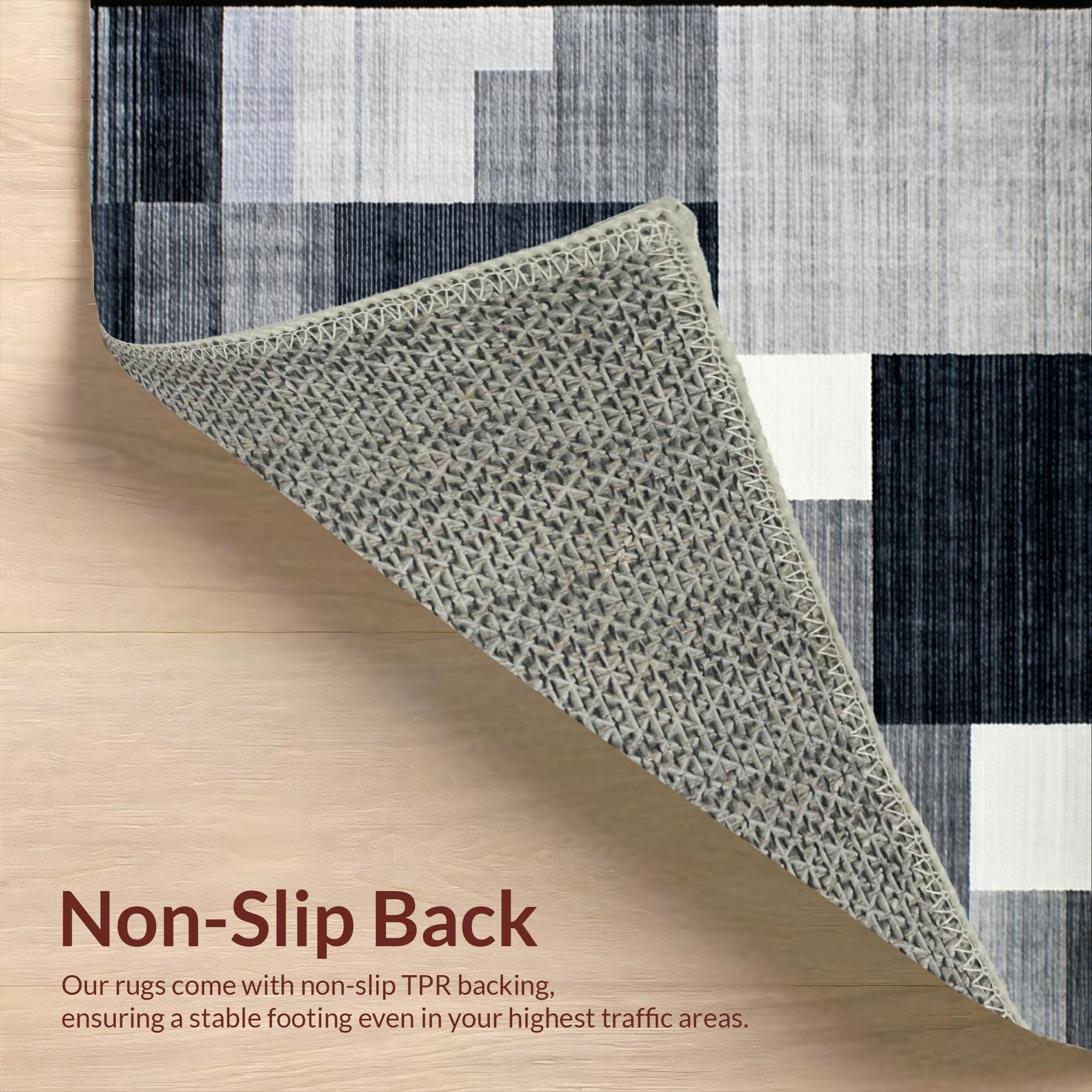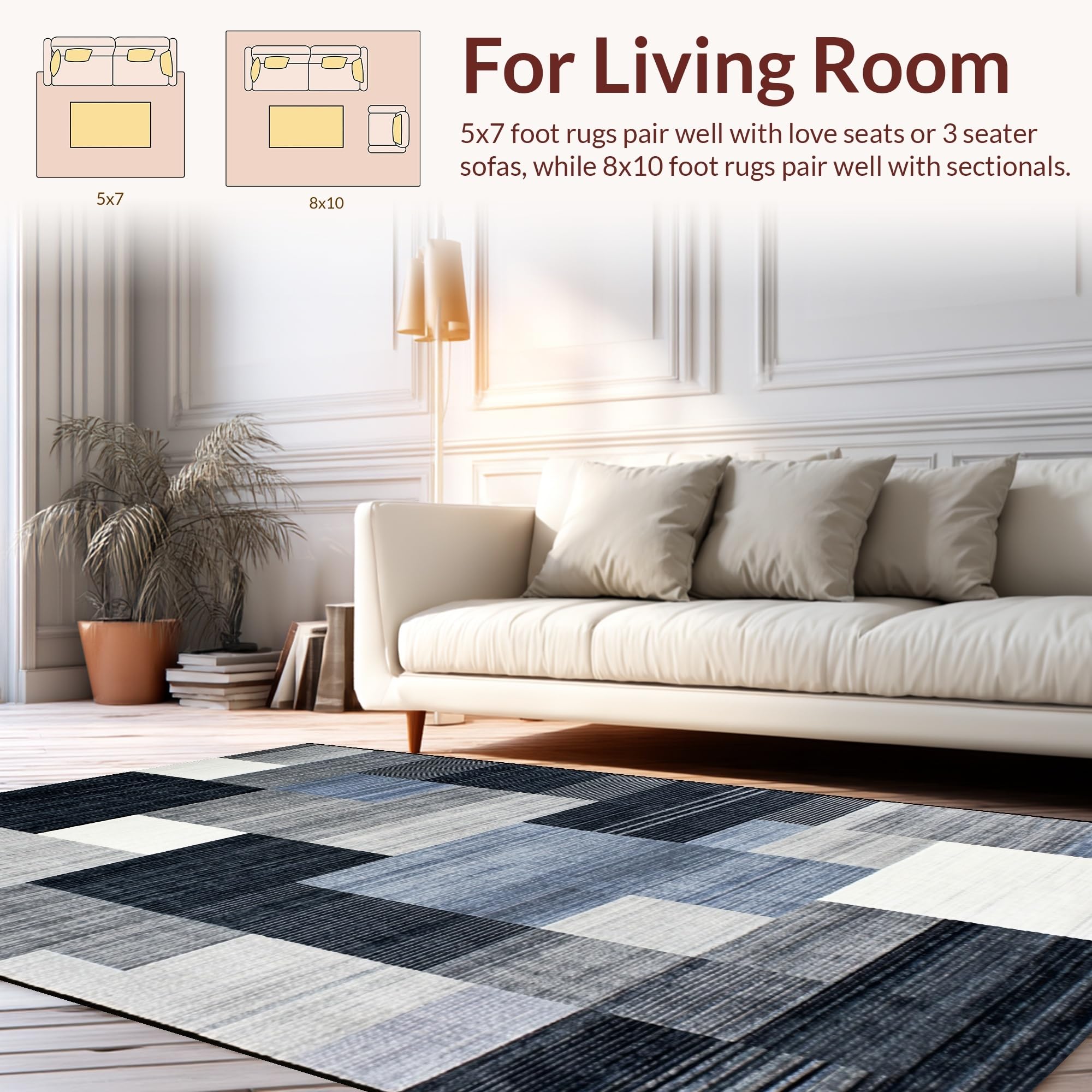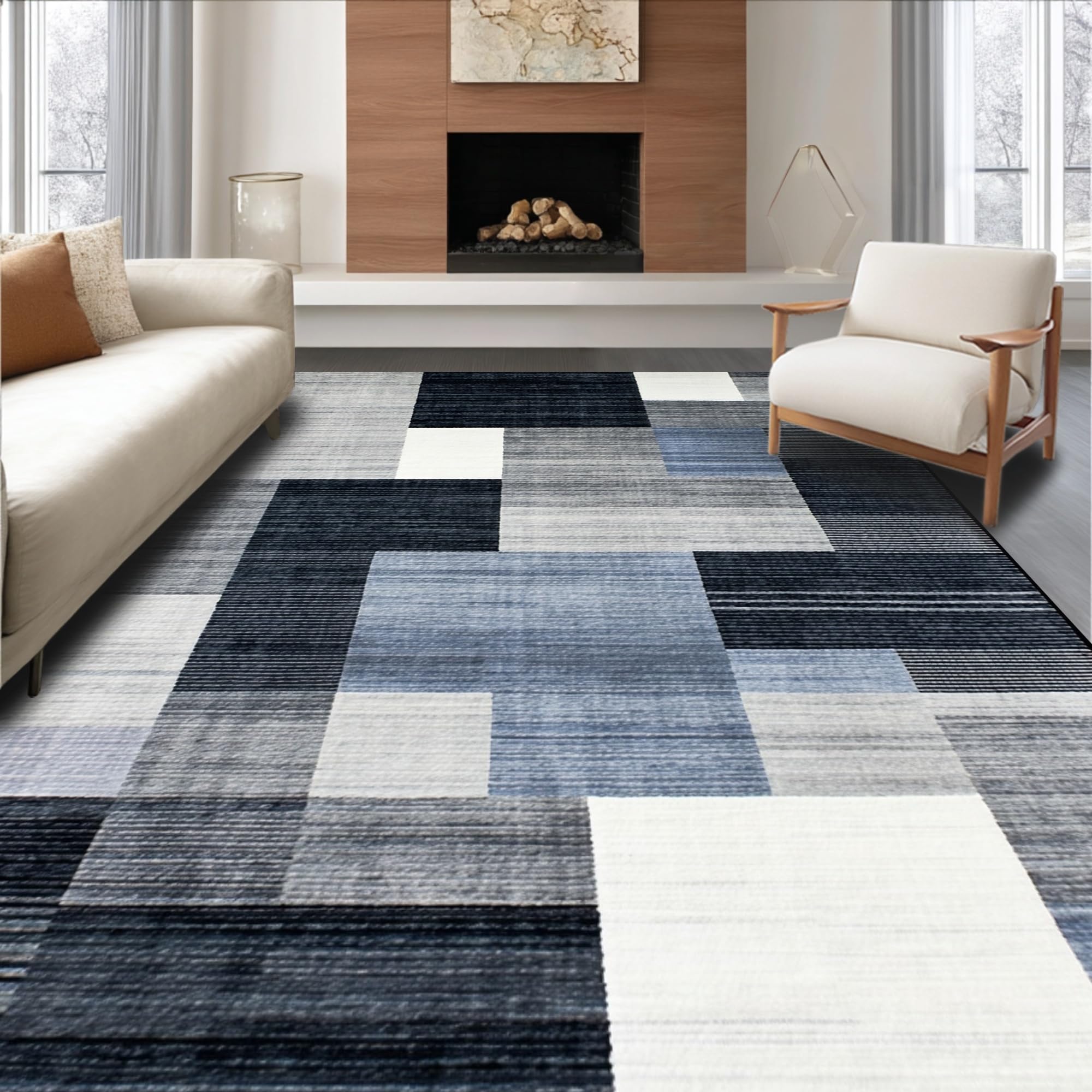 Ultra Soft Area Rug, Non Slip, Stain Resistant, Washable Area Rugs for Living Room, Bedroom, Contemporary Abstract Grey Tones(Blue) Overview: