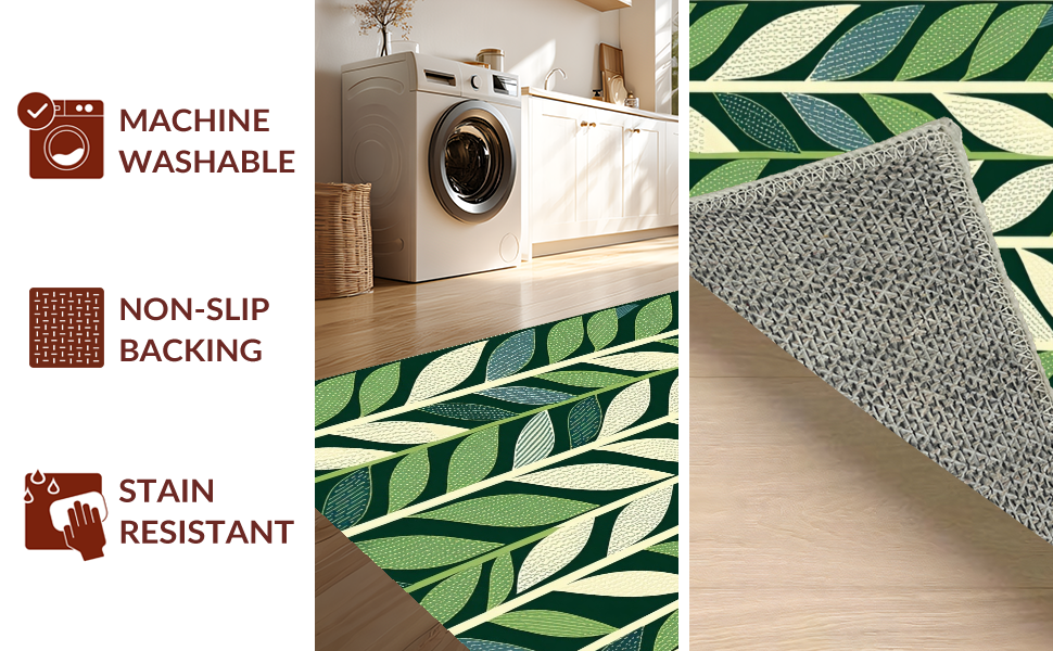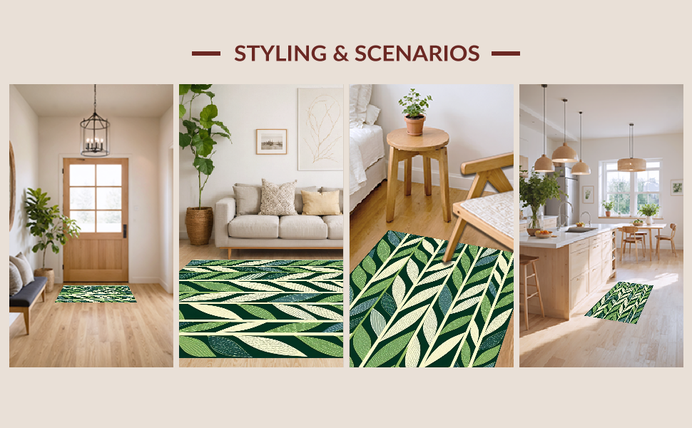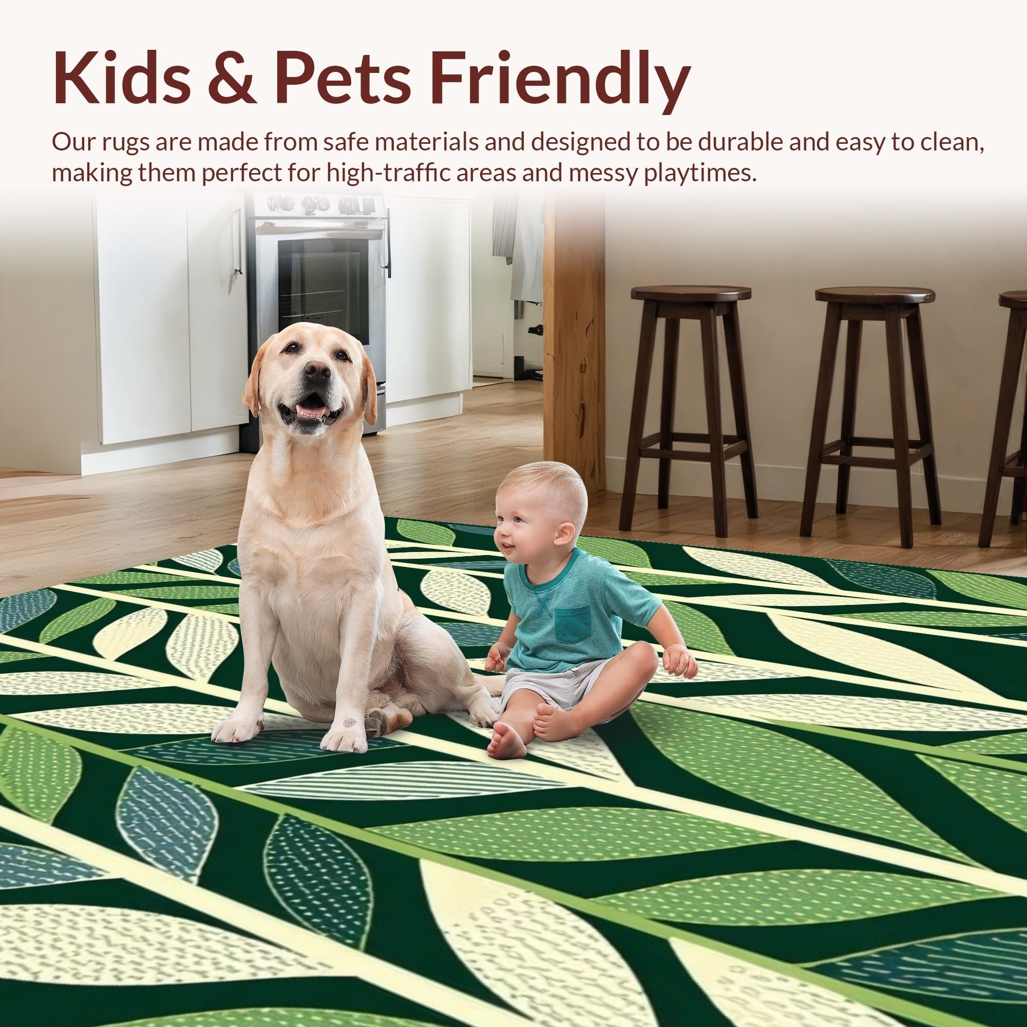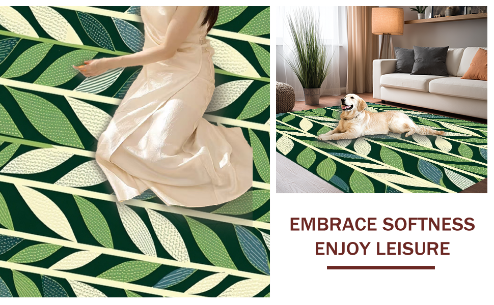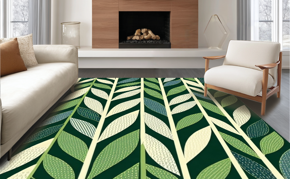 Ultra Soft Area Rug, Non Slip, Stain Resistant, Washable Area Rugs for Living Room, Bedroom, Contemporary Abstract Leaf Motif(Green) Overview: