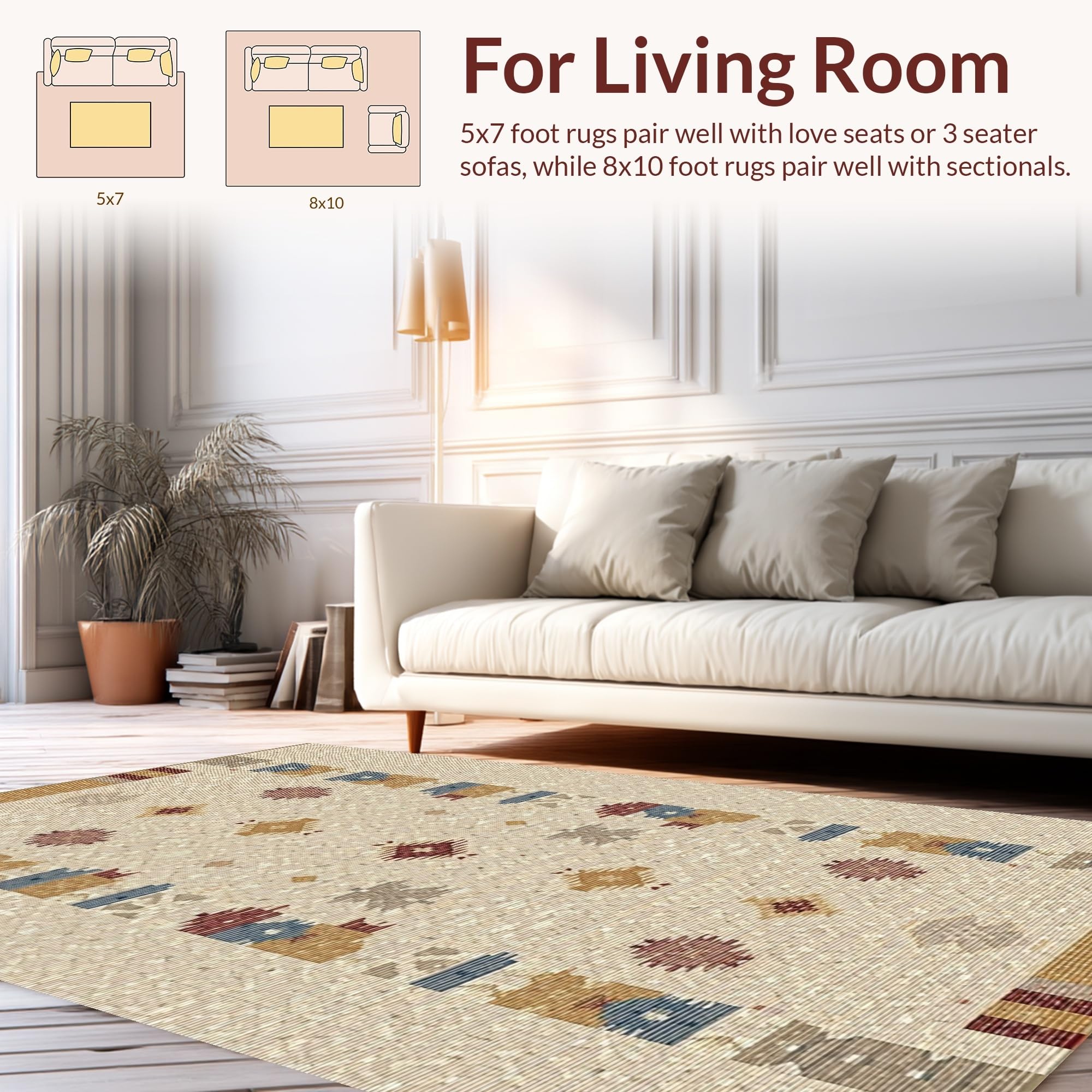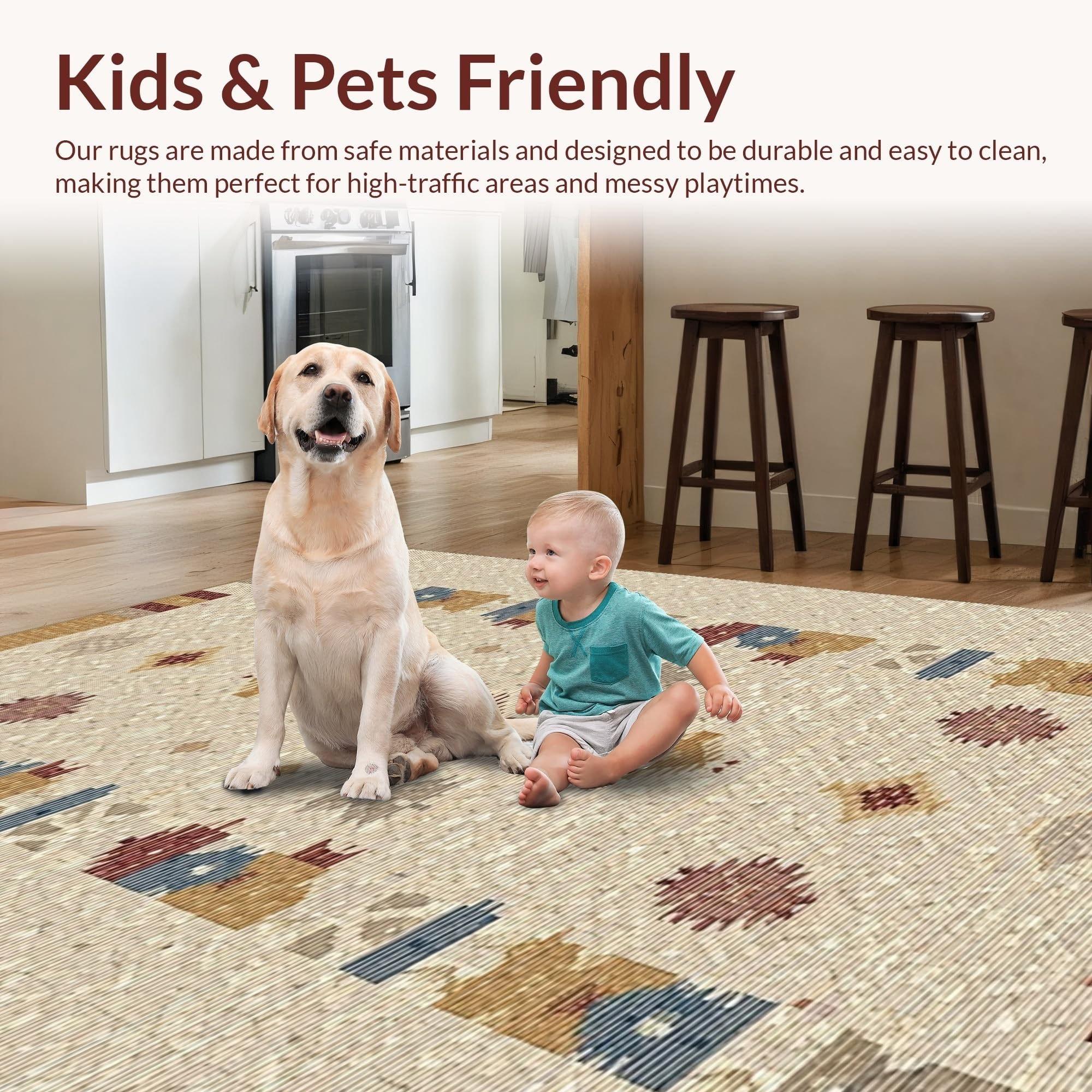 Ultra Soft Area Rug, Non Slip, Stain Resistant, Washable Area Rugs for Living Room, Bedroom, Contemporary Abstract Linear Composition(Beige) Overview:
