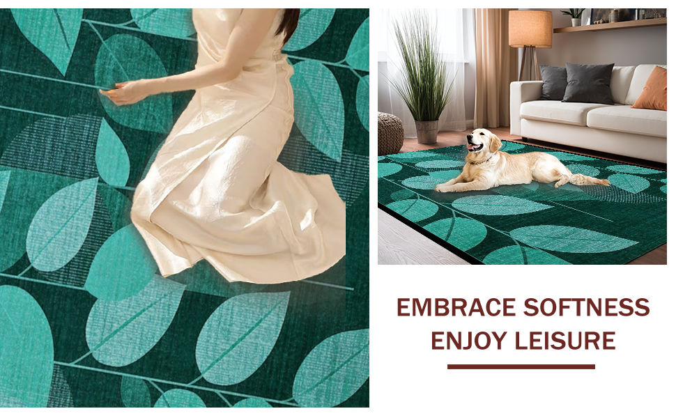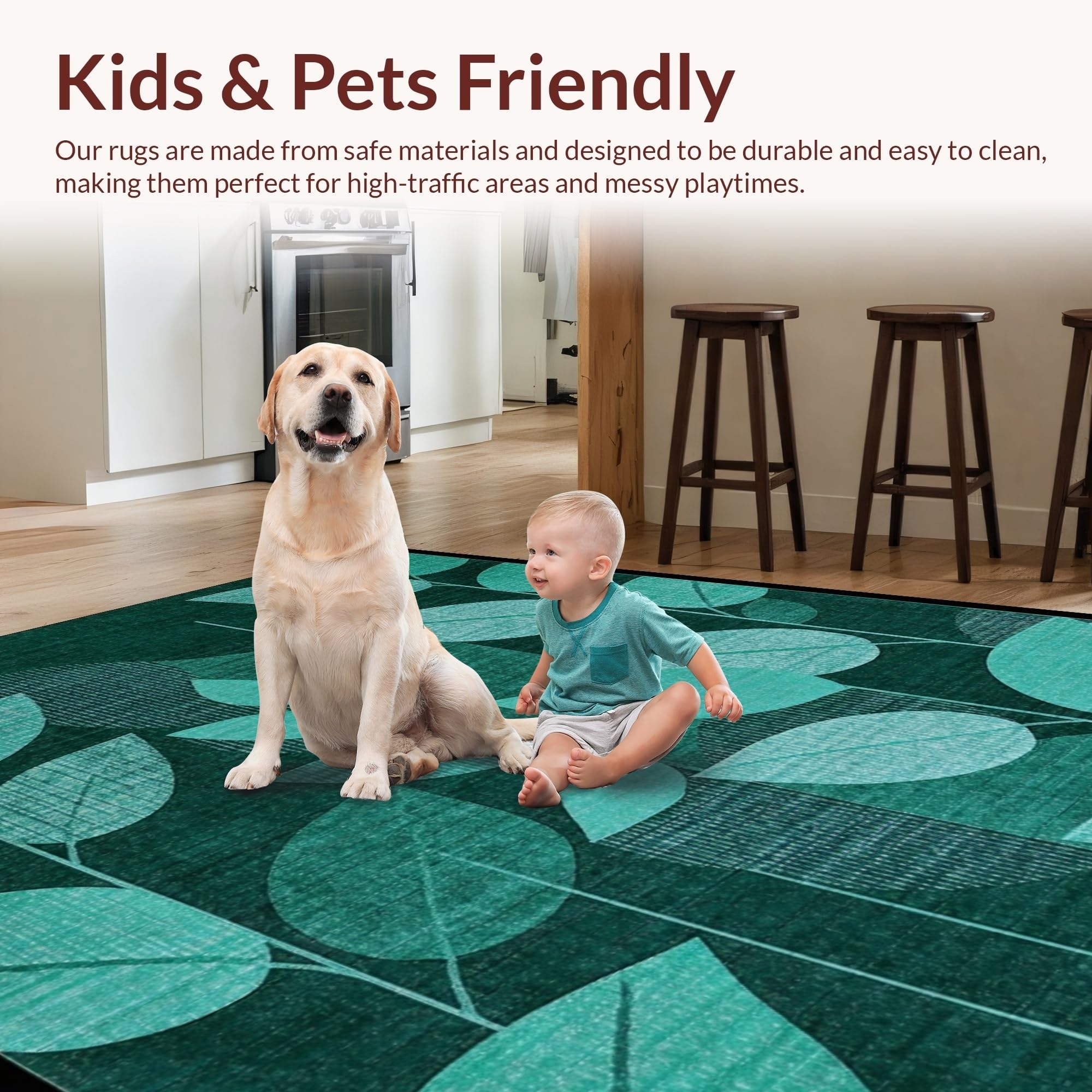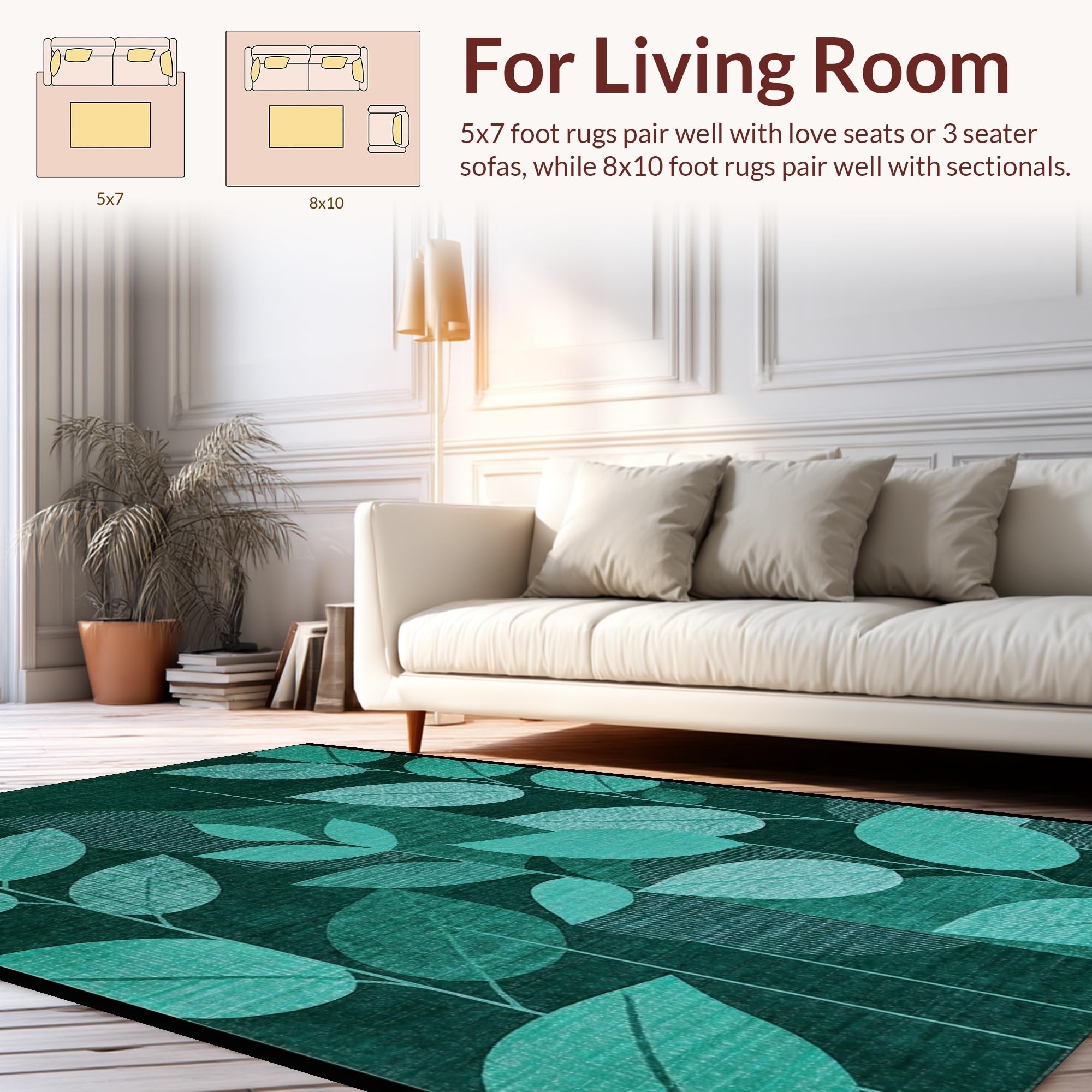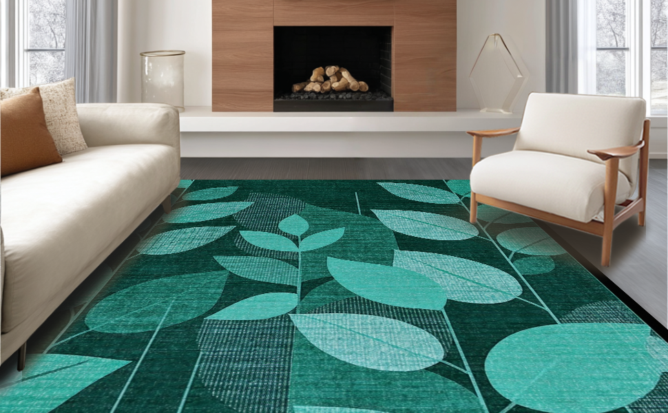 Ultra Soft Area Rug, Non Slip, Stain Resistant, Washable Area Rugs for Living Room, Bedroom, Contemporary Abstract Pattern with Blue Tones(Green) Overview: