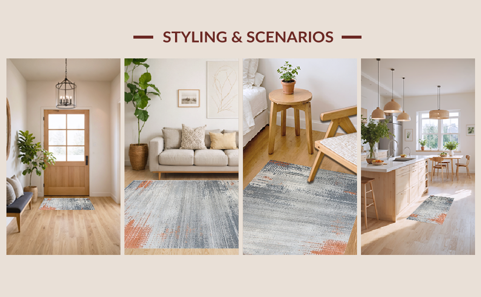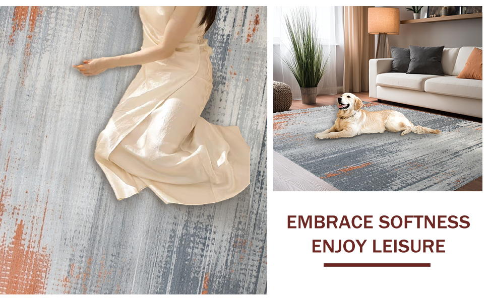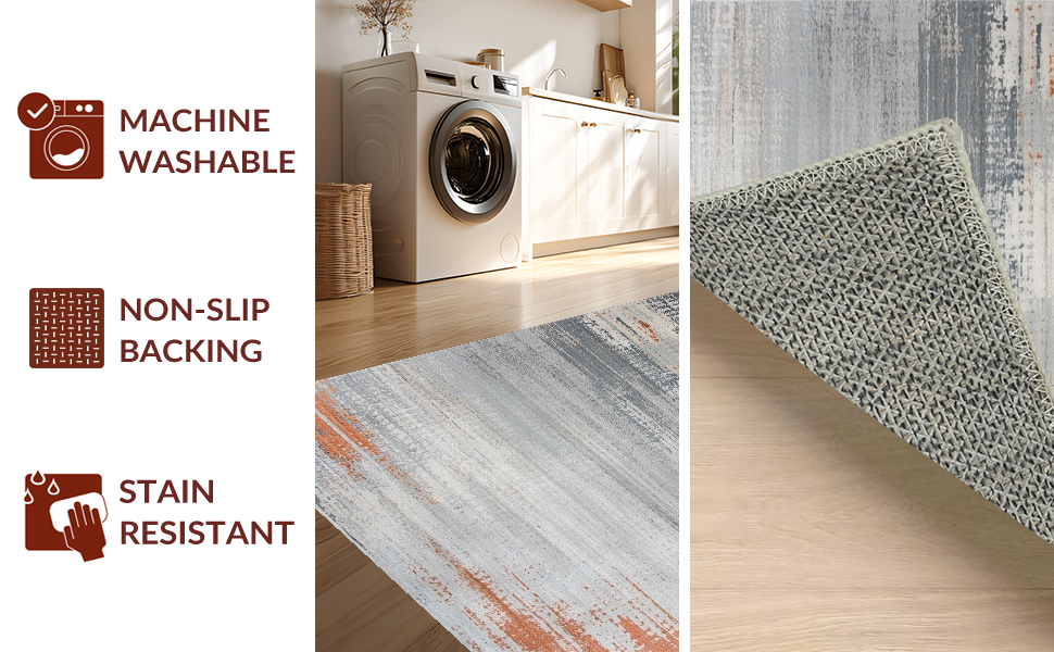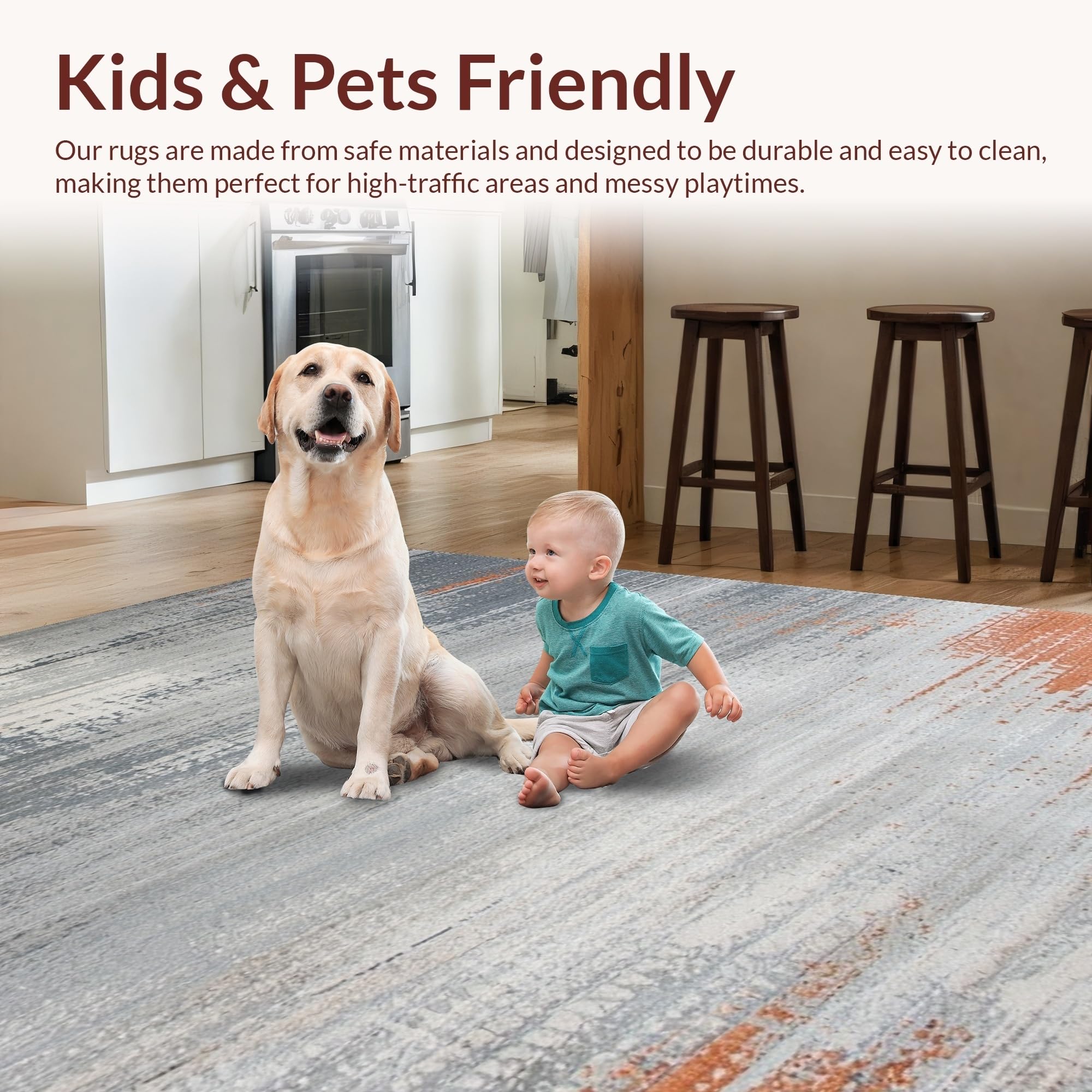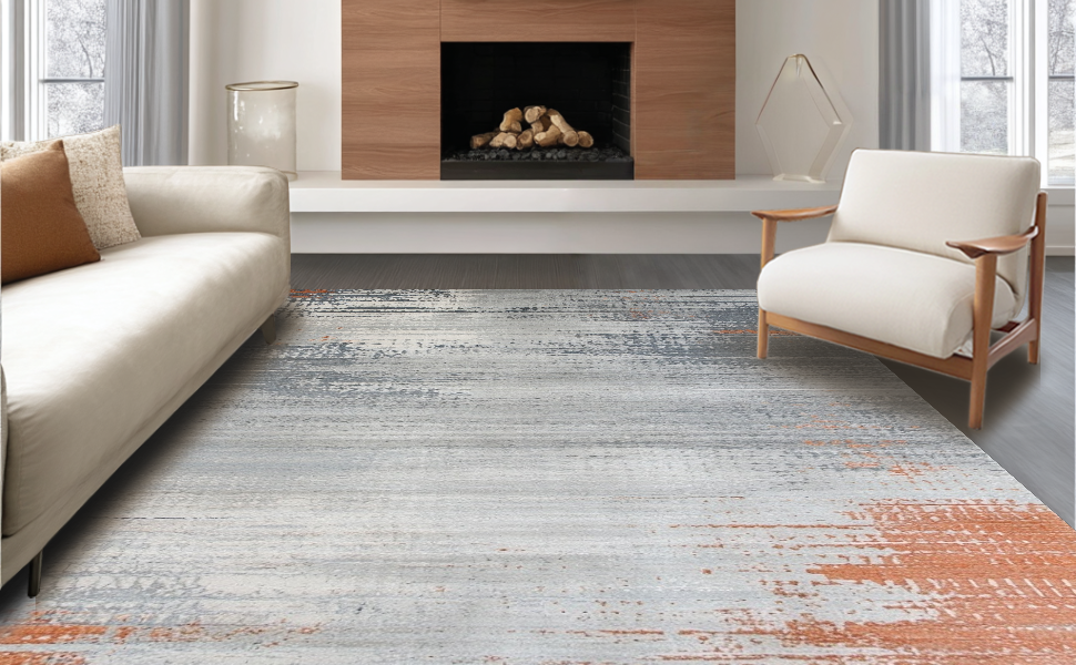 Ultra Soft Area Rug, Non Slip, Stain Resistant, Washable Area Rugs for Living Room, Bedroom, Contemporary Abstract Rust Accents(Gray) Overview: