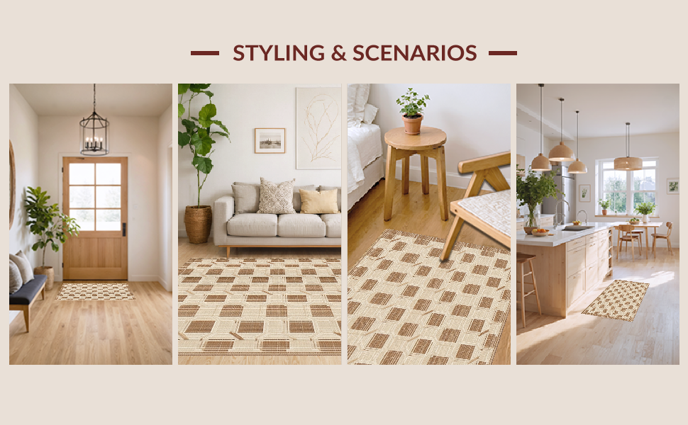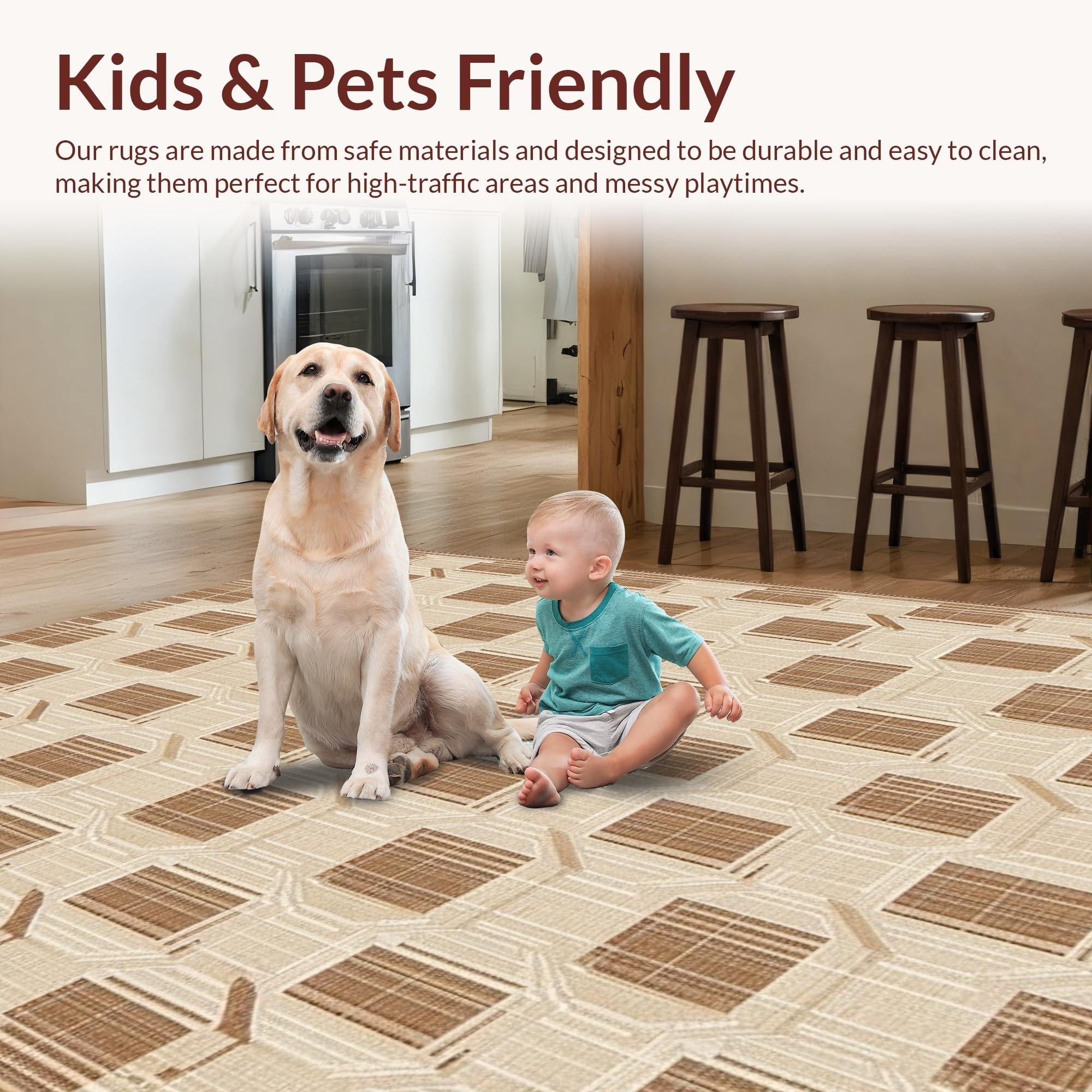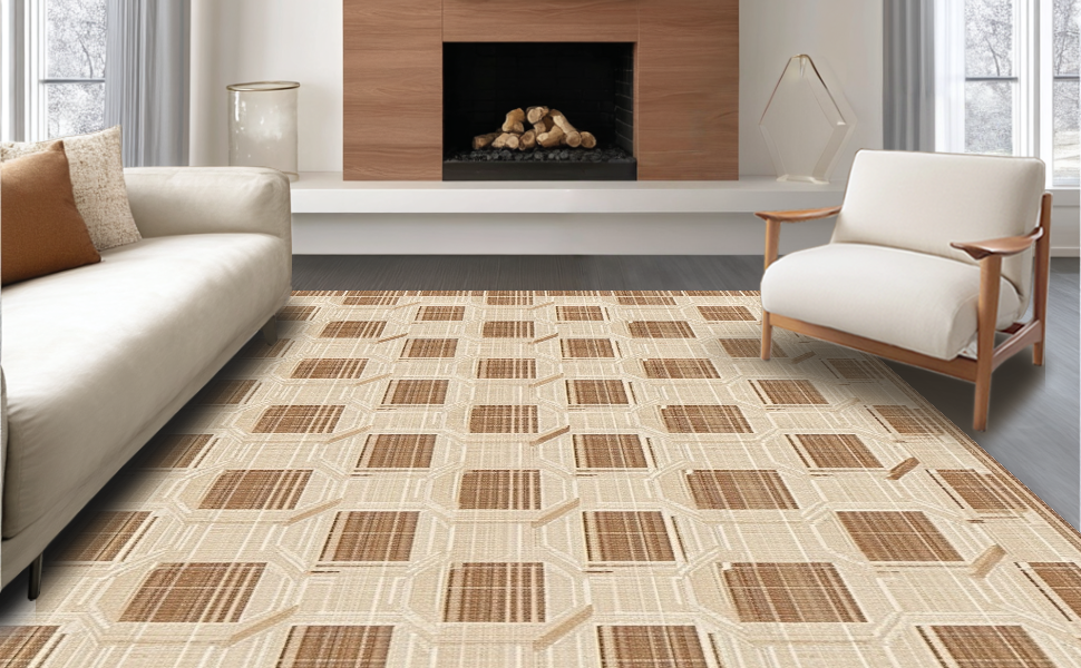 Ultra Soft Area Rug, Non Slip, Stain Resistant, Washable Area Rugs for Living Room, Bedroom, Contemporary Abstract Symmetrical Theme(Beige) Overview: