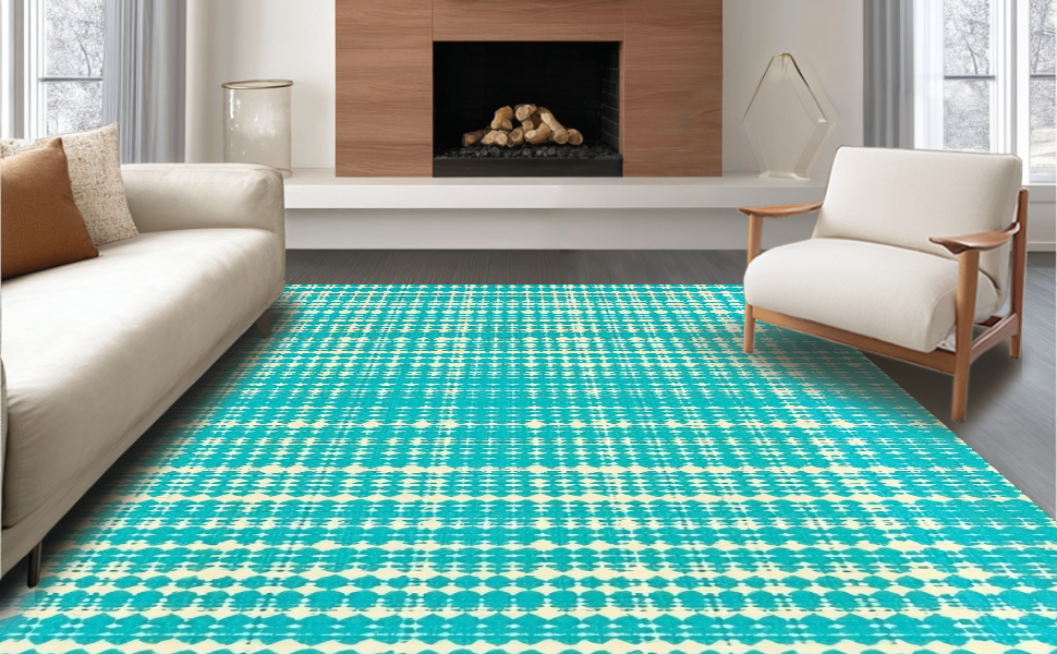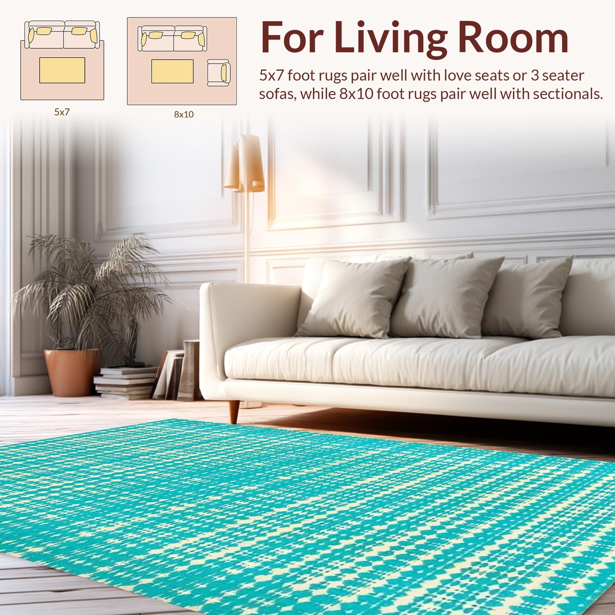 Ultra Soft Area Rug, Non Slip, Stain Resistant, Washable Area Rugs for Living Room, Bedroom, Contemporary Aqua Burst Aesthetic(Blue) Overview: