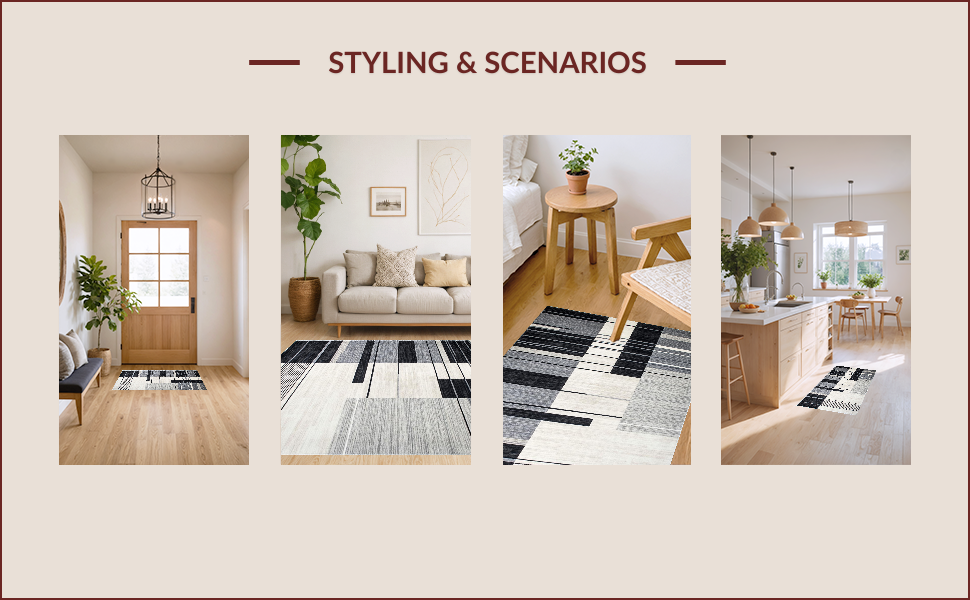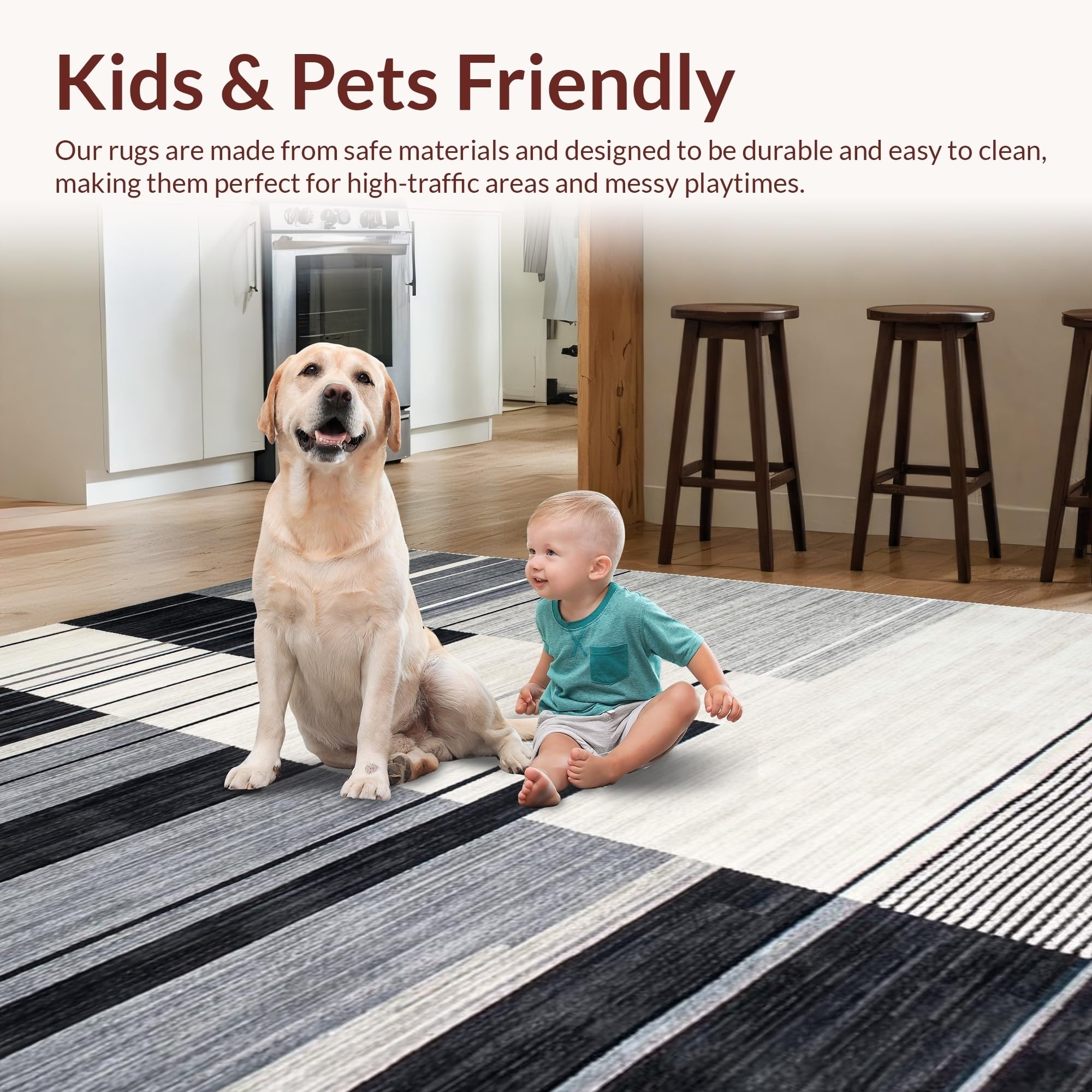 Ultra Soft Area Rug, Non Slip, Stain Resistant, Washable Area Rugs for Living Room, Bedroom, Contemporary Artful Linear Design(Gray) Overview: