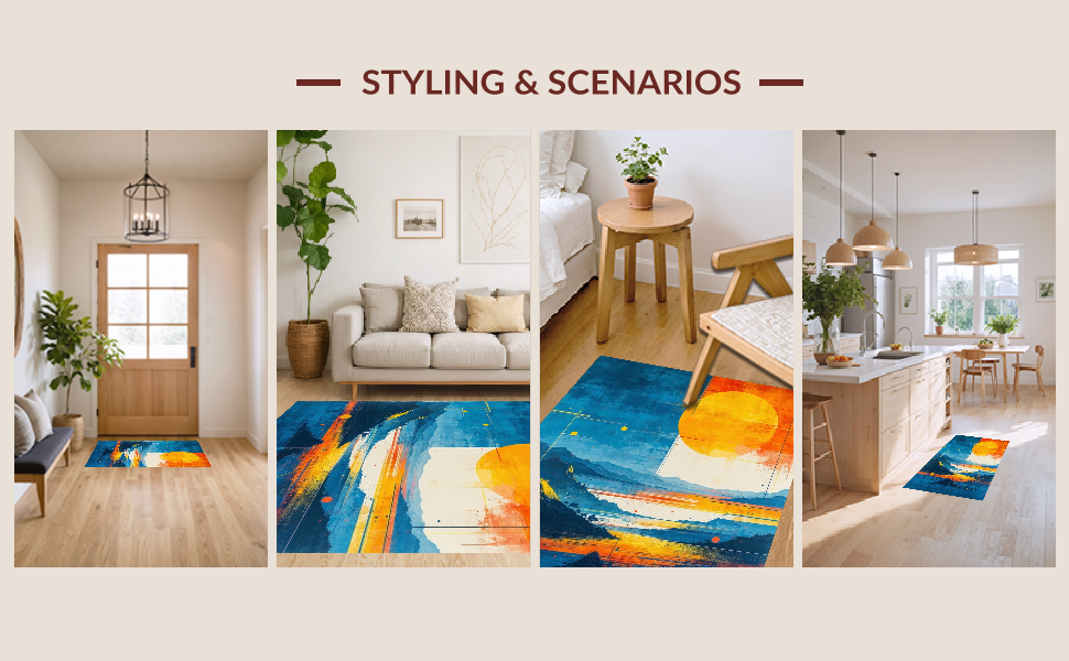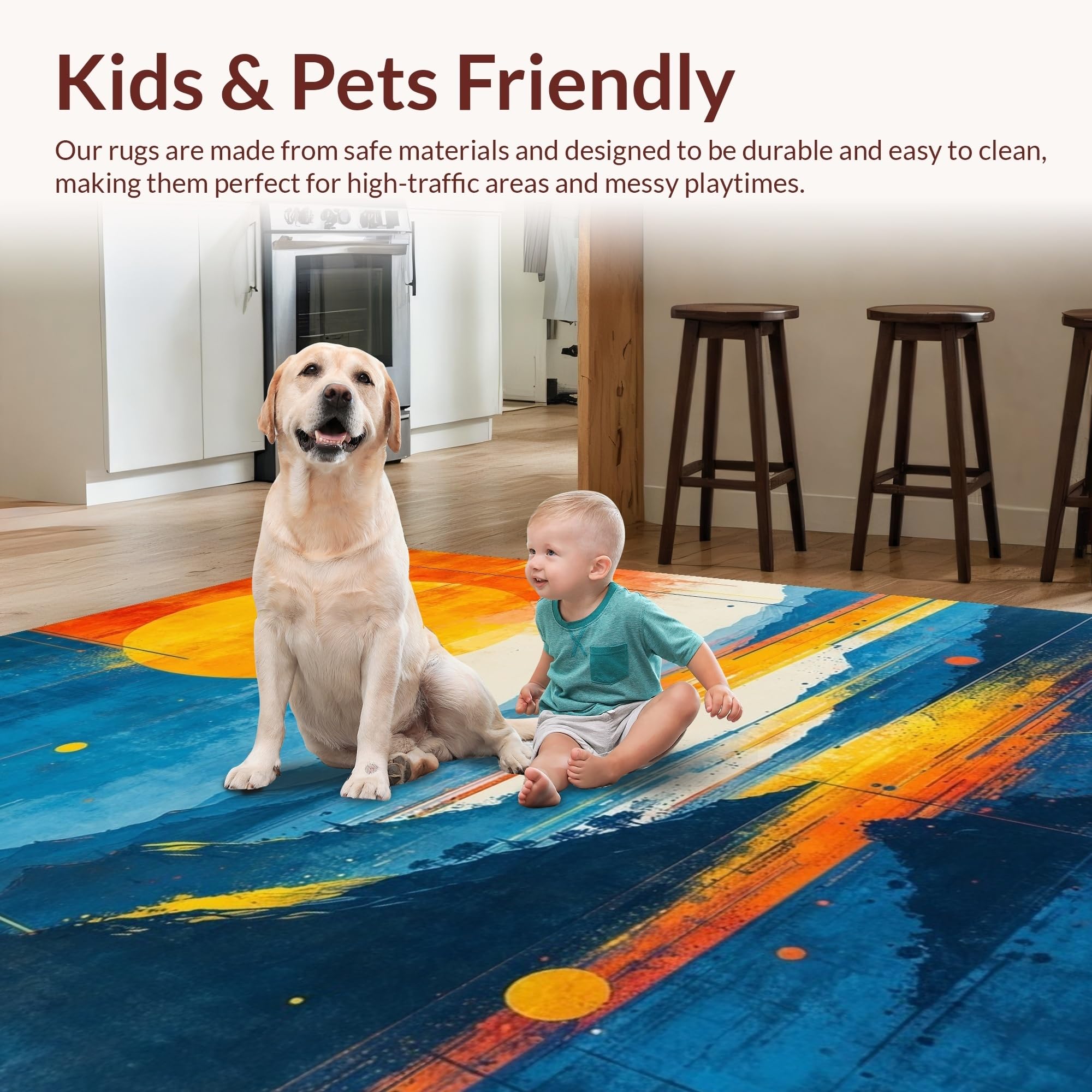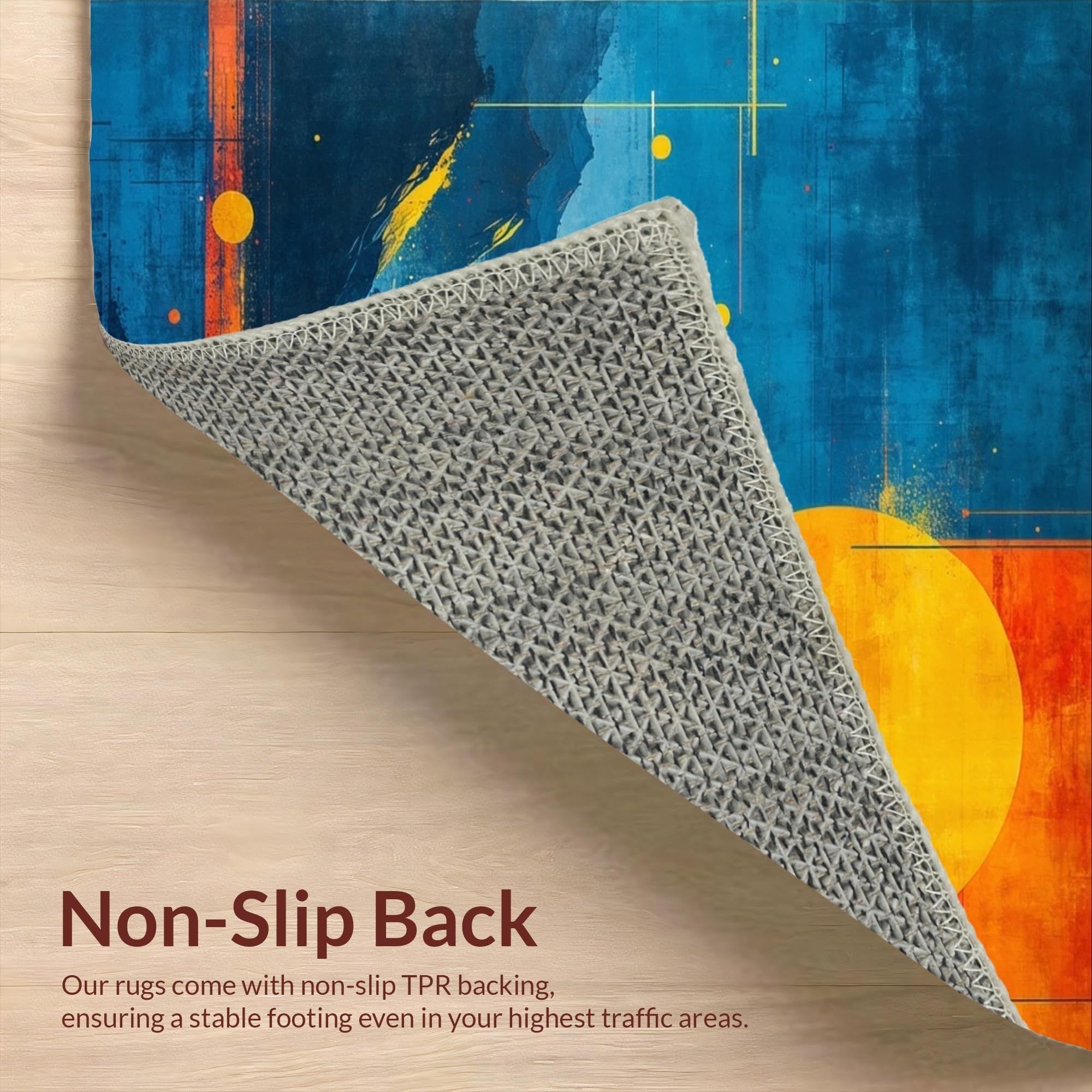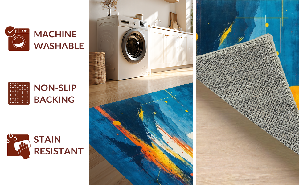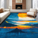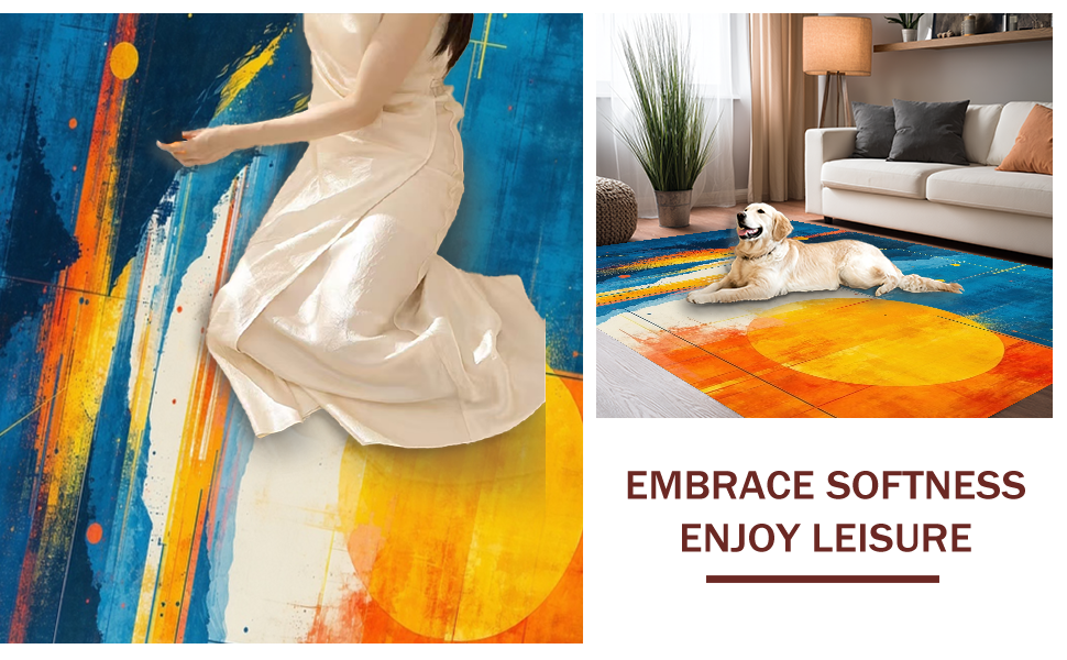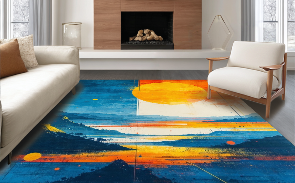 Ultra Soft Area Rug, Non Slip, Stain Resistant, Washable Area Rugs for Living Room, Bedroom, Contemporary Artistic Color Fusion(Blue) Overview: