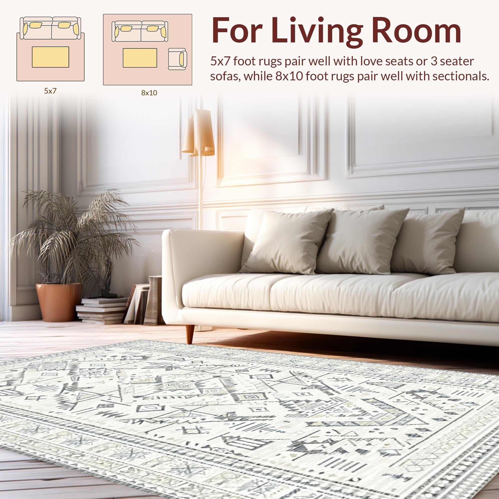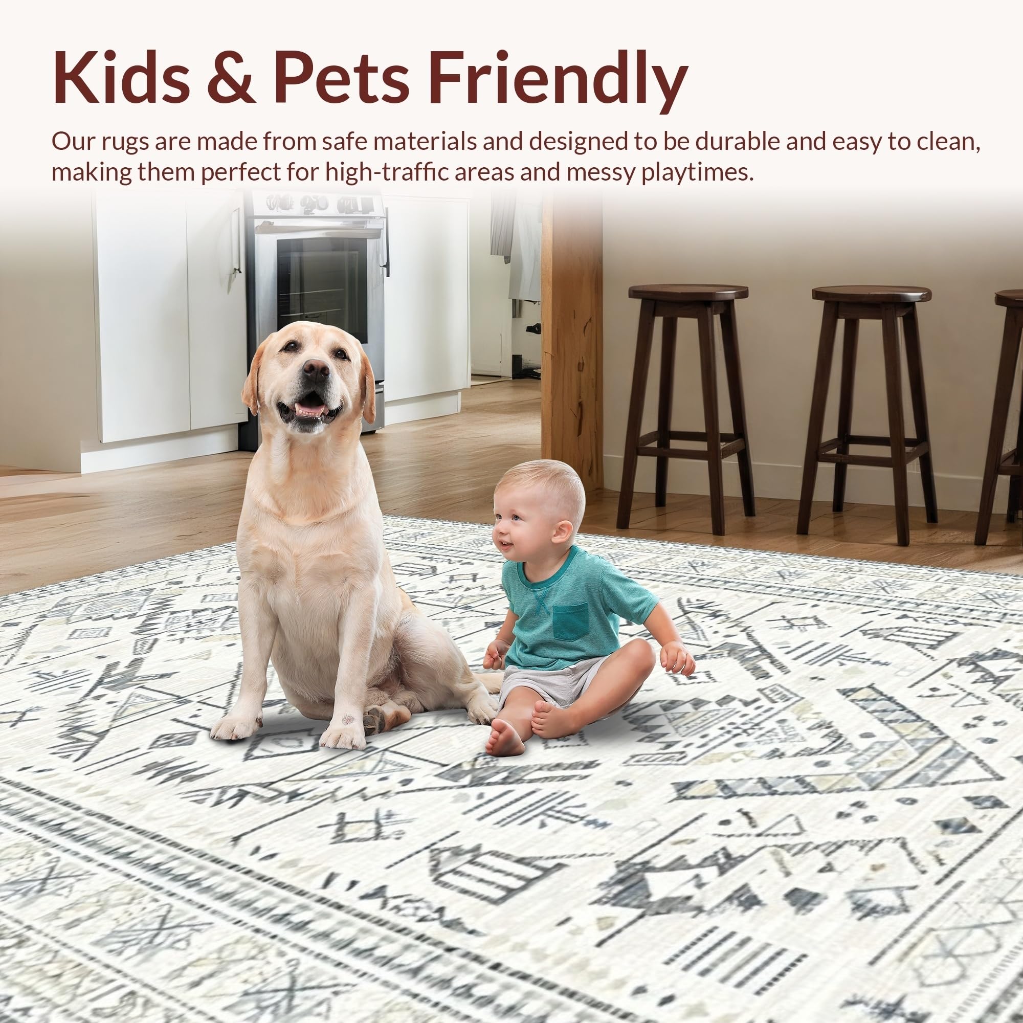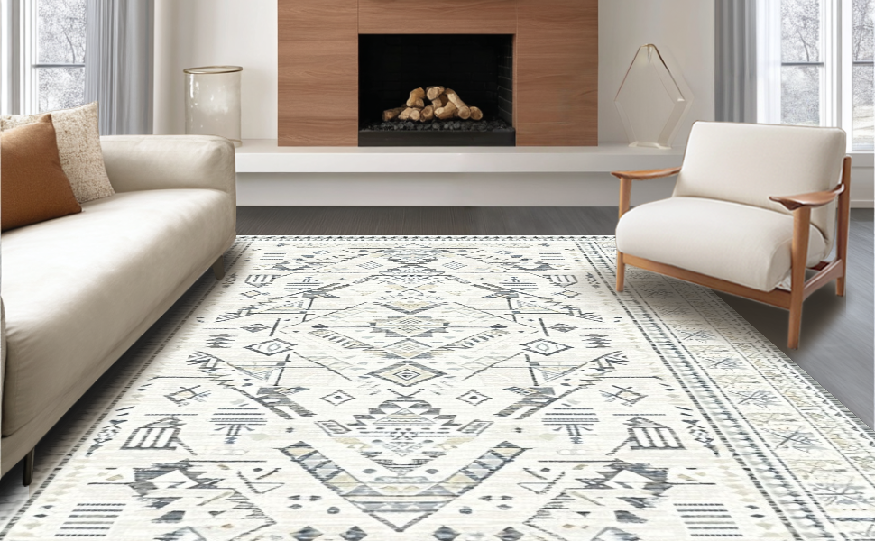 Ultra Soft Area Rug, Non Slip, Stain Resistant, Washable Area Rugs for Living Room, Bedroom, Contemporary Artistic Ogee Style(Gray) Overview: