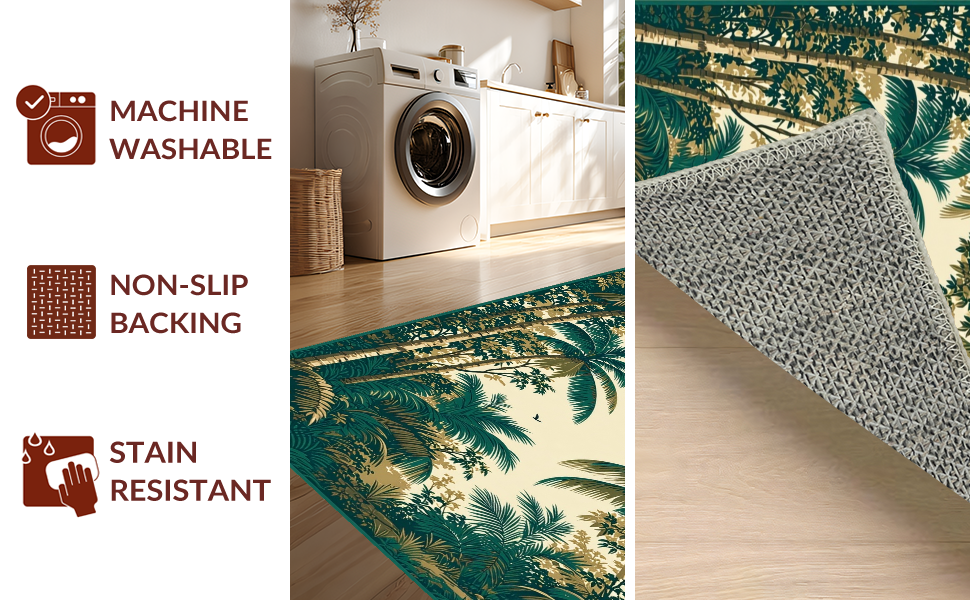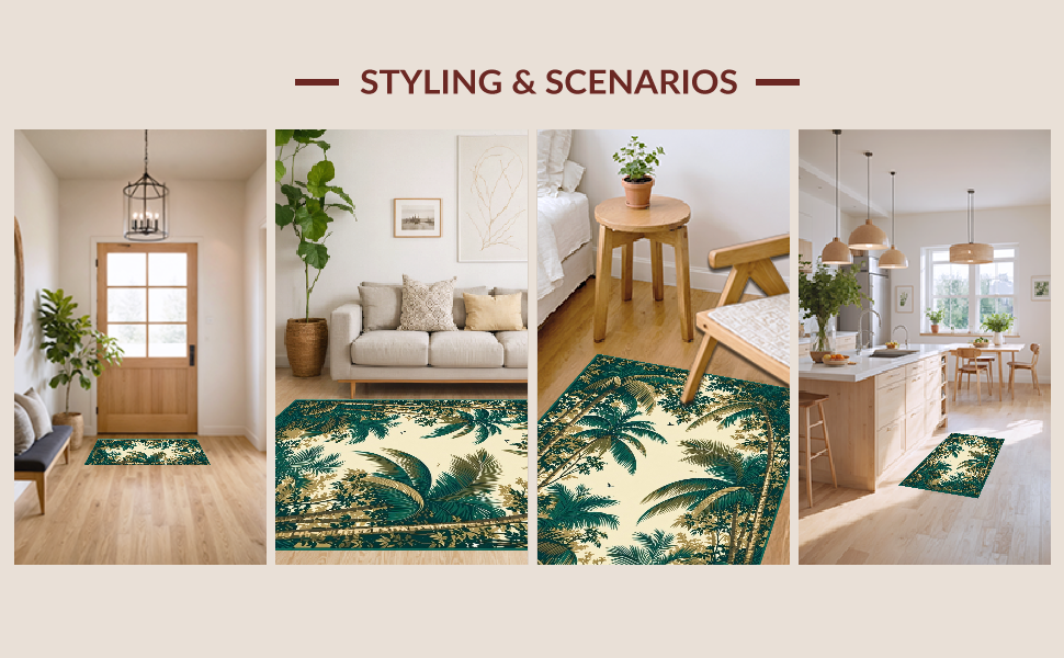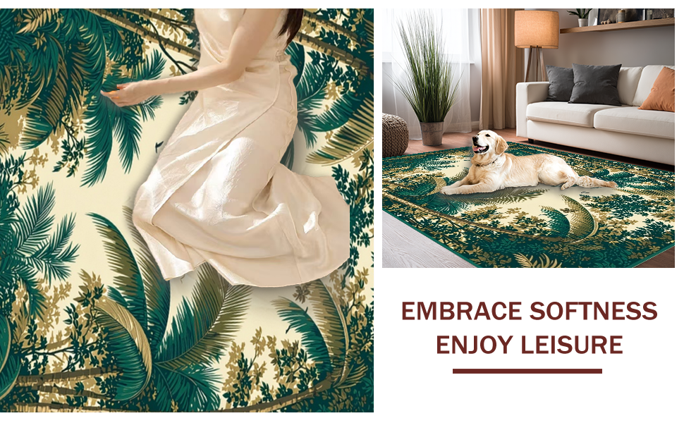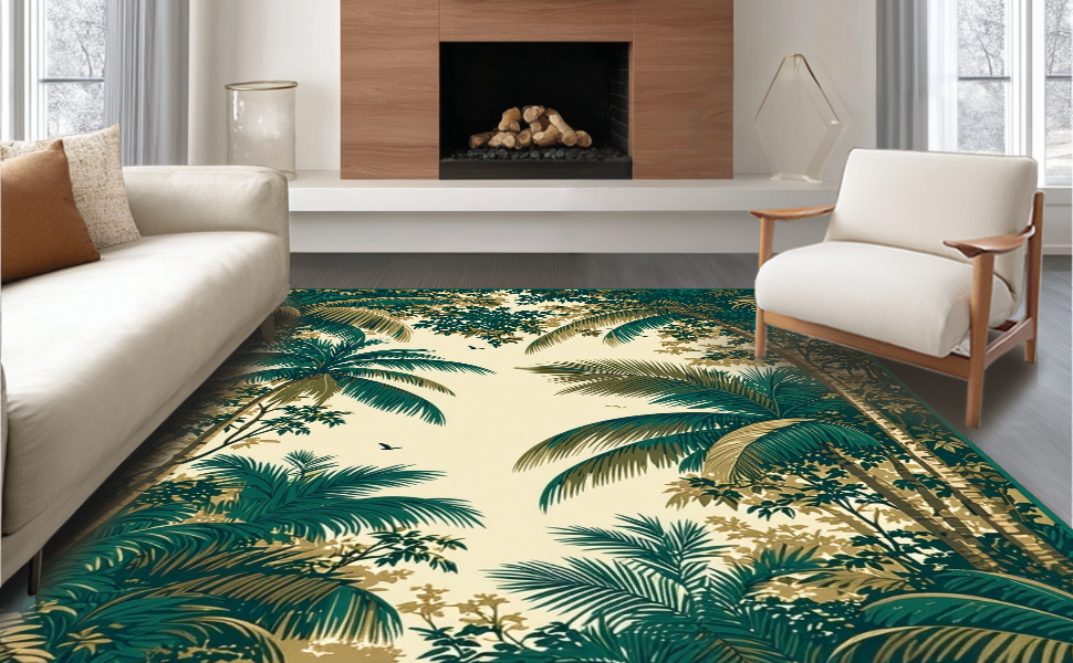 Ultra Soft Area Rug, Non Slip, Stain Resistant, Washable Area Rugs for Living Room, Bedroom, Contemporary Artistic Palm Decor(Beige) Overview:
