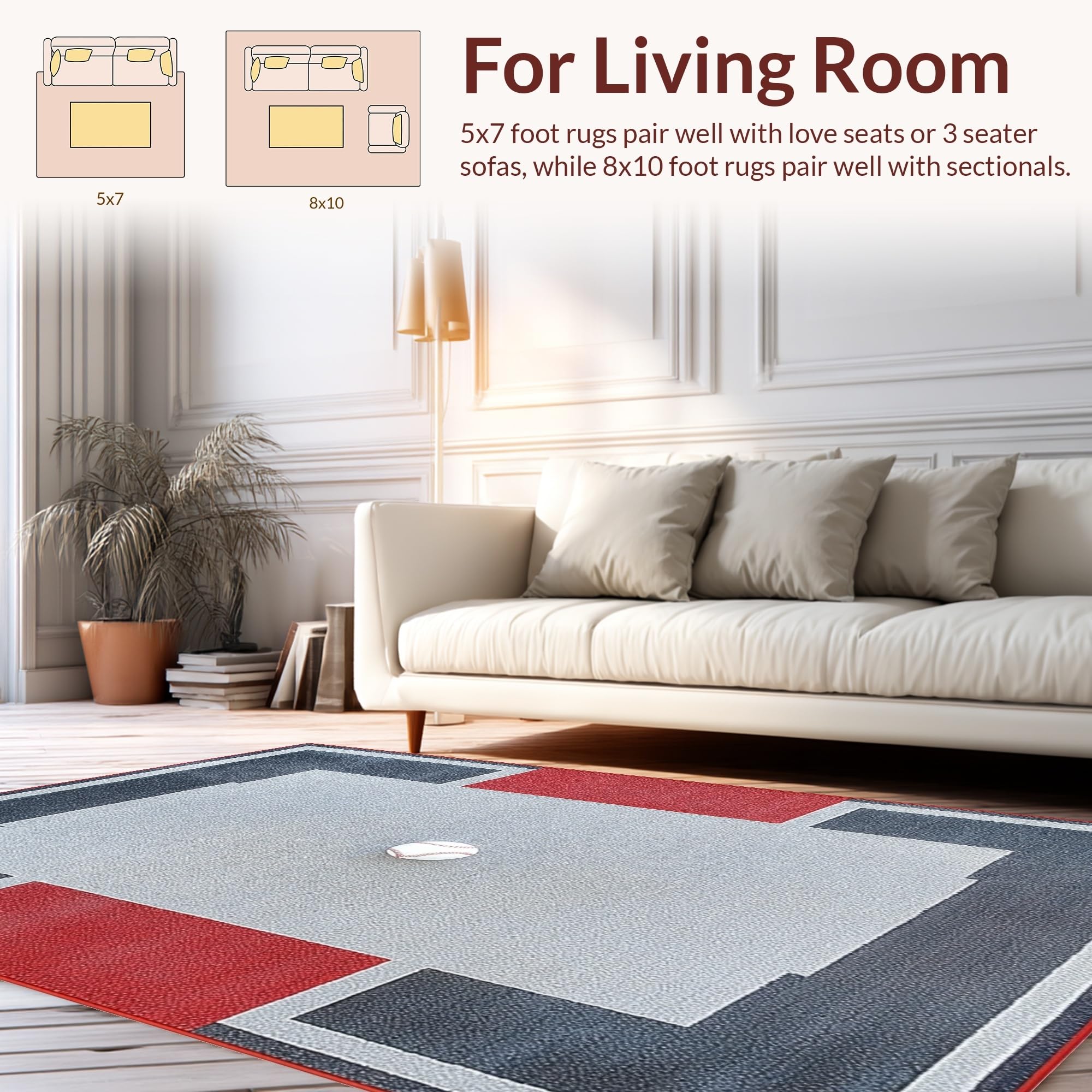 Ultra Soft Area Rug, Non Slip, Stain Resistant, Washable Area Rugs for Living Room, Bedroom, Contemporary Baseball Print in Bold Hues(Gray) Overview: