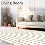 Ultra Soft Area Rug, Non Slip, Stain Resistant, Washable Area Rugs for Living Room, Bedroom, Contemporary Basketweave Illusion with Interlocking Motifs(Gold) Overview: