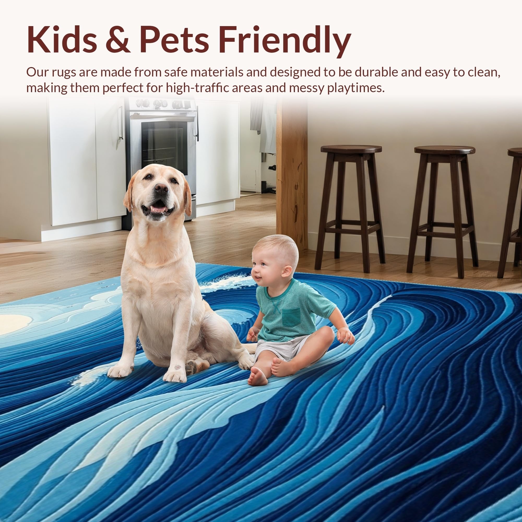 Ultra Soft Area Rug, Non Slip, Stain Resistant, Washable Area Rugs for Living Room, Bedroom, Contemporary Beachy Textural Vibe(Blue) Overview: