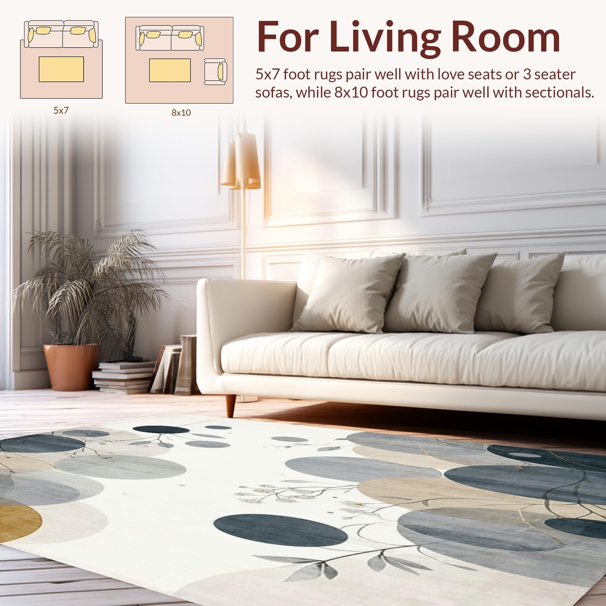 Ultra Soft Area Rug, Non Slip, Stain Resistant, Washable Area Rugs for Living Room, Bedroom, Contemporary Beige and Smoke Area with Abstract Floral Medallion Design(Gray) Overview: