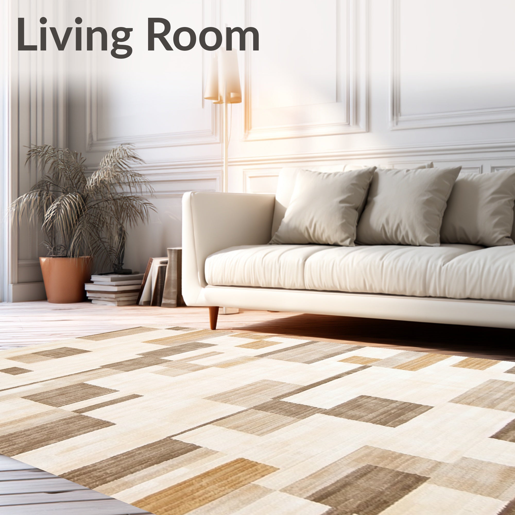 Ultra Soft Area Rug, Non Slip, Stain Resistant, Washable Area Rugs for Living Room, Bedroom, Contemporary Beige Area Featuring Bold Geometric Shapes and Contrast(Beige) Overview: