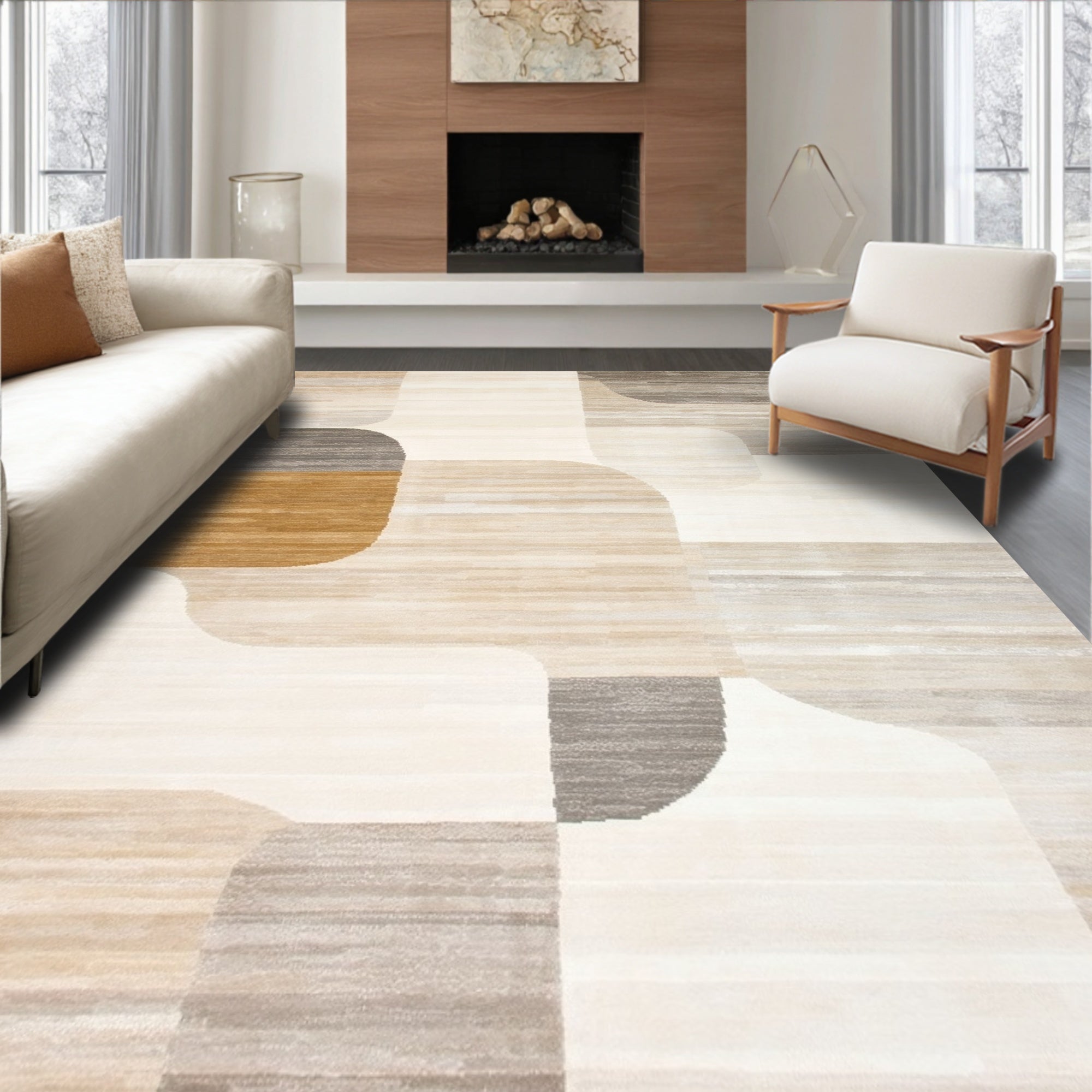 Contemporary Beige Area Showcasing Blended Abstract Design(Beige)