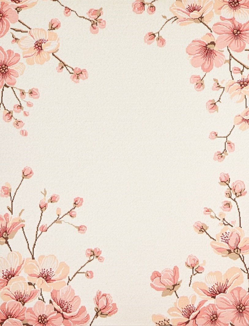 Contemporary Beige Area With Scattered Blush Blossom Print(Ivory)