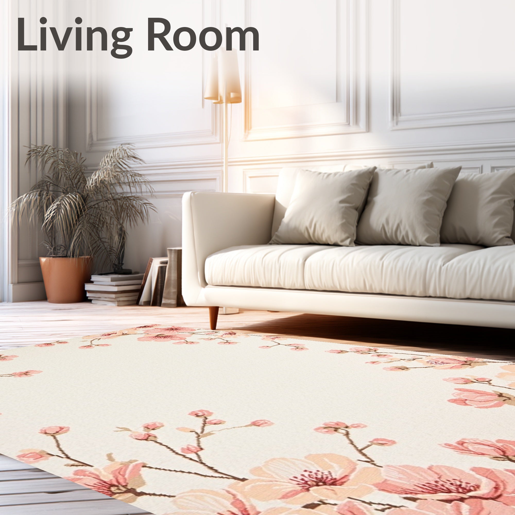Ultra Soft Area Rug, Non Slip, Stain Resistant, Washable Area Rugs for Living Room, Bedroom, Contemporary Beige Area With Scattered Blush Blossom Print(Ivory) Overview: