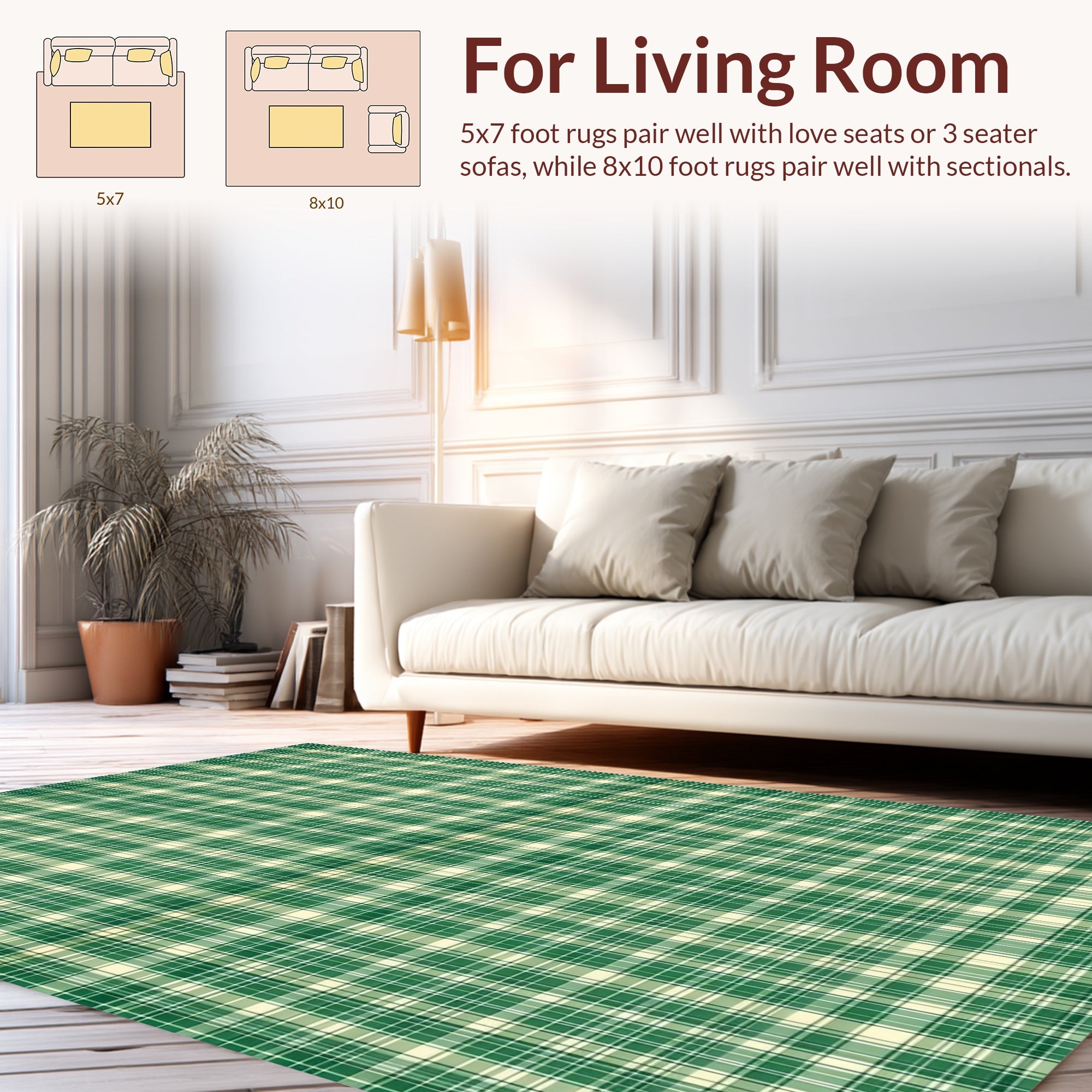 Flatwoven High Traffic Area Rug, Contemporary Beige Checkered Style, Non Slip, Stain Resistant, Washable Area Rugs for Living Room, Bedroom (Green) Overview: