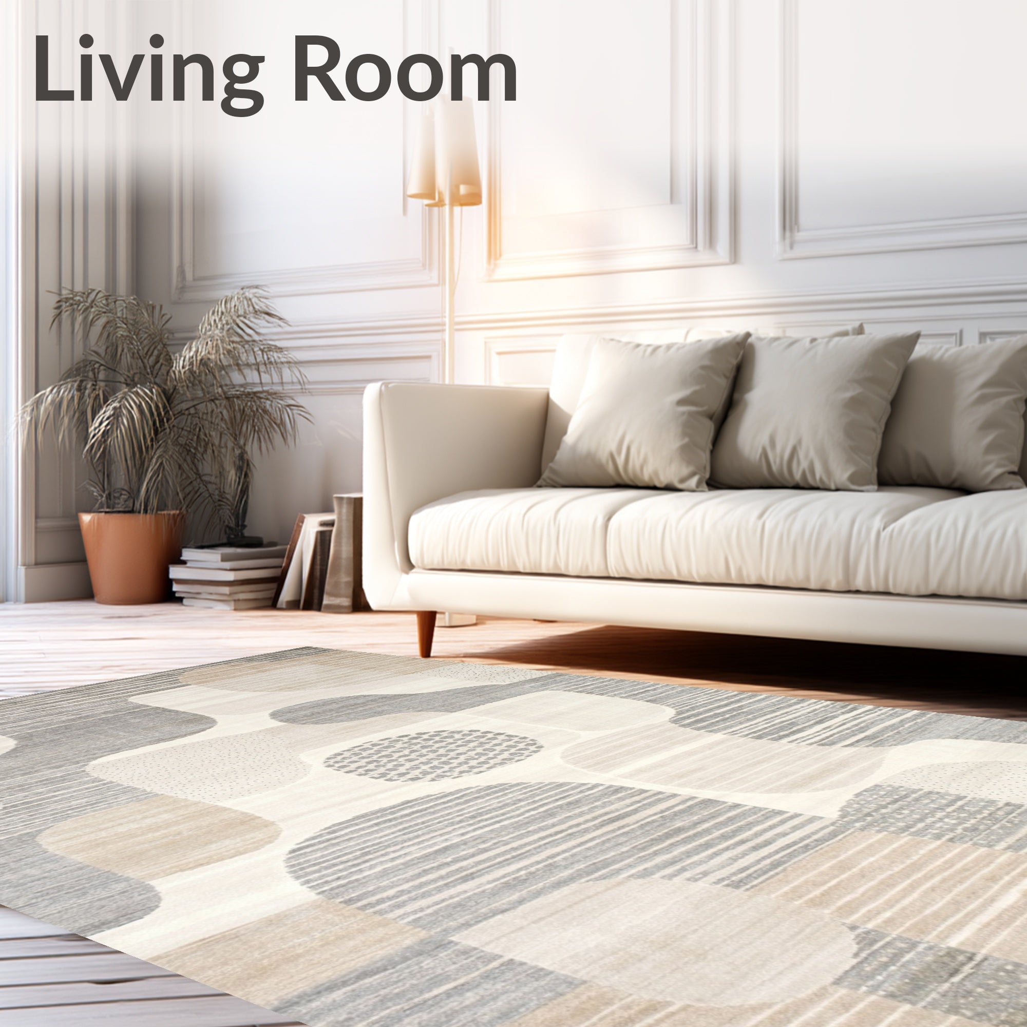 Ultra Soft Area Rug, Non Slip, Stain Resistant, Washable Area Rugs for Living Room, Bedroom, Contemporary Beige Featuring Subtle Grey Tones and Artistic Spotted Motifs(Beige) Overview:
