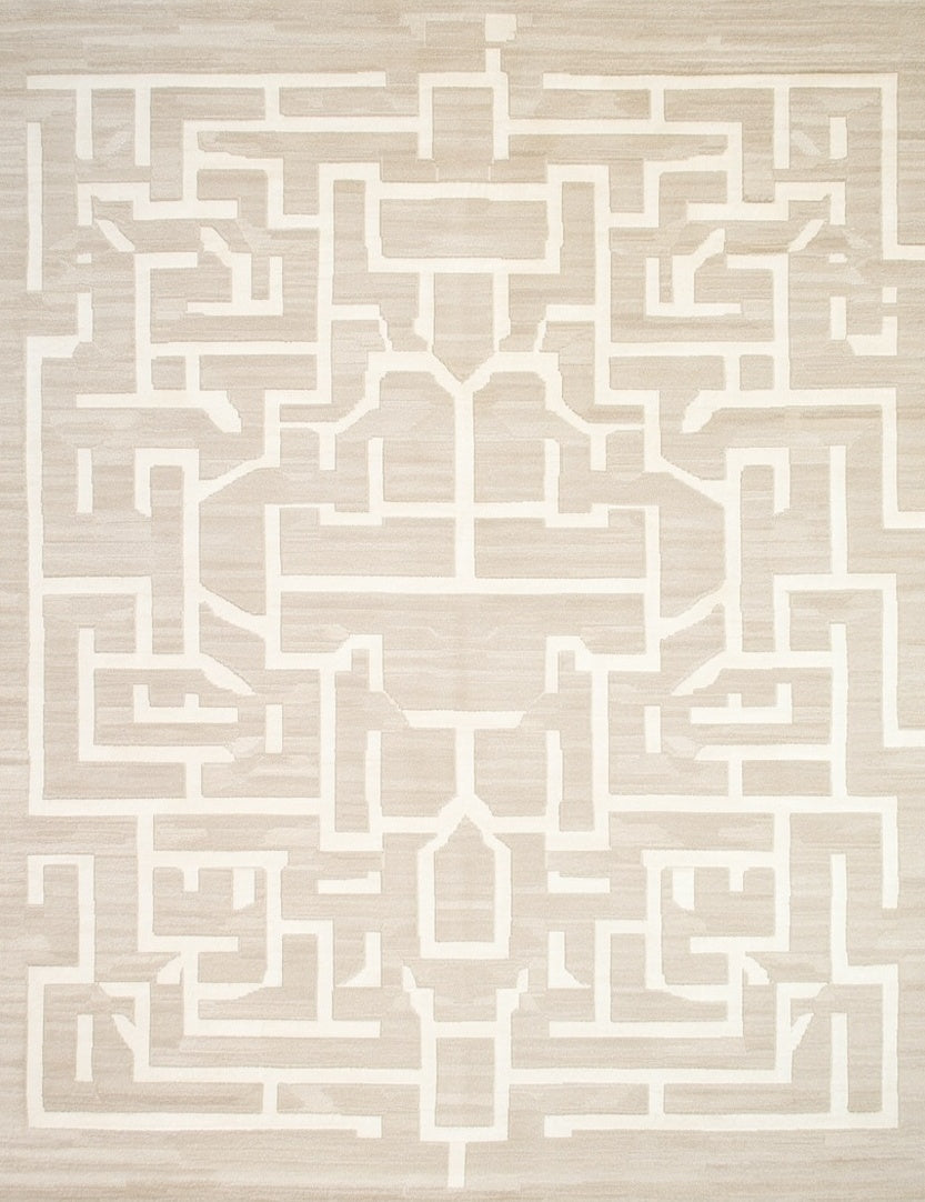 Contemporary Beige High Low Pile Abstracted Tilework(Beige)