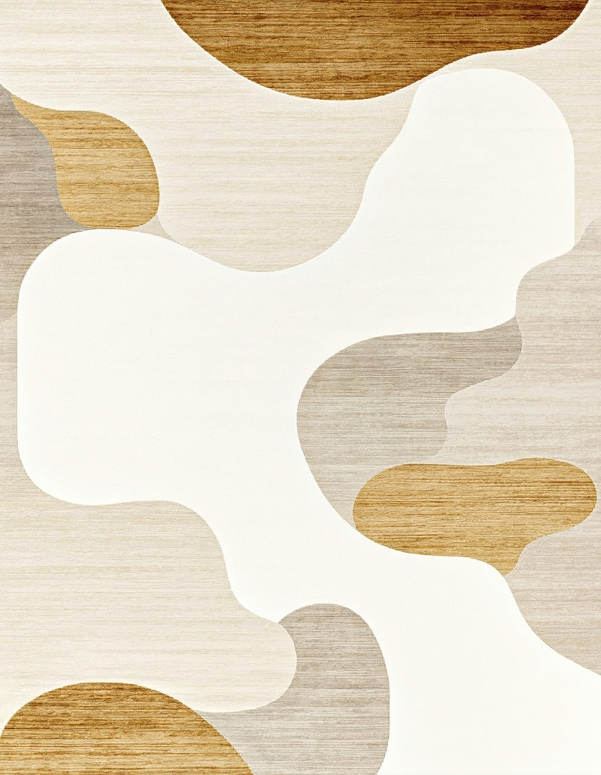 Contemporary Beige Low Pile Abstract Bordered Area(Beige)