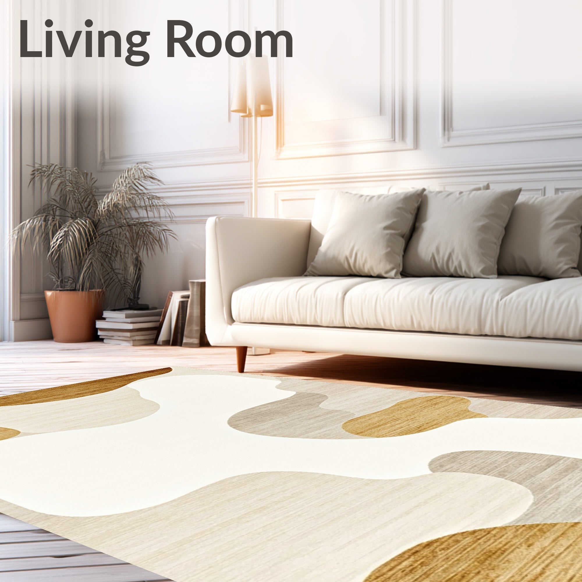 Ultra Soft Area Rug, Non Slip, Stain Resistant, Washable Area Rugs for Living Room, Bedroom, Contemporary Beige Low Pile Abstract Bordered Area(Beige) Overview: