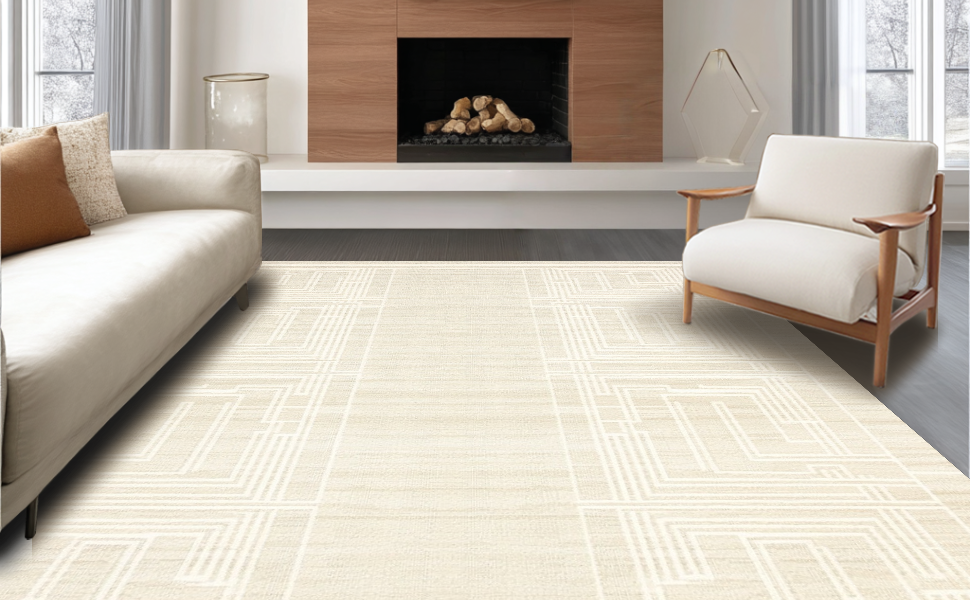 Ultra Soft Area Rug, Non Slip, Stain Resistant, Washable Area Rugs for Living Room, Bedroom, Contemporary Beige Patterned Overlay(Beige) Overview:
