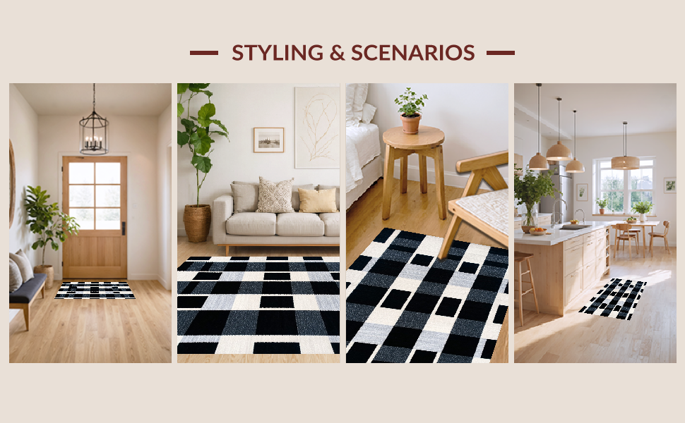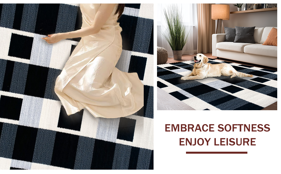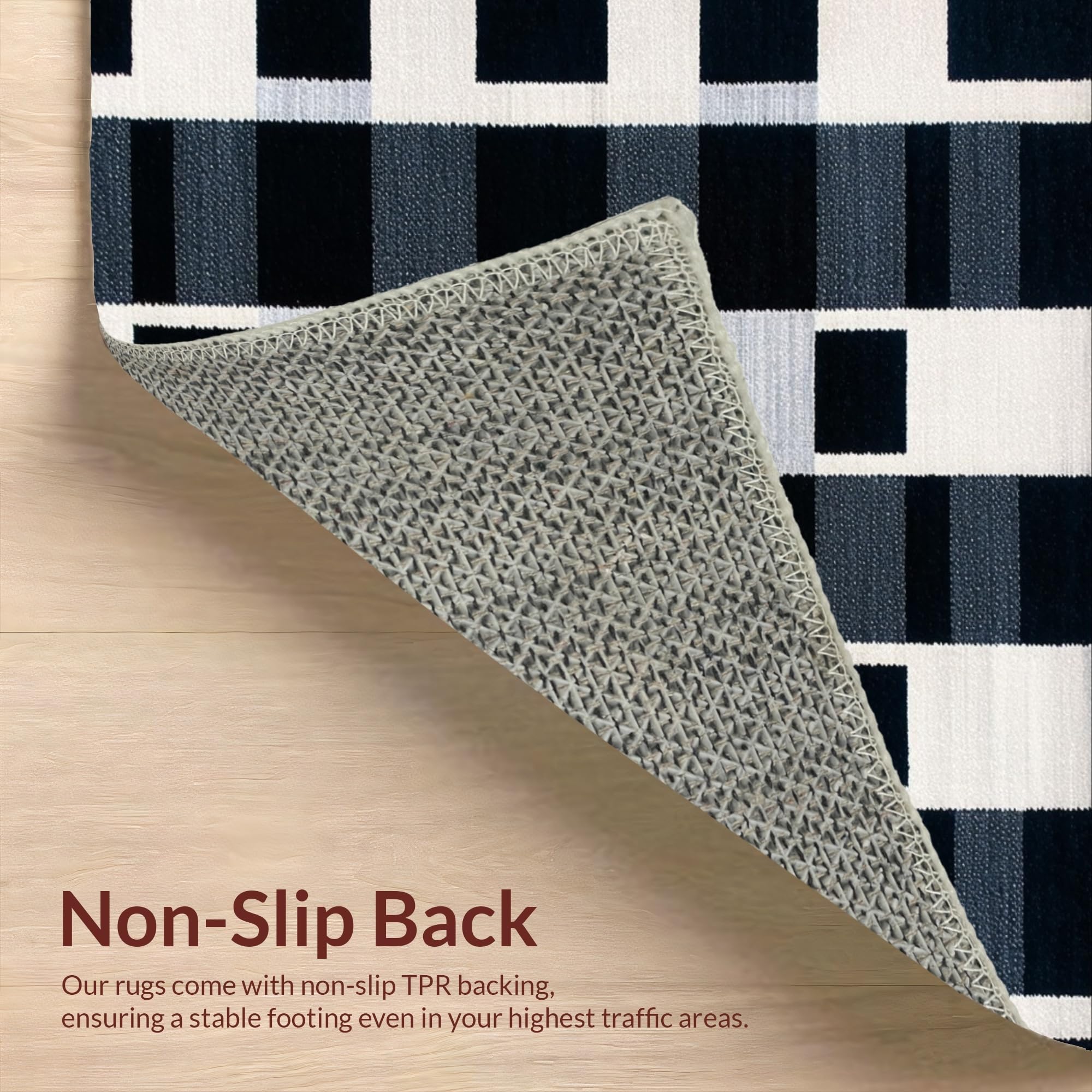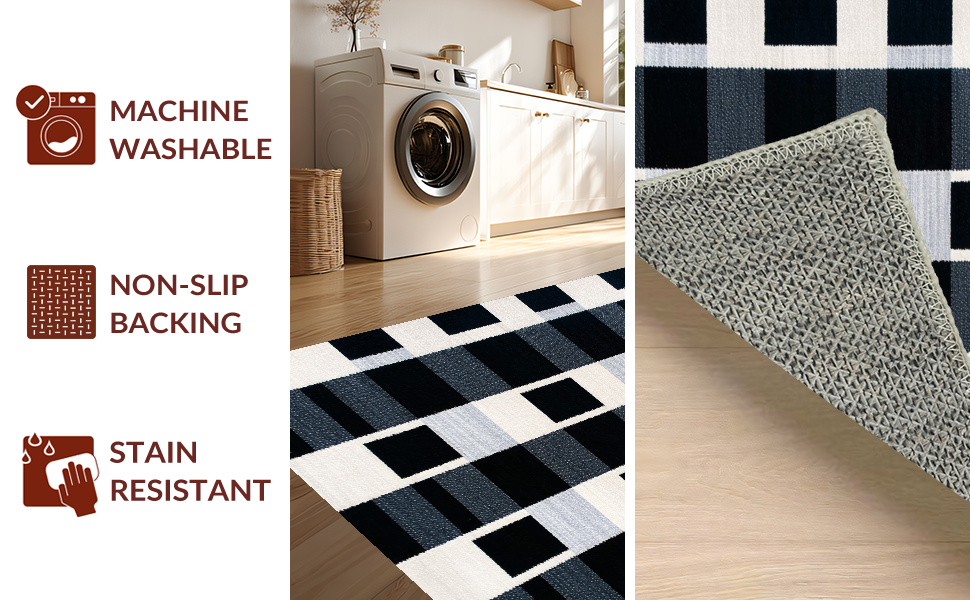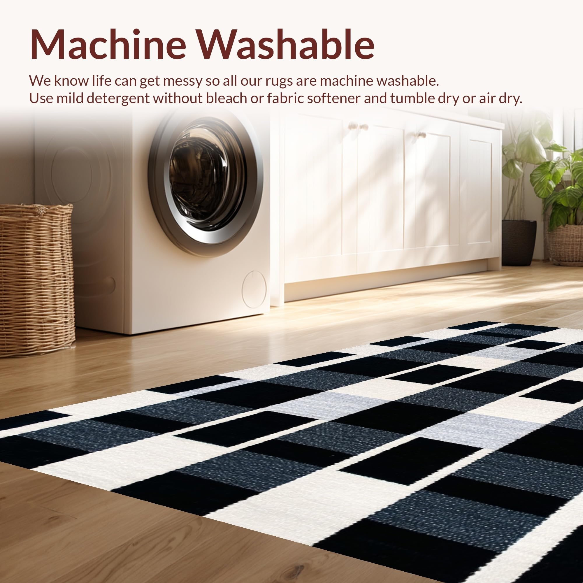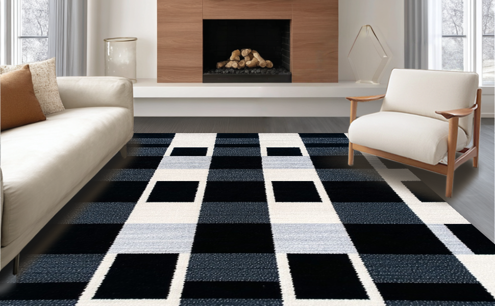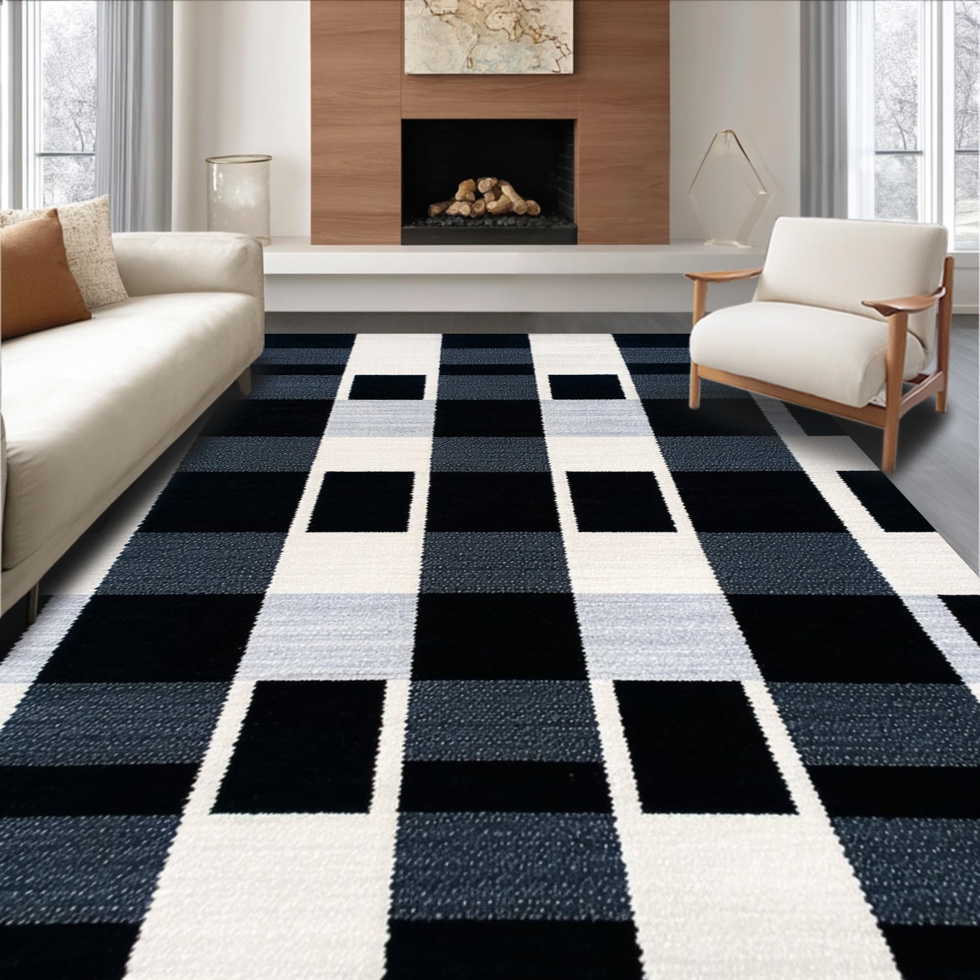 Ultra Soft Area Rug, Non Slip, Stain Resistant, Washable Area Rugs for Living Room, Bedroom, Contemporary Black and White Checkered Aesthetic(Black) Overview: