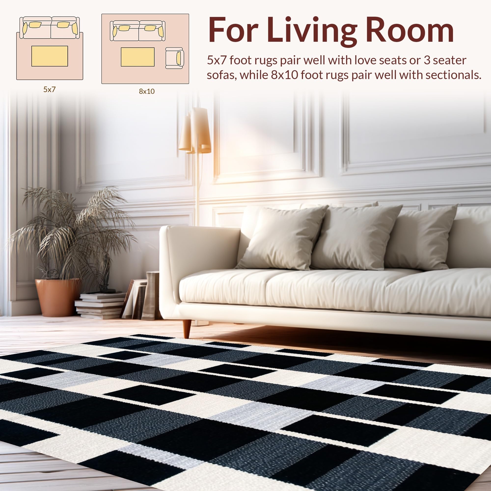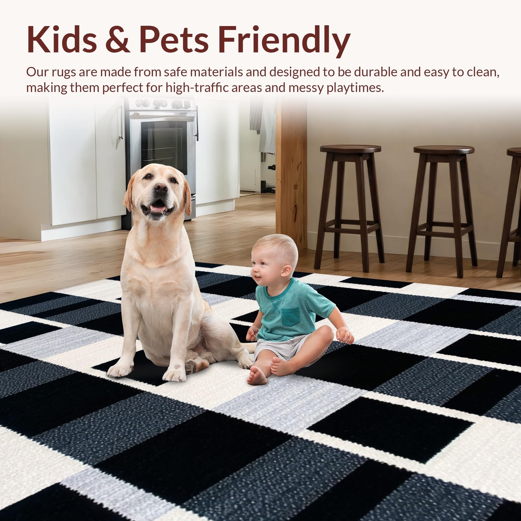 Ultra Soft Area Rug, Non Slip, Stain Resistant, Washable Area Rugs for Living Room, Bedroom, Contemporary Black and White Checkered Aesthetic(Black)