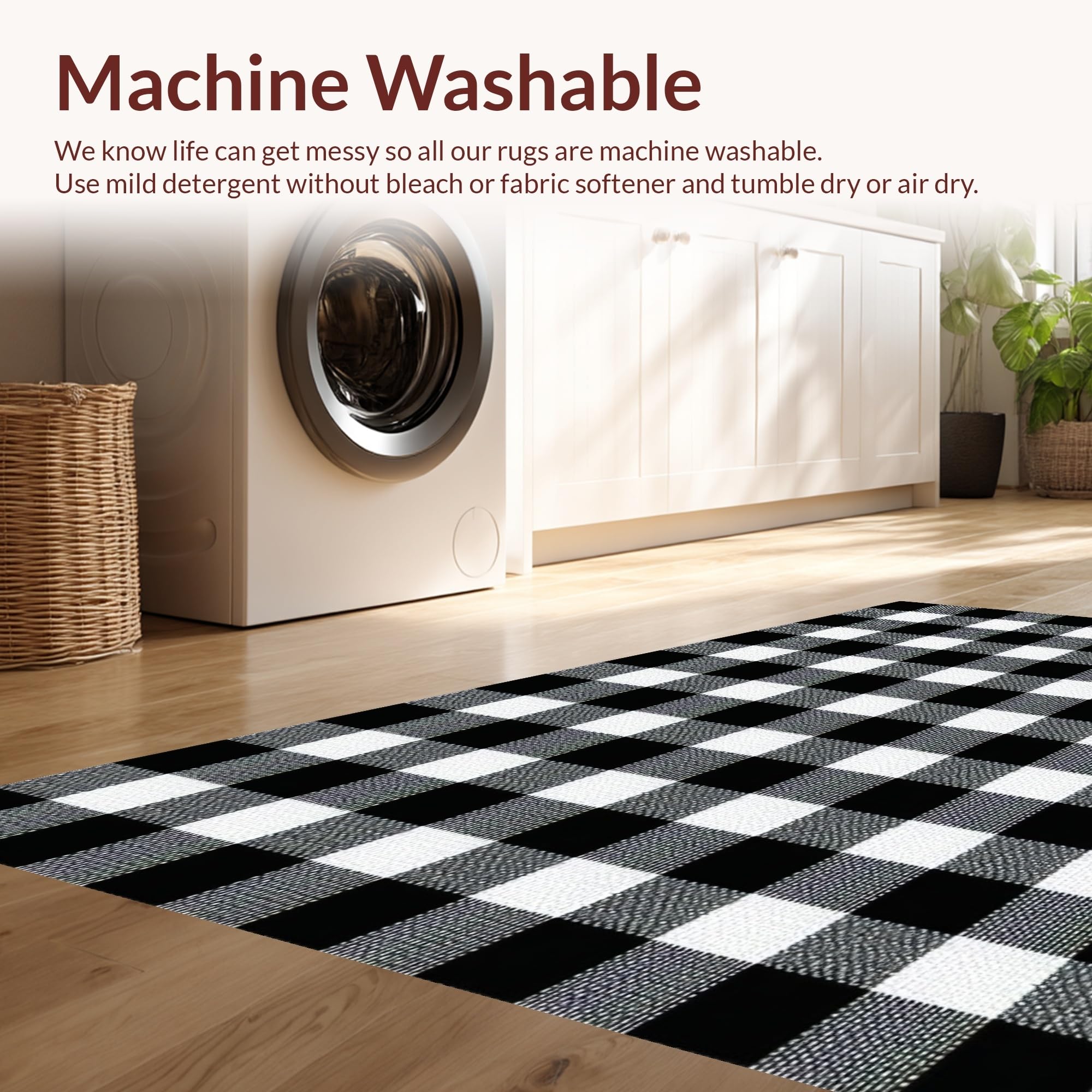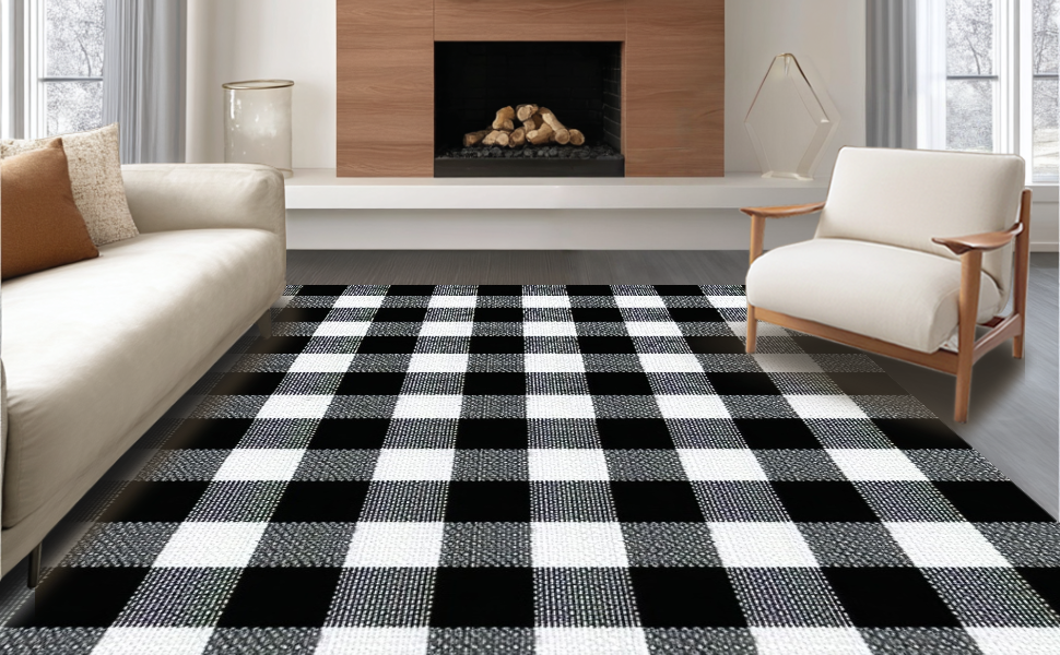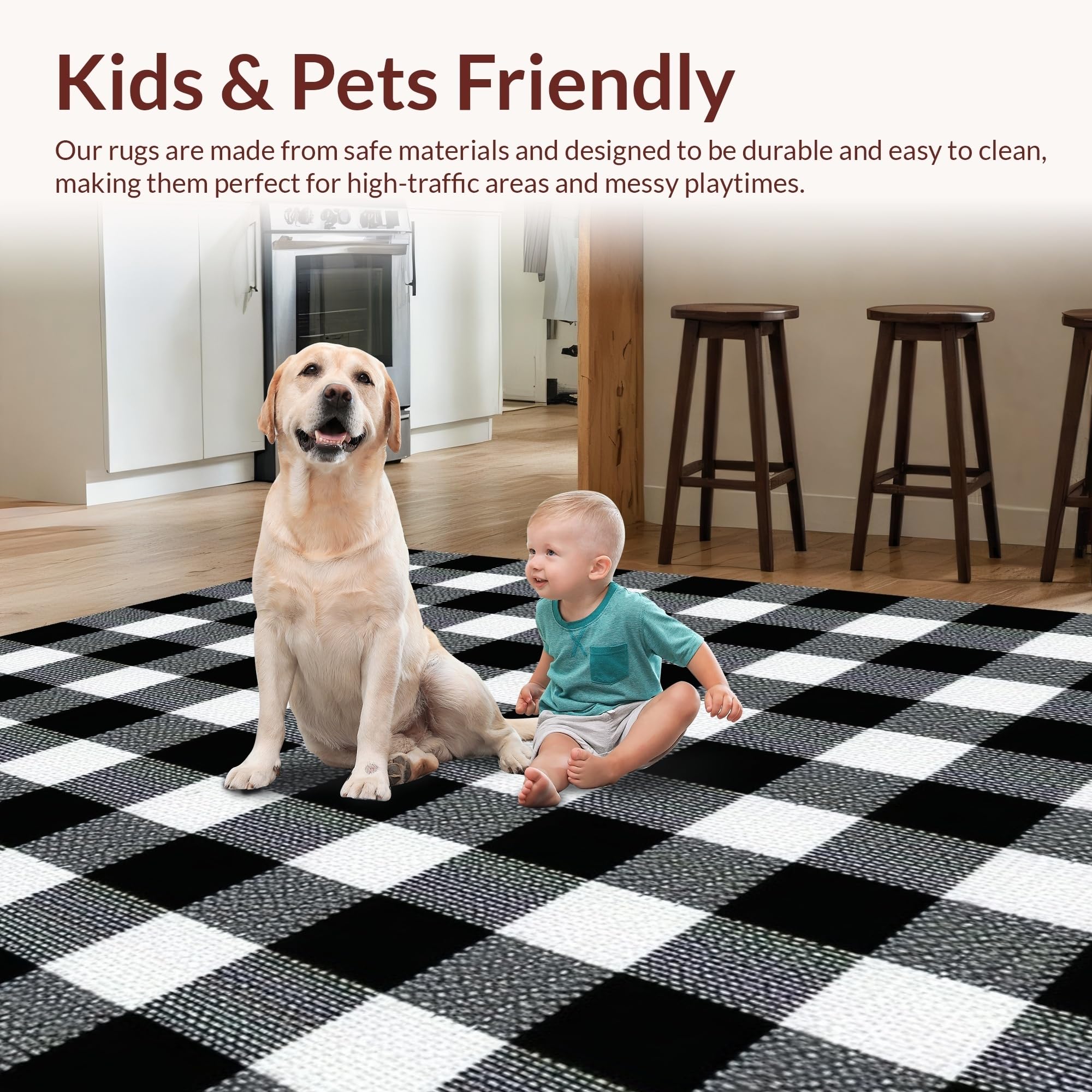 Ultra Soft Area Rug, Non Slip, Stain Resistant, Washable Area Rugs for Living Room, Bedroom, Contemporary Black and White Grid(Black) Overview: