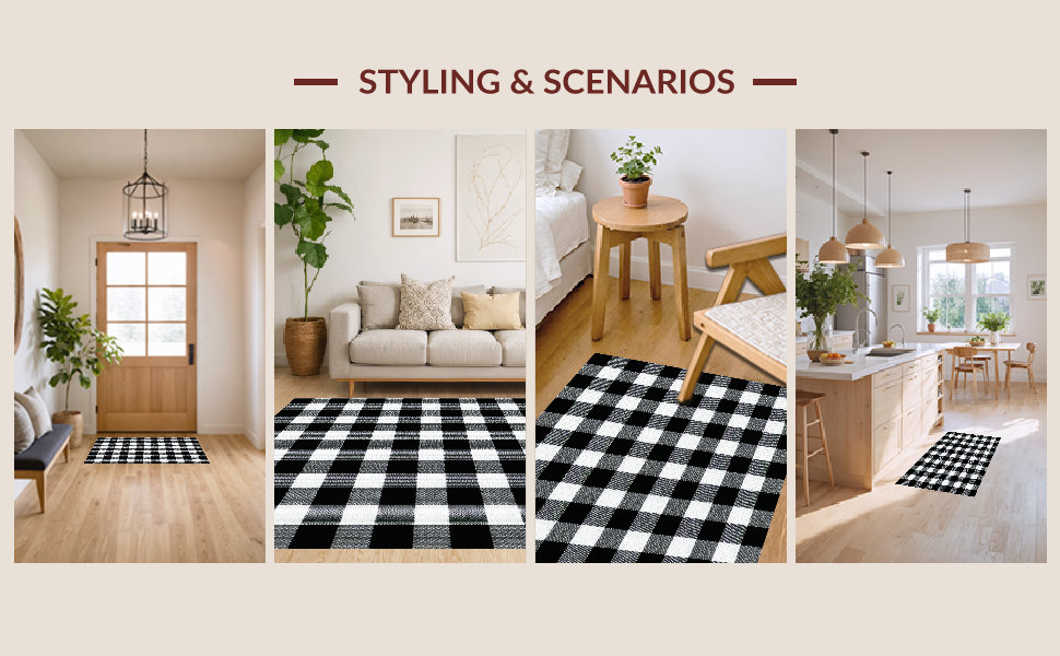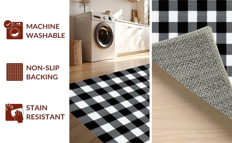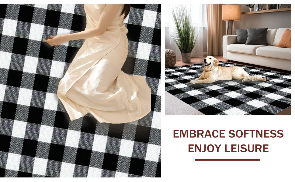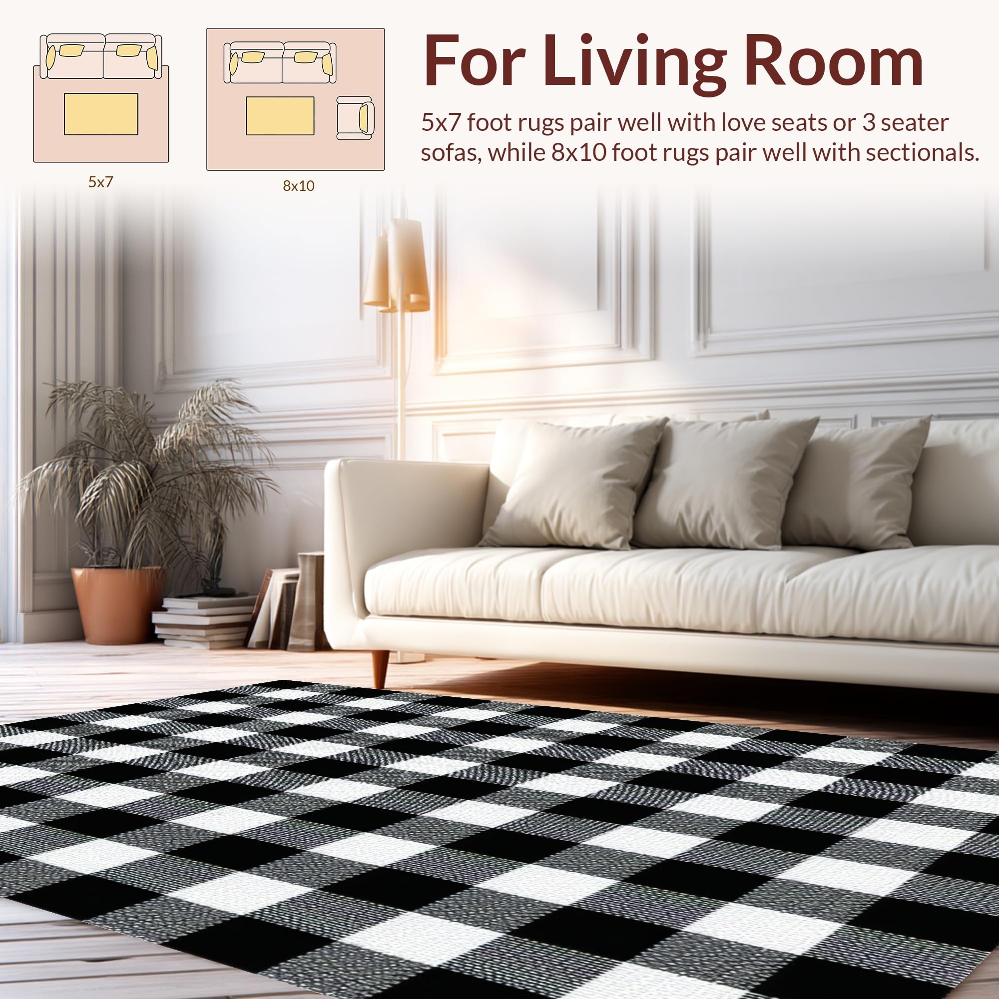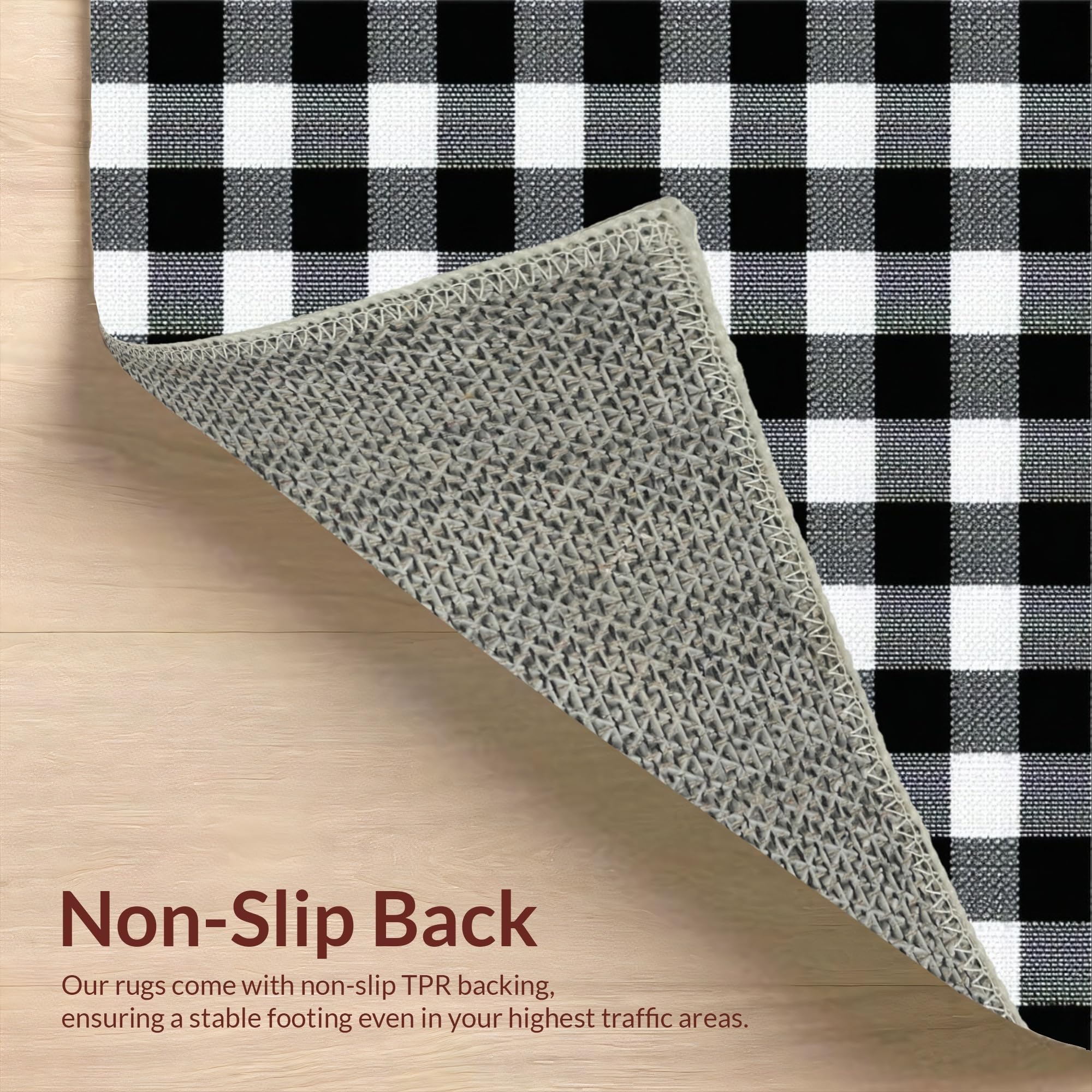 Ultra Soft Area Rug, Non Slip, Stain Resistant, Washable Area Rugs for Living Room, Bedroom, Contemporary Black and White Grid(Black) Overview: