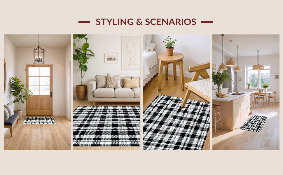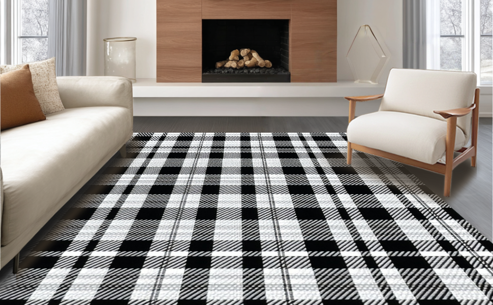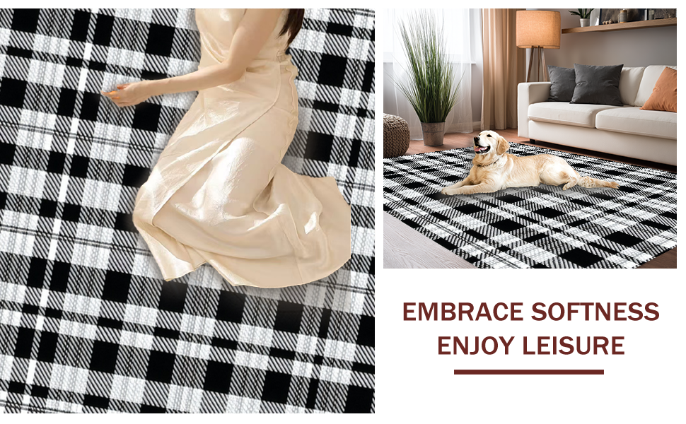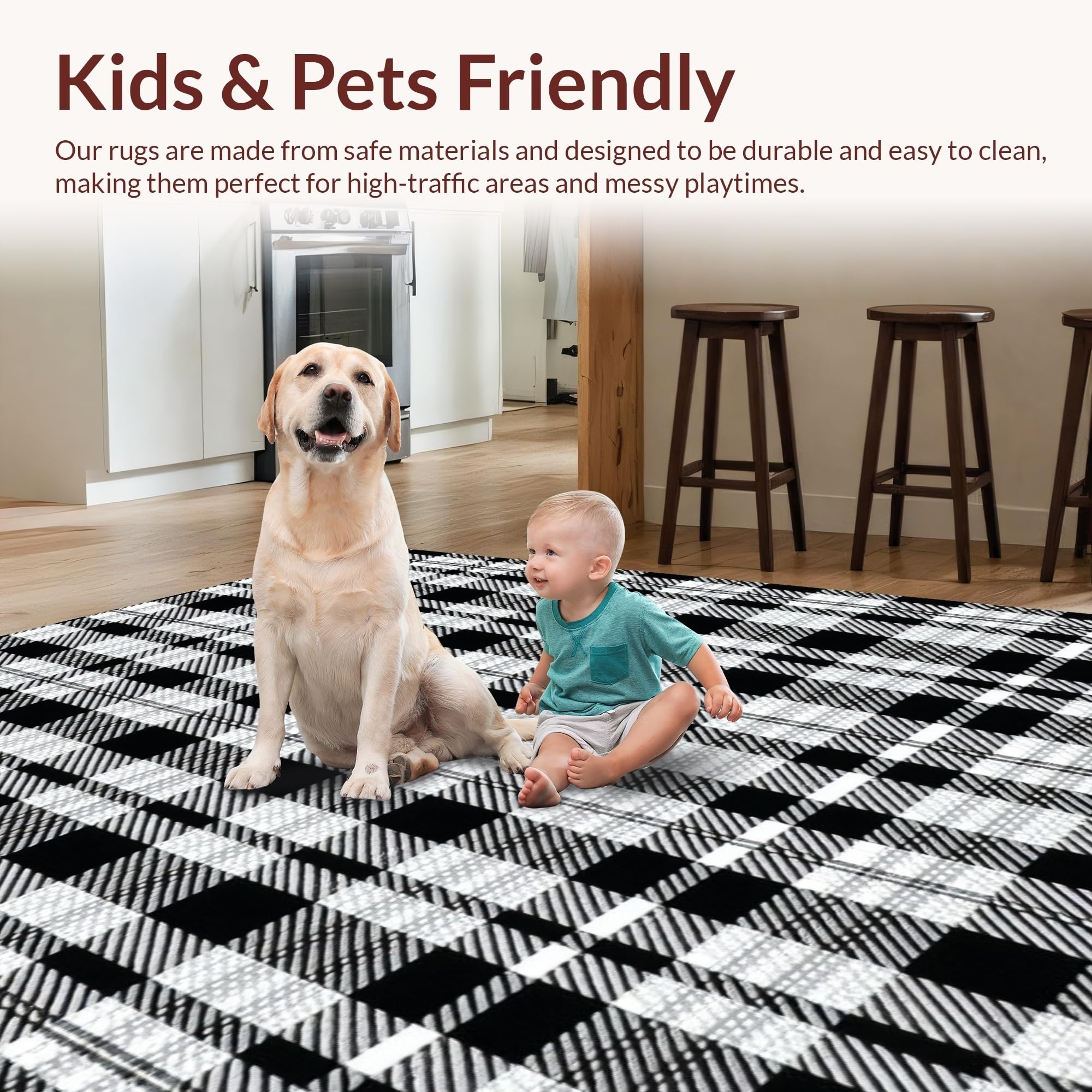 Ultra Soft Area Rug, Non Slip, Stain Resistant, Washable Area Rugs for Living Room, Bedroom, Contemporary Black and White Pattern(Black) Overview: