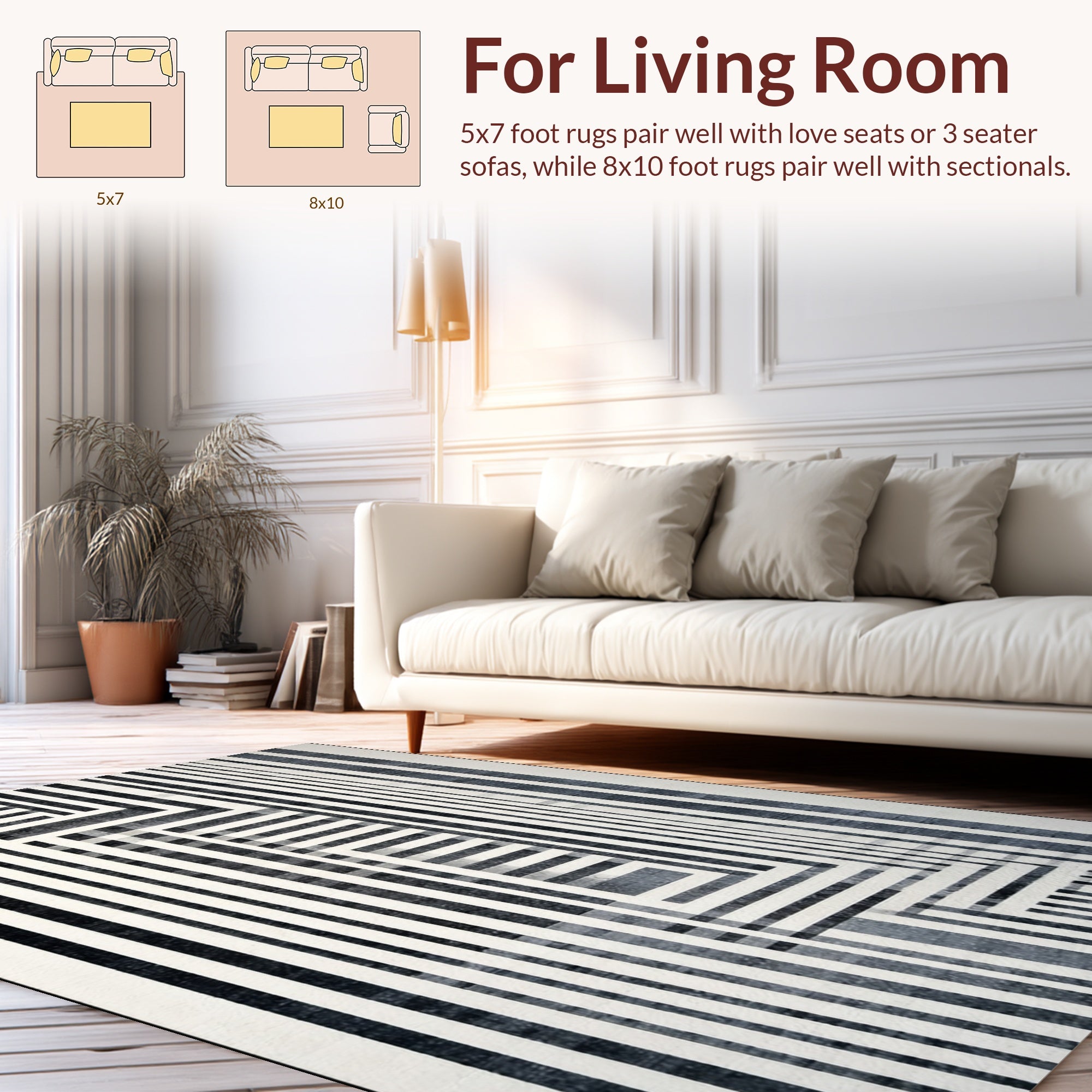 Ultra Soft Area Rug, Non Slip, Stain Resistant, Washable Area Rugs for Living Room, Bedroom, Contemporary Black and White Patterned Area Rug for Modern Patios(Black) Overview: