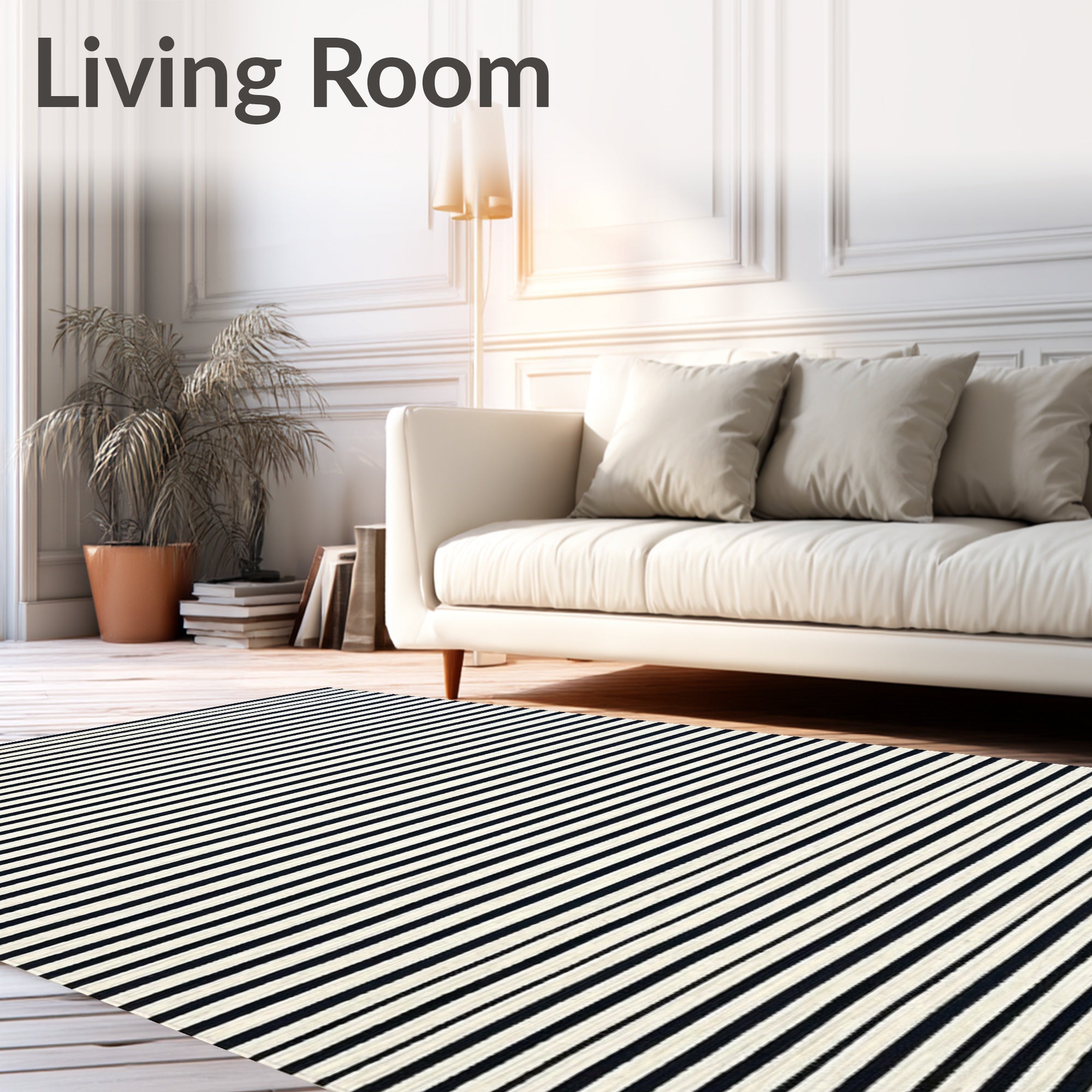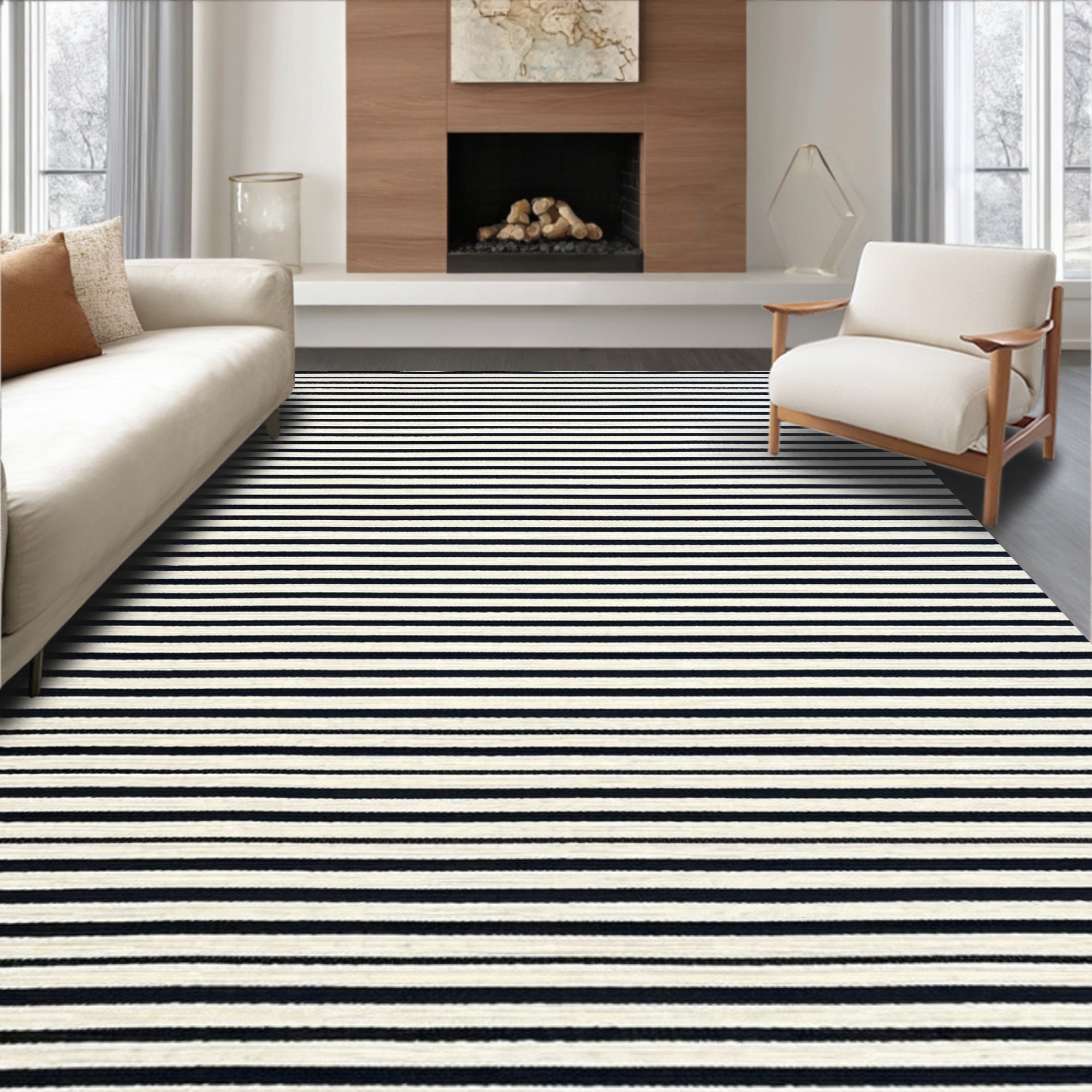 Ultra Soft Area Rug, Non Slip, Stain Resistant, Washable Area Rugs for Living Room, Bedroom, Contemporary Black and White Striped Area Chic Home Decor(Black) Overview: