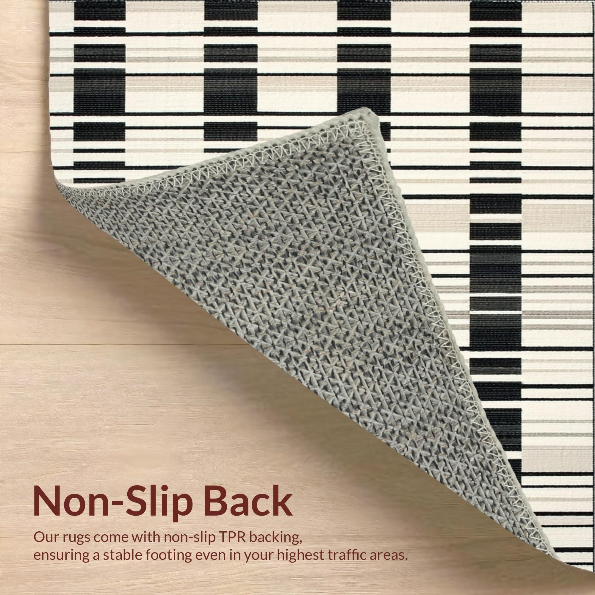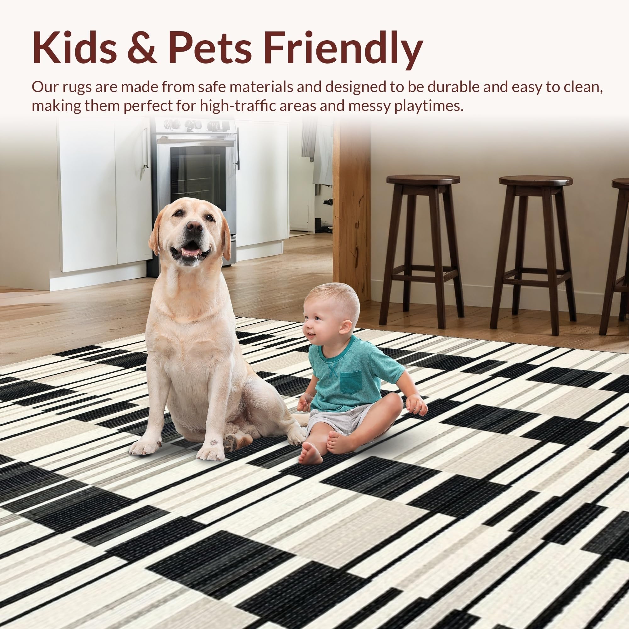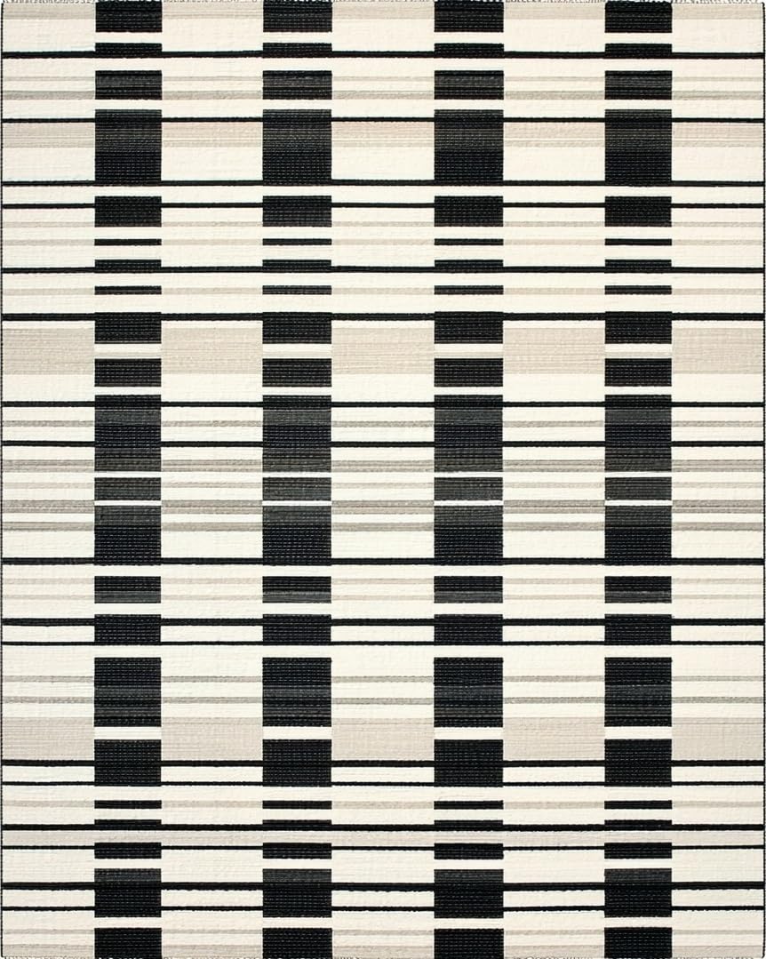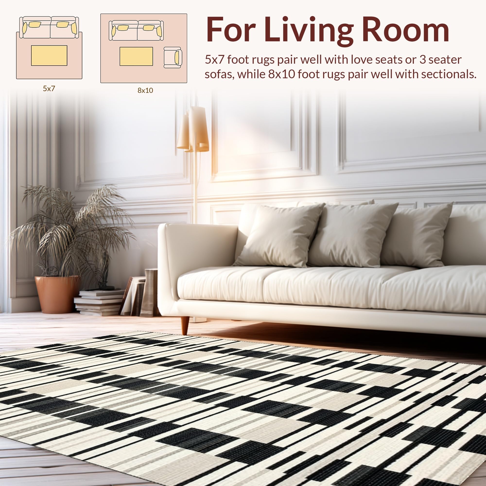 Ultra Soft Area Rug, Non Slip, Stain Resistant, Washable Area Rugs for Living Room, Bedroom, Contemporary Black And White Striped Carpet For Versatile Decor(Beige) Overview: