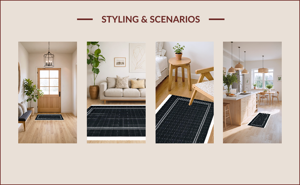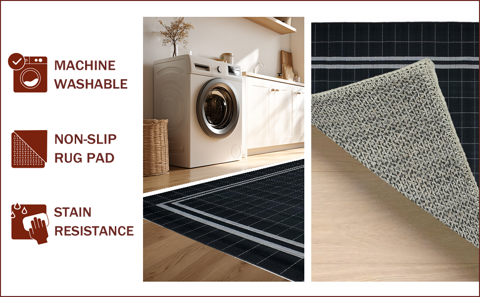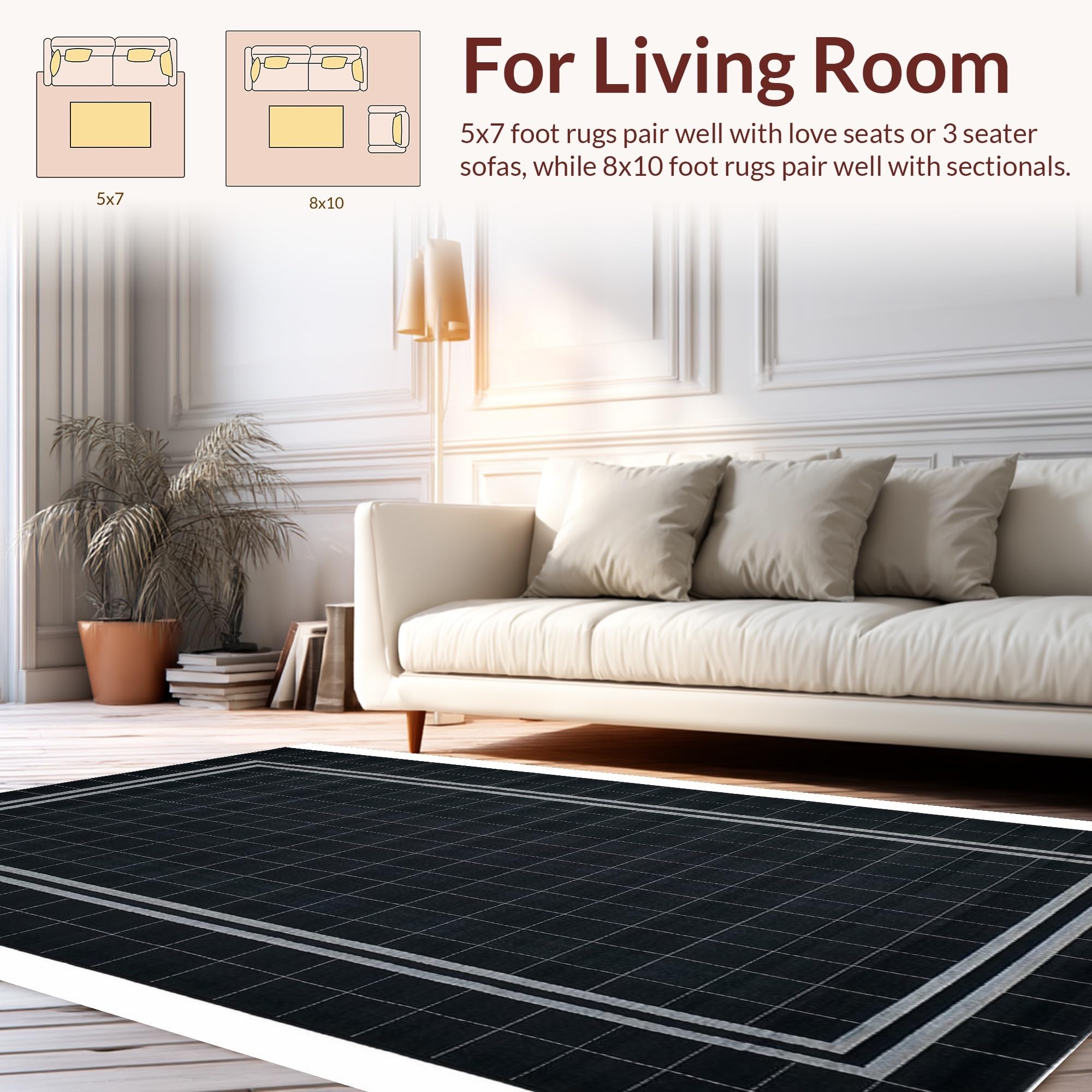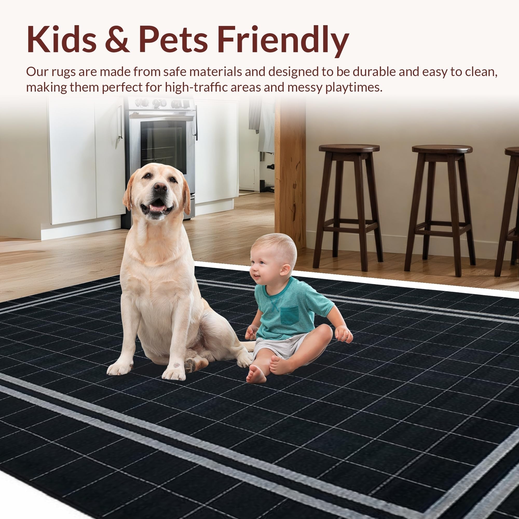 Ultra Soft Area Rug, Non Slip, Stain Resistant, Washable Area Rugs for Living Room, Bedroom, Contemporary Black and White Trellis(Black) Overview: