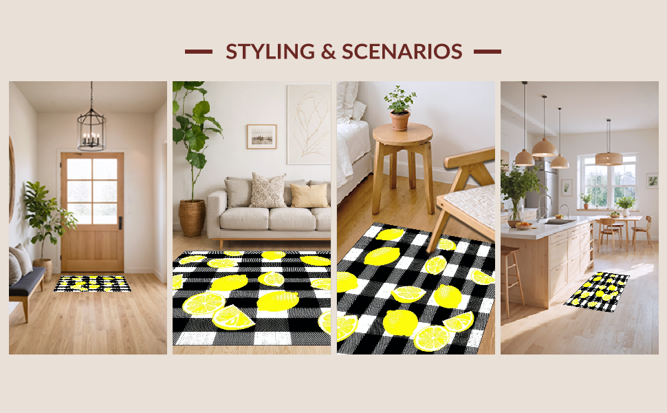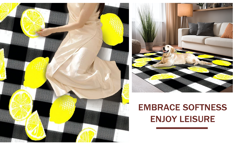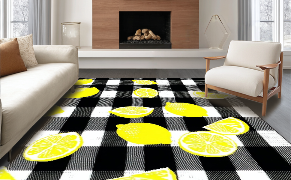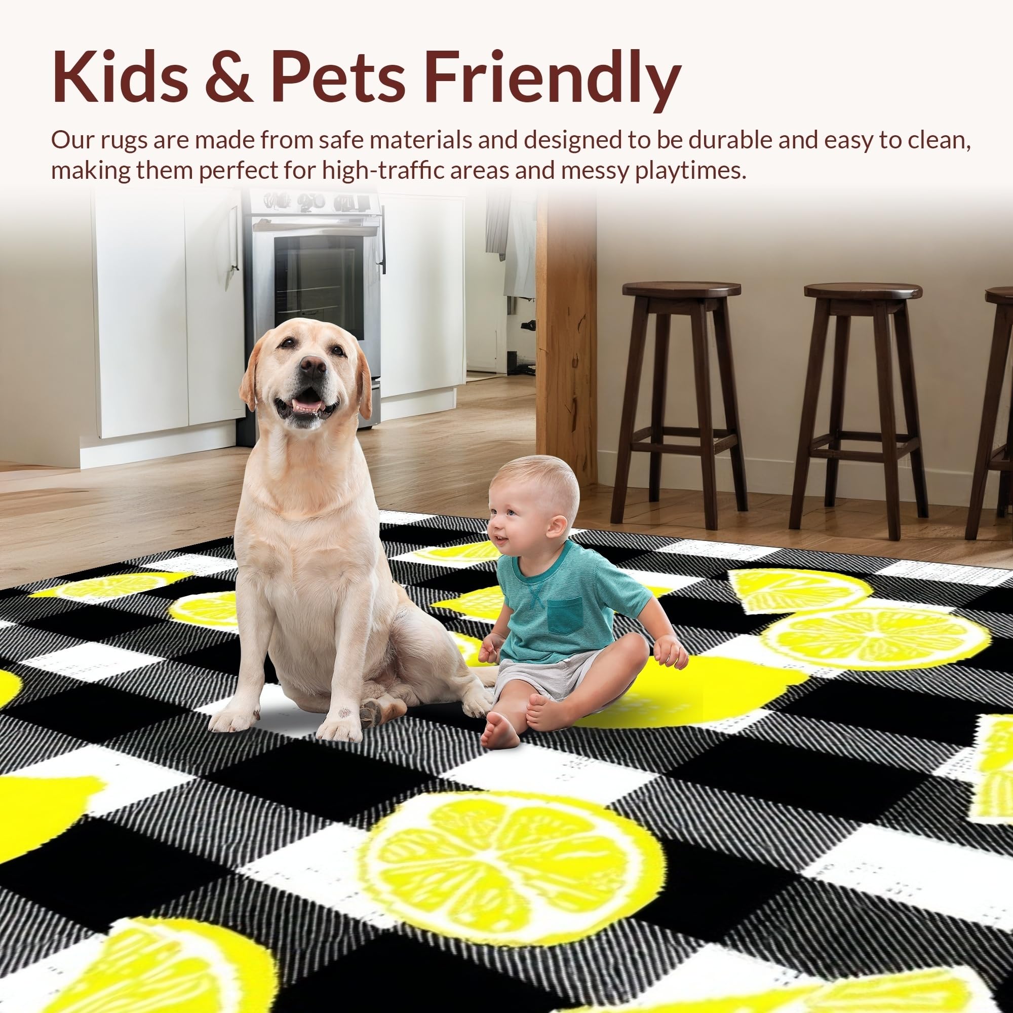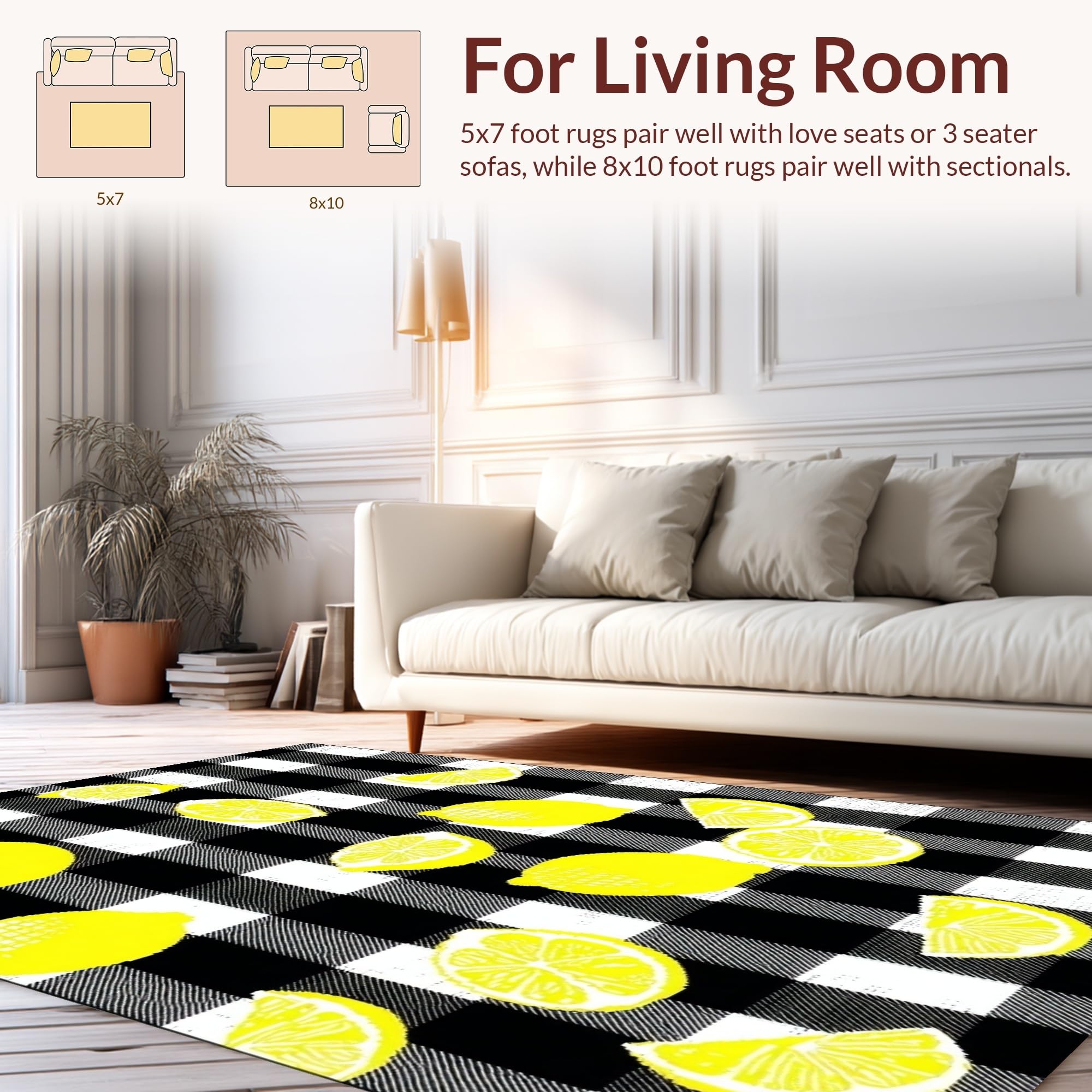 Ultra Soft Area Rug, Non Slip, Stain Resistant, Washable Area Rugs for Living Room, Bedroom, Contemporary Black and Yellow Fusion(Black) Overview: