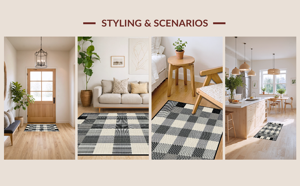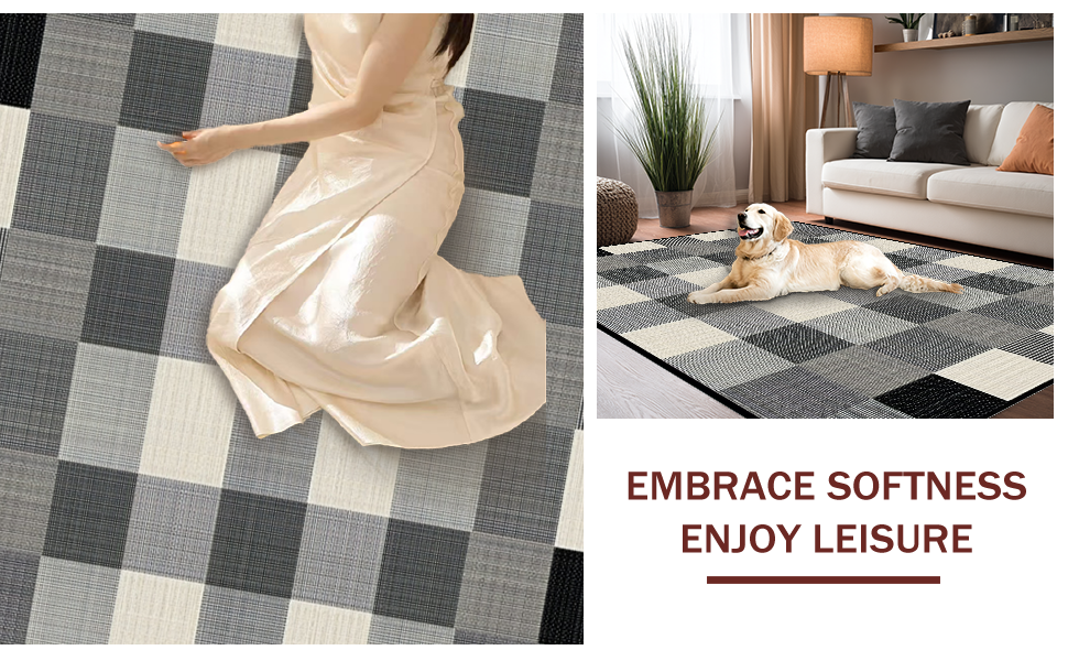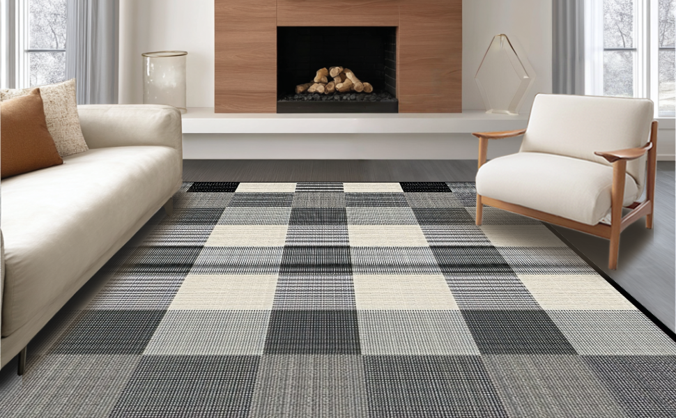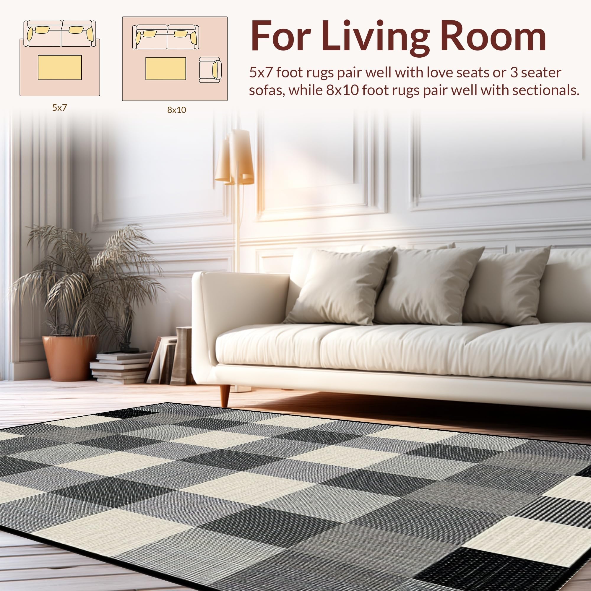 Ultra Soft Area Rug, Non Slip, Stain Resistant, Washable Area Rugs for Living Room, Bedroom, Contemporary Black Beige Harmony(Gray) Overview:
