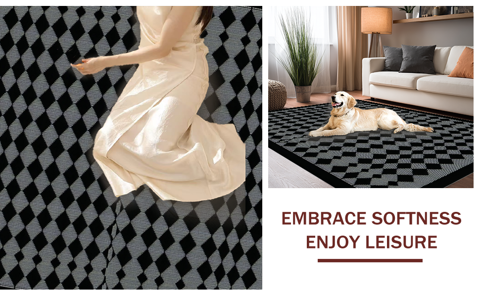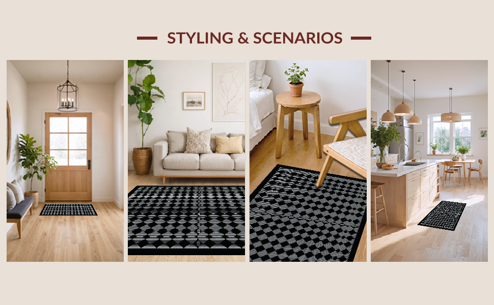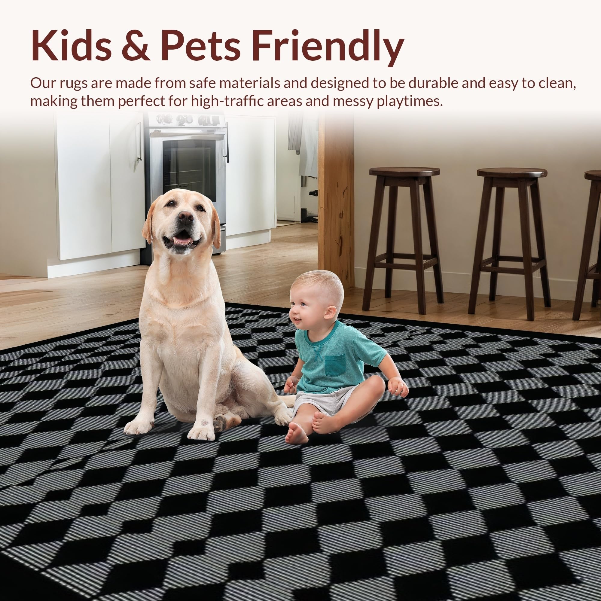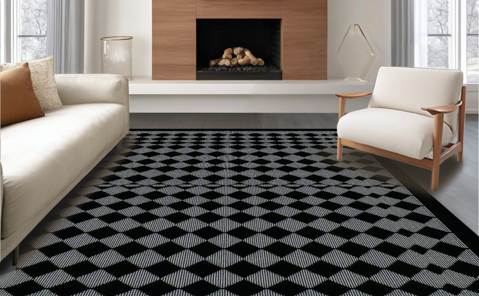 Ultra Soft Area Rug, Non Slip, Stain Resistant, Washable Area Rugs for Living Room, Bedroom, Contemporary Black Diamond Motif(Black) Overview: