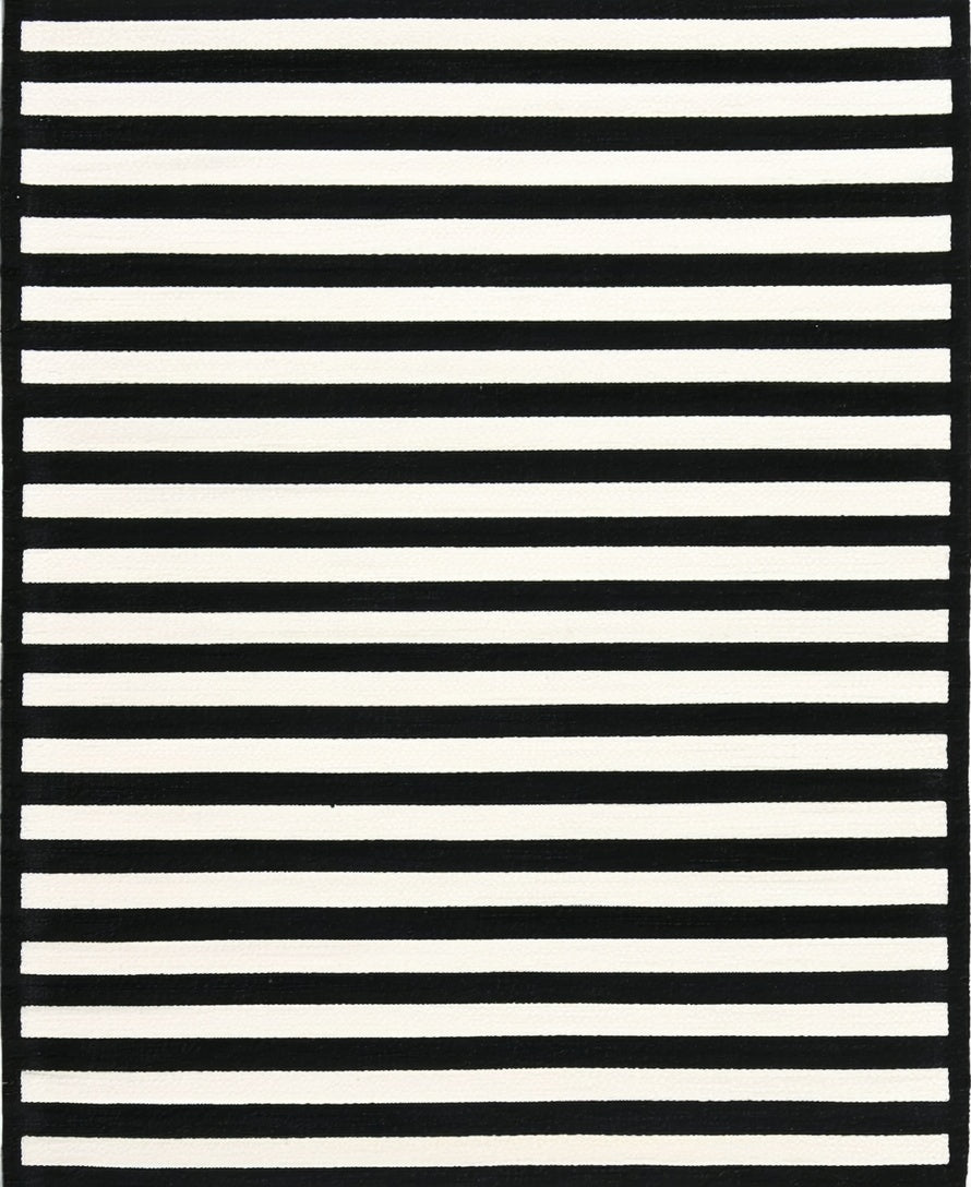 Contemporary Black White Striped Indoor/ Design(Black)