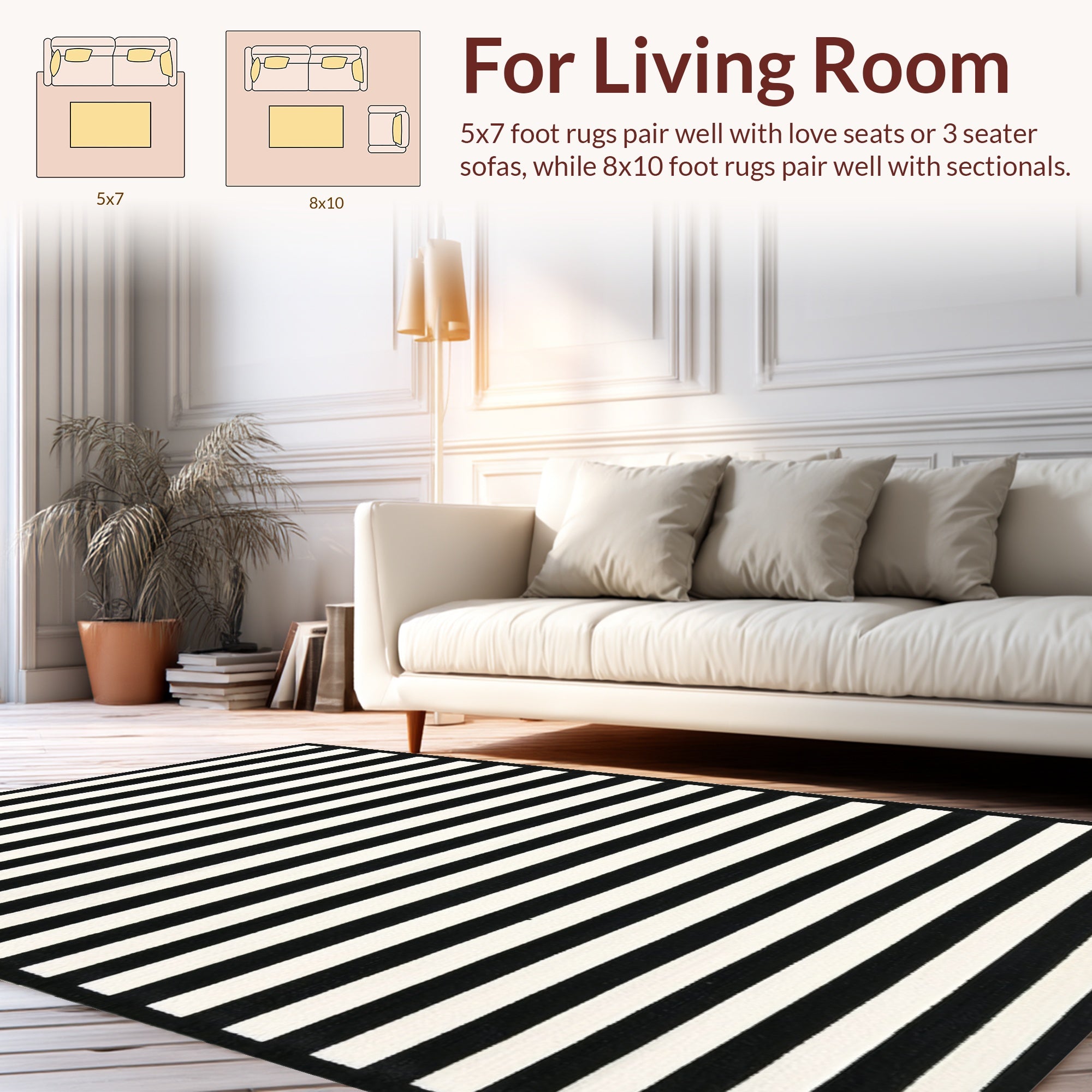Ultra Soft Area Rug, Non Slip, Stain Resistant, Washable Area Rugs for Living Room, Bedroom, Contemporary Black White Striped Rug: Indoor/Outdoor Design(Black) Overview: