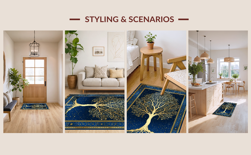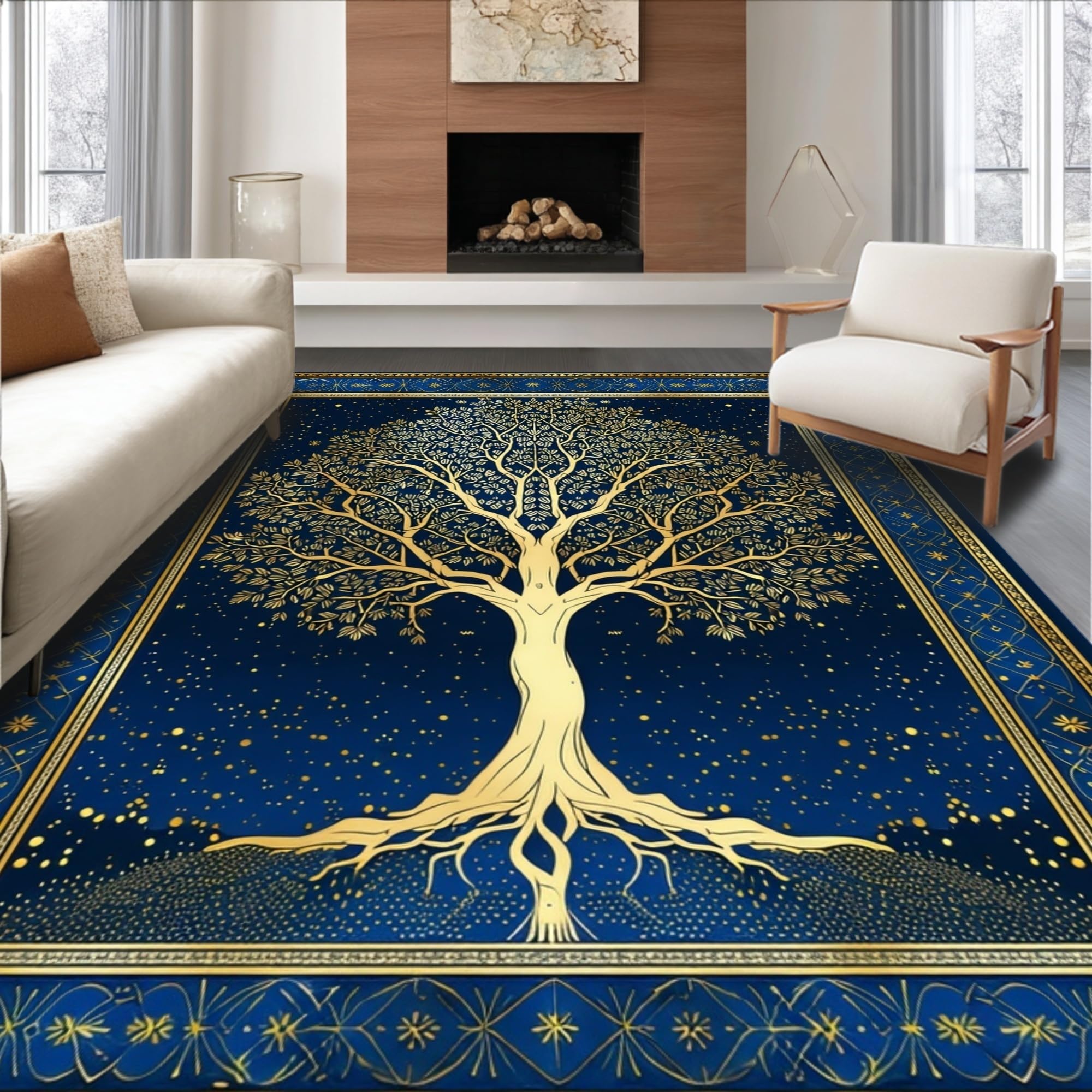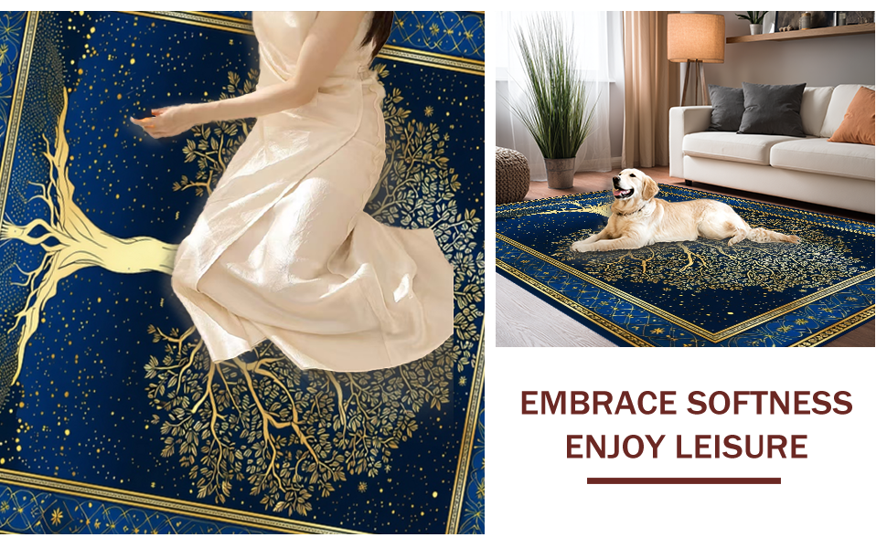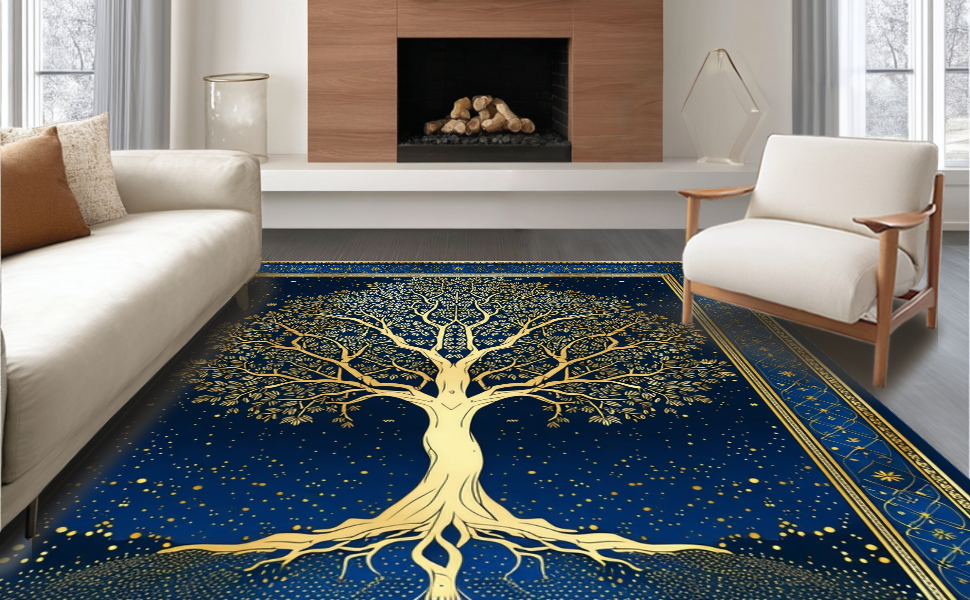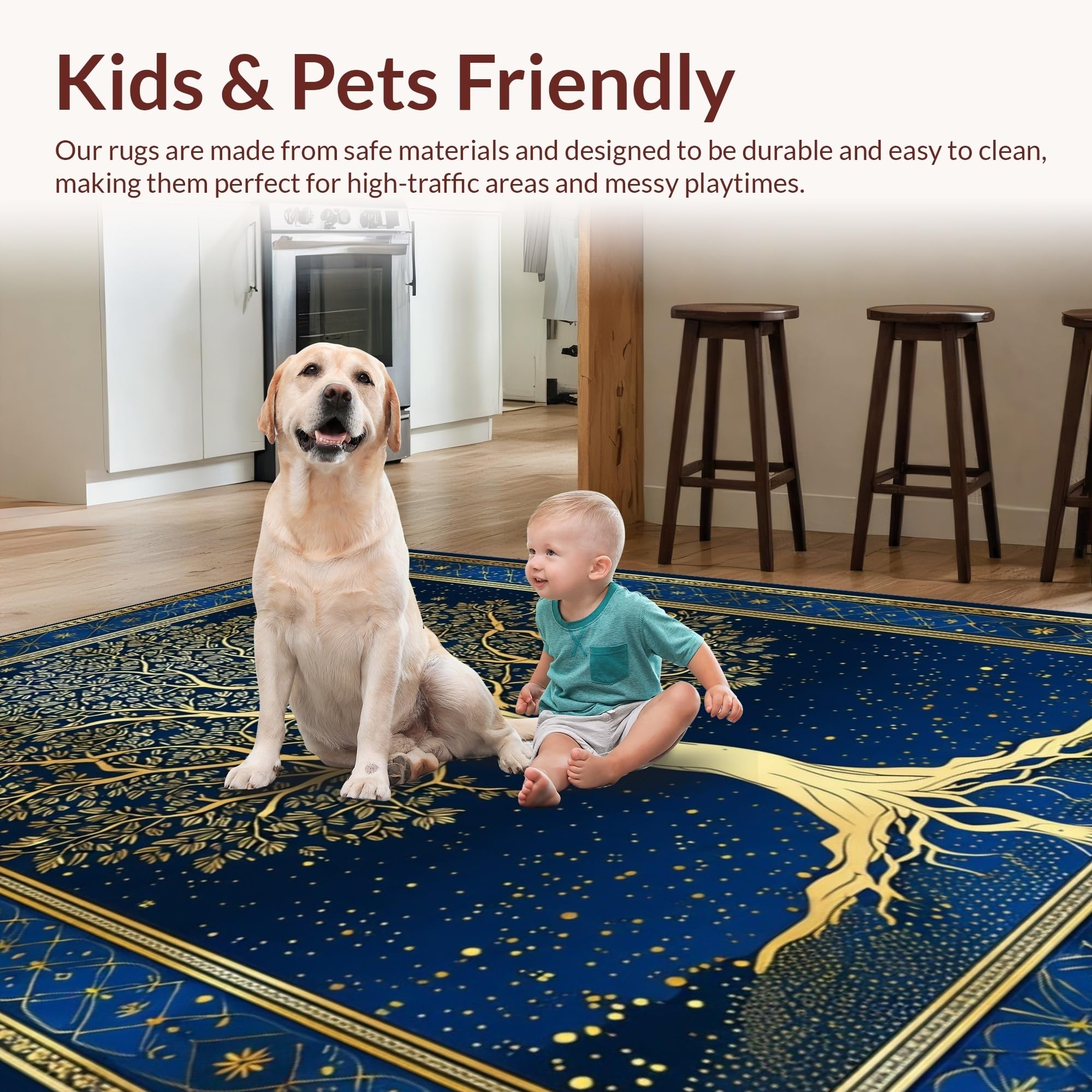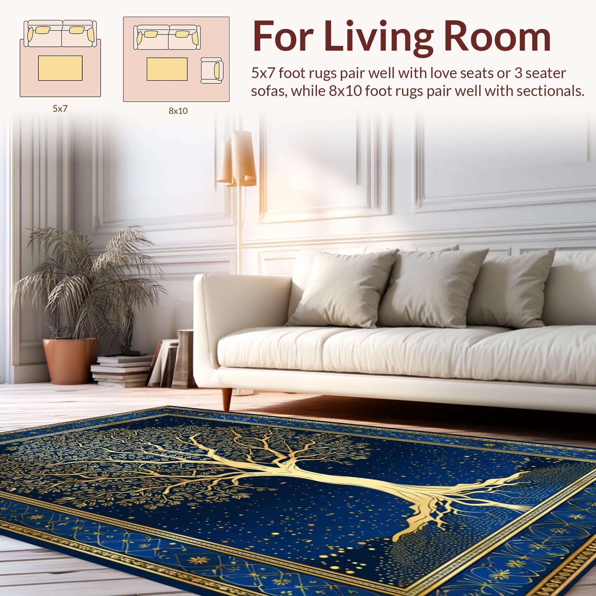 Ultra Soft Area Rug, Non Slip, Stain Resistant, Washable Area Rugs for Living Room, Bedroom, Contemporary Blue and Gold Fusion(Blue) Overview: