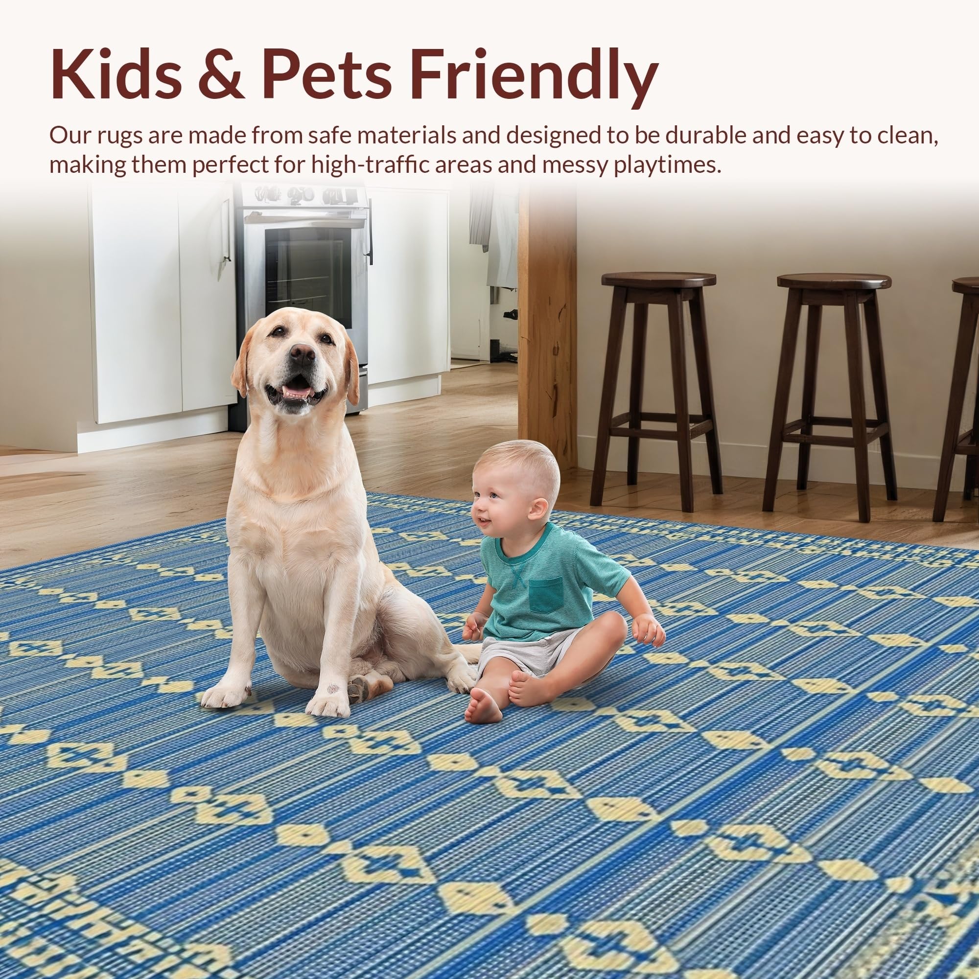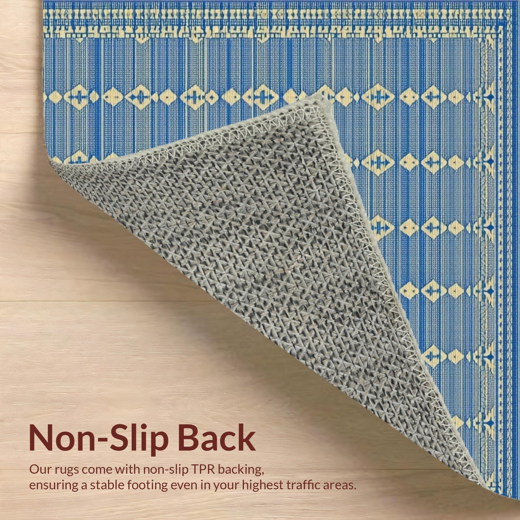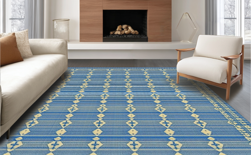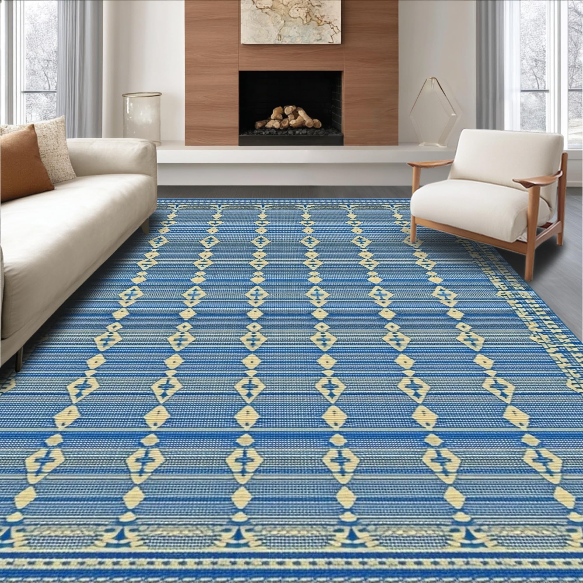Ultra Soft Area Rug, Non Slip, Stain Resistant, Washable Area Rugs for Living Room, Bedroom, Contemporary Blue Beige Trellis Design(Blue) Overview: