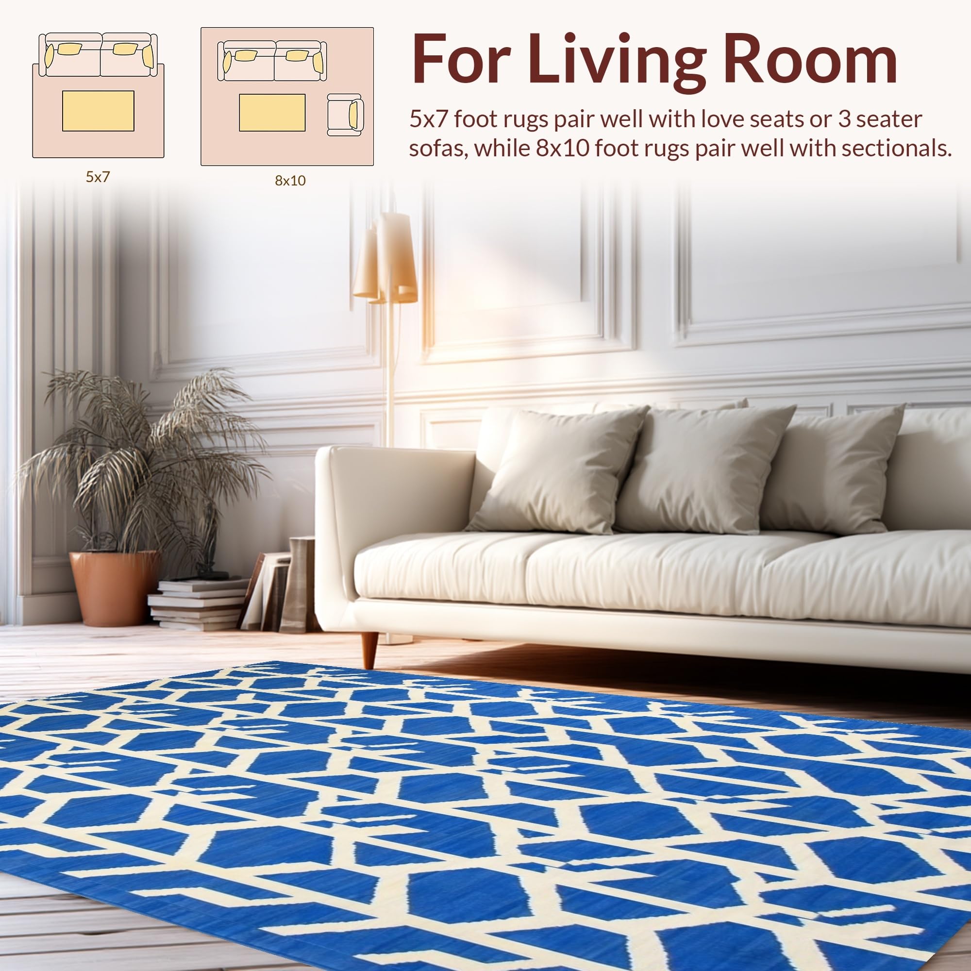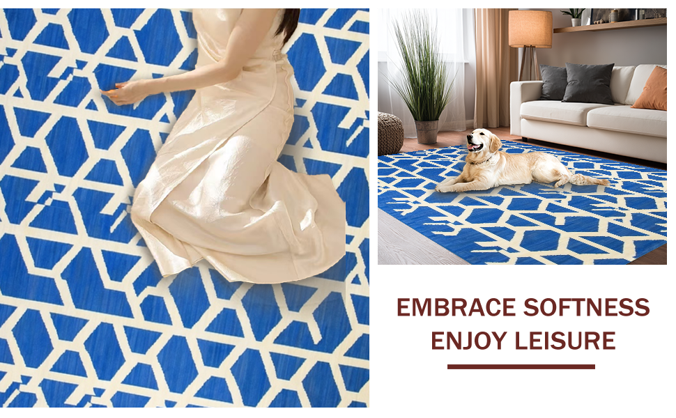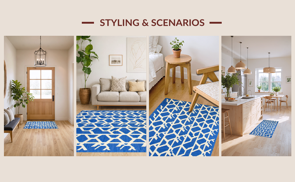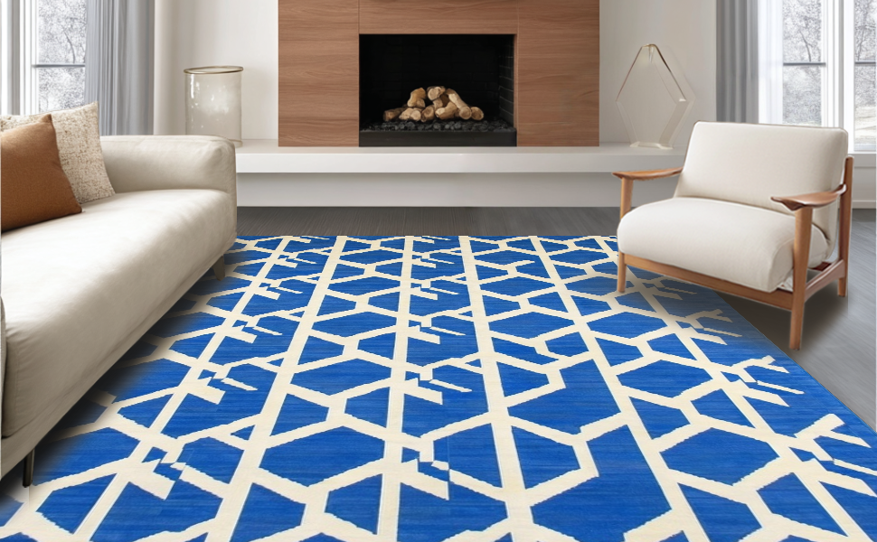 Ultra Soft Area Rug, Non Slip, Stain Resistant, Washable Area Rugs for Living Room, Bedroom, Contemporary Blue Tiled Arrangement(Blue) Overview: