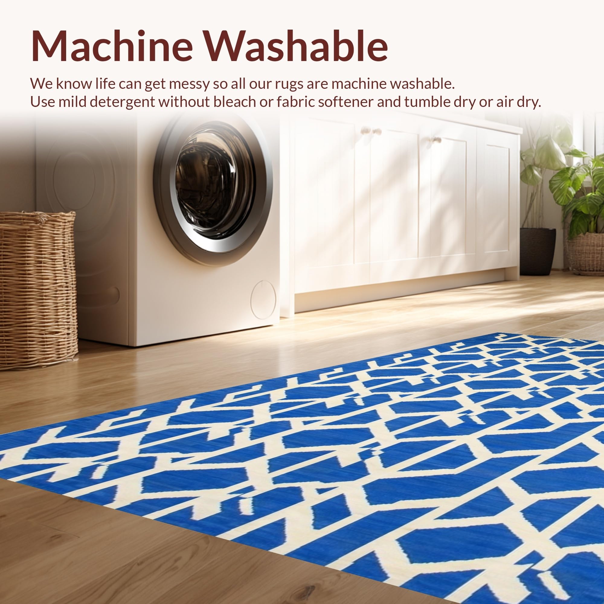 - Machine Washable: Our rugs can be easily thrown in the wash machine.