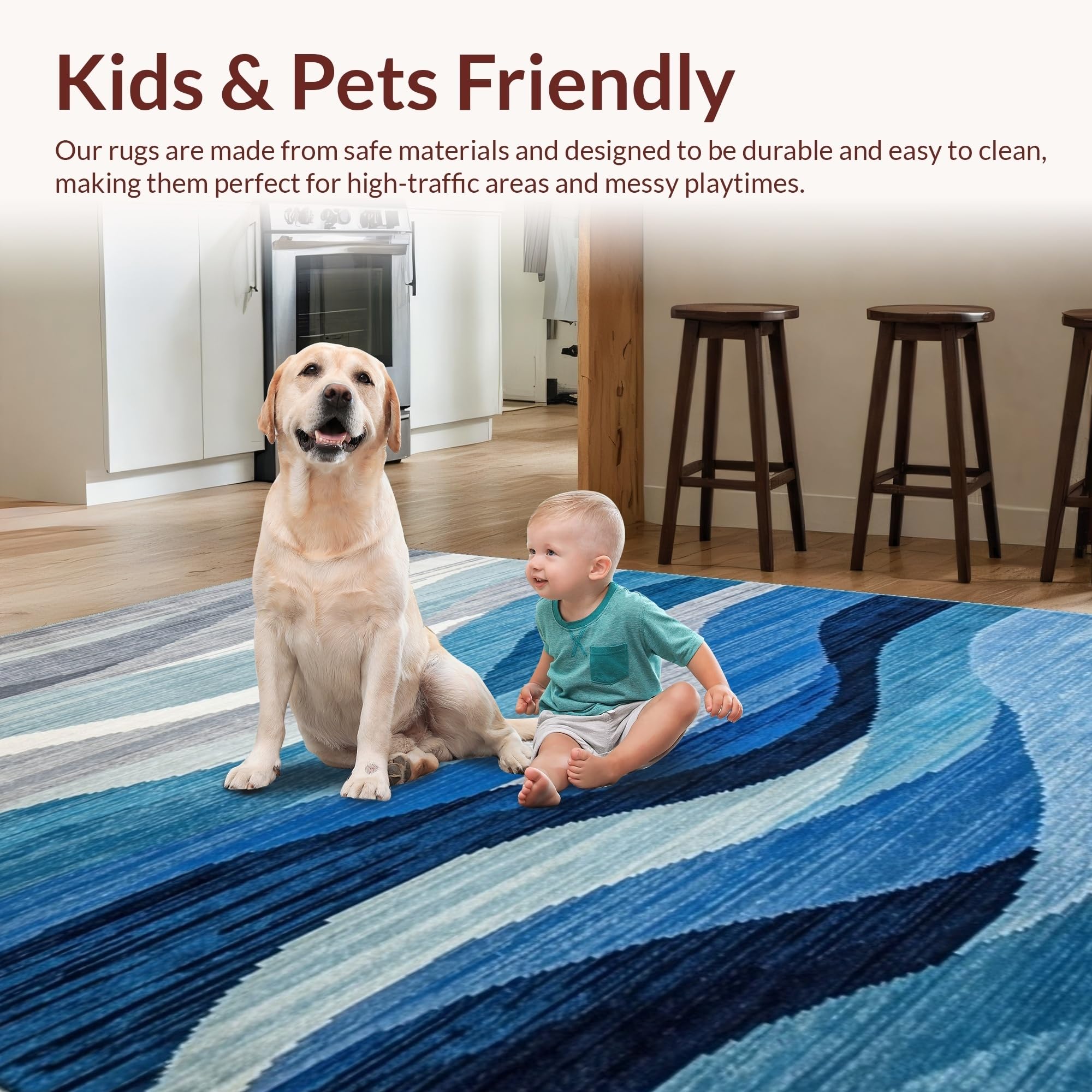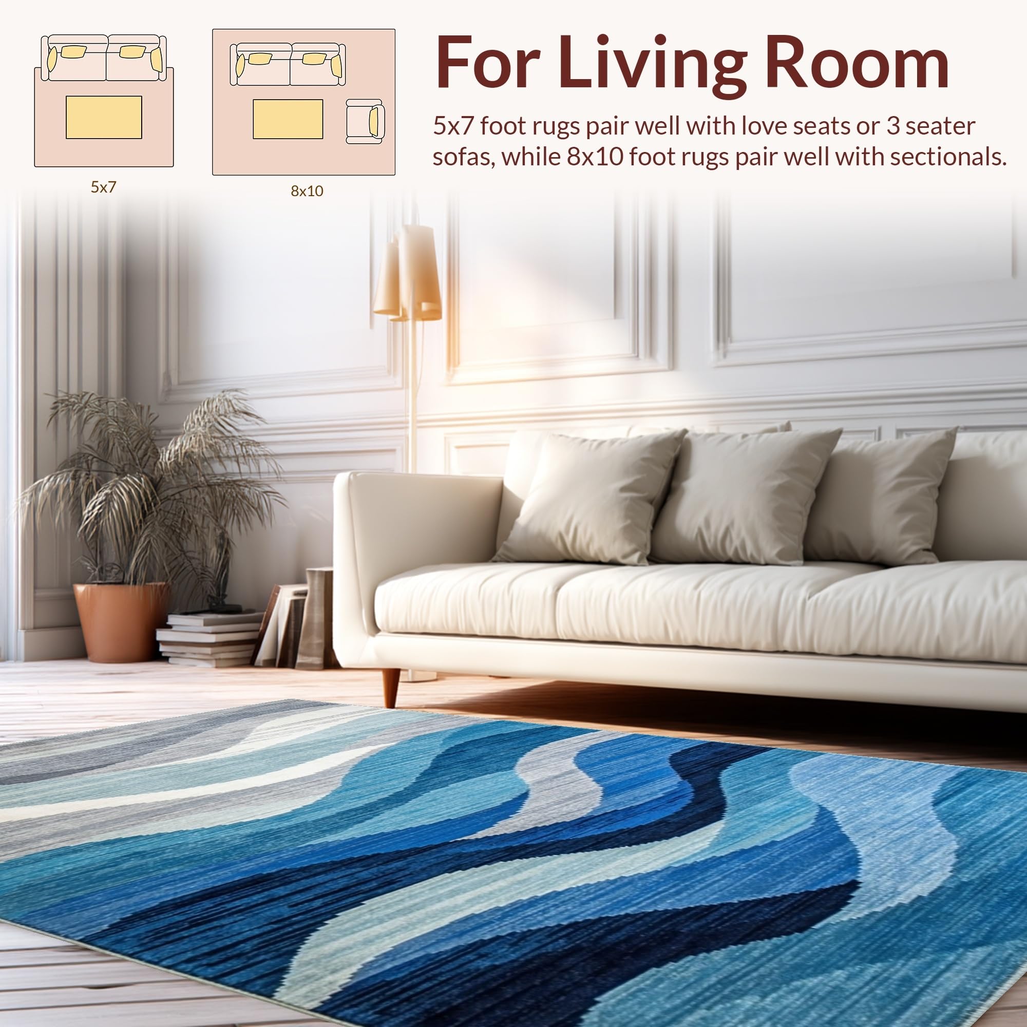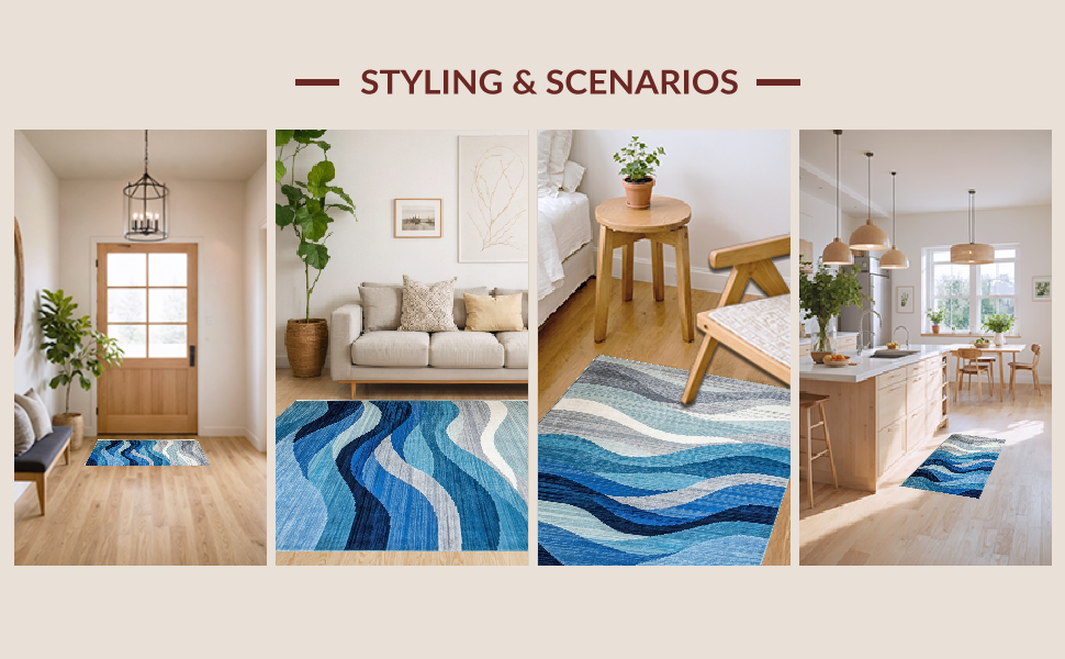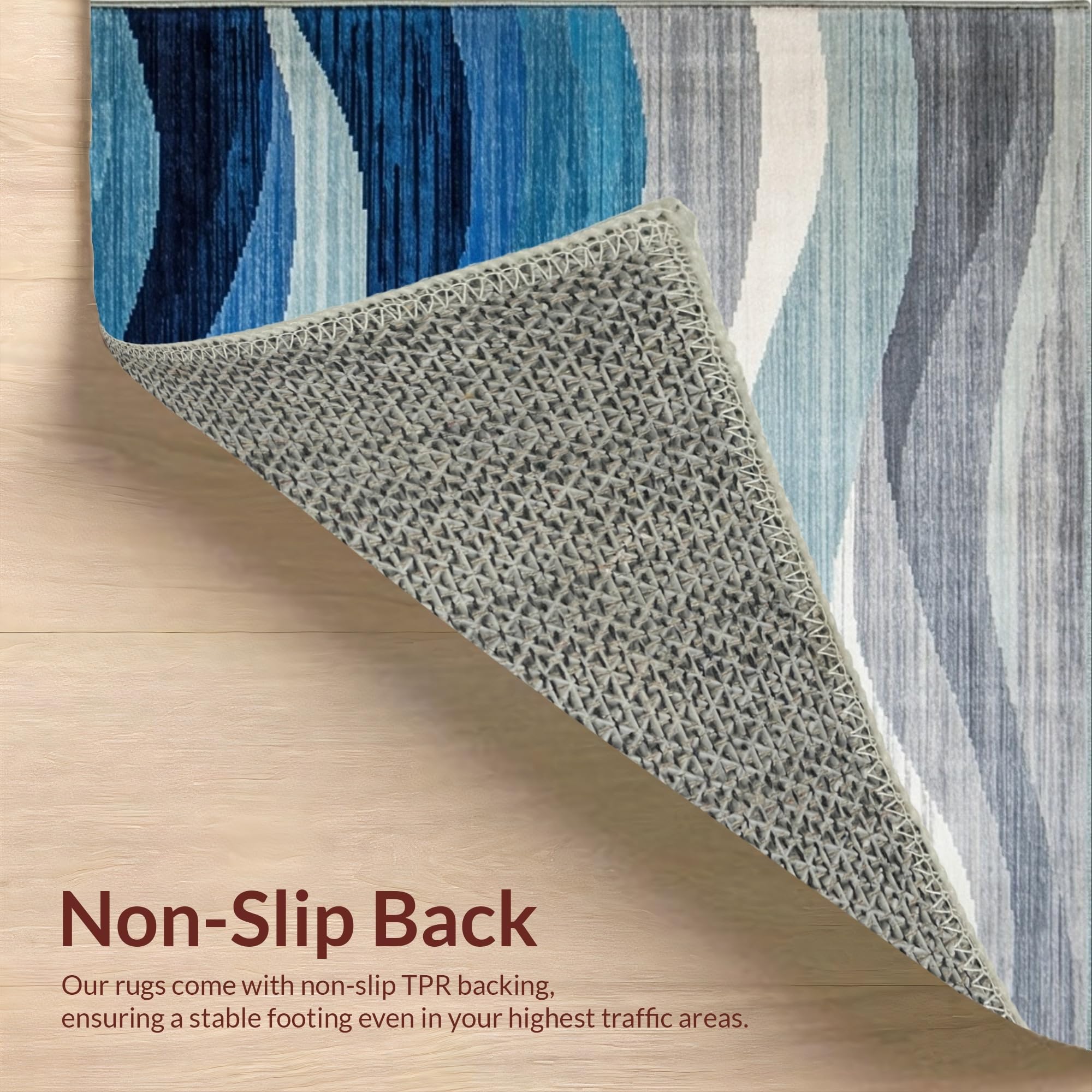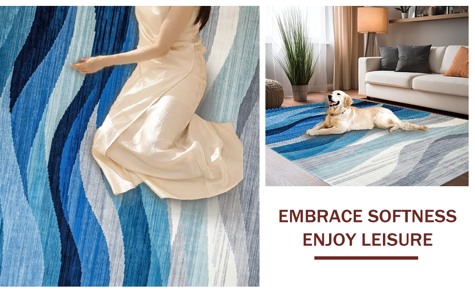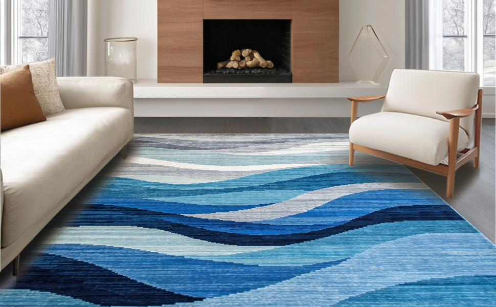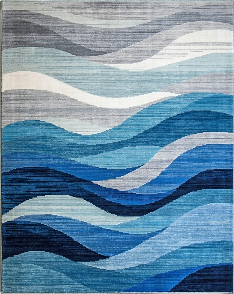 Ultra Soft Area Rug, Non Slip, Stain Resistant, Washable Area Rugs for Living Room, Bedroom, Contemporary Blue Toned Abstract(Blue) Overview: