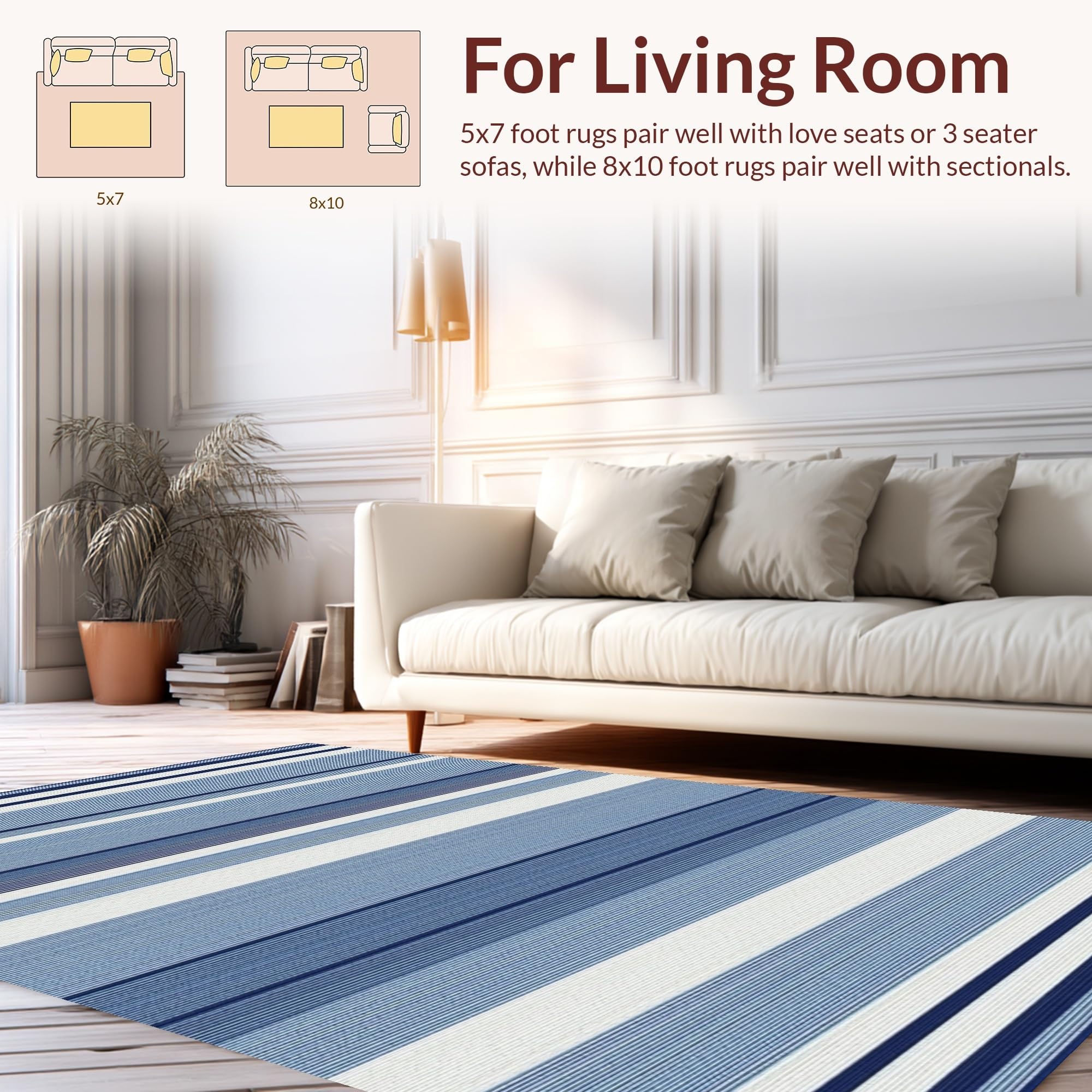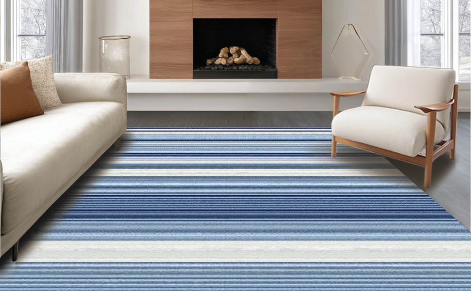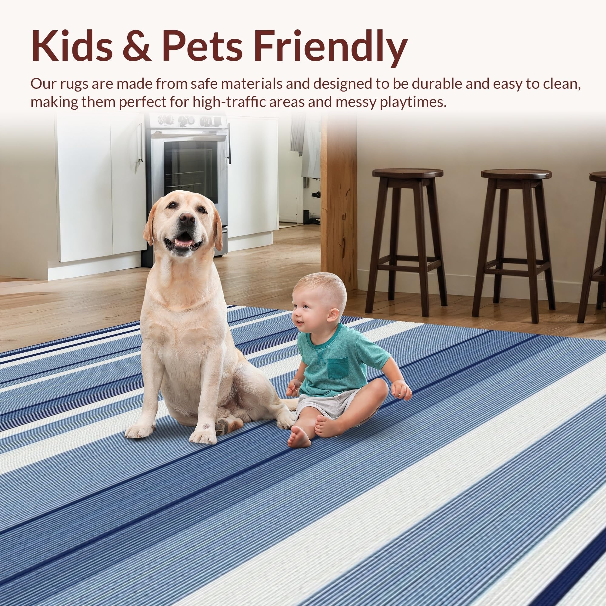 Ultra Soft Area Rug, Non Slip, Stain Resistant, Washable Area Rugs for Living Room, Bedroom, Contemporary Bold Blue Pattern(Blue) Overview: