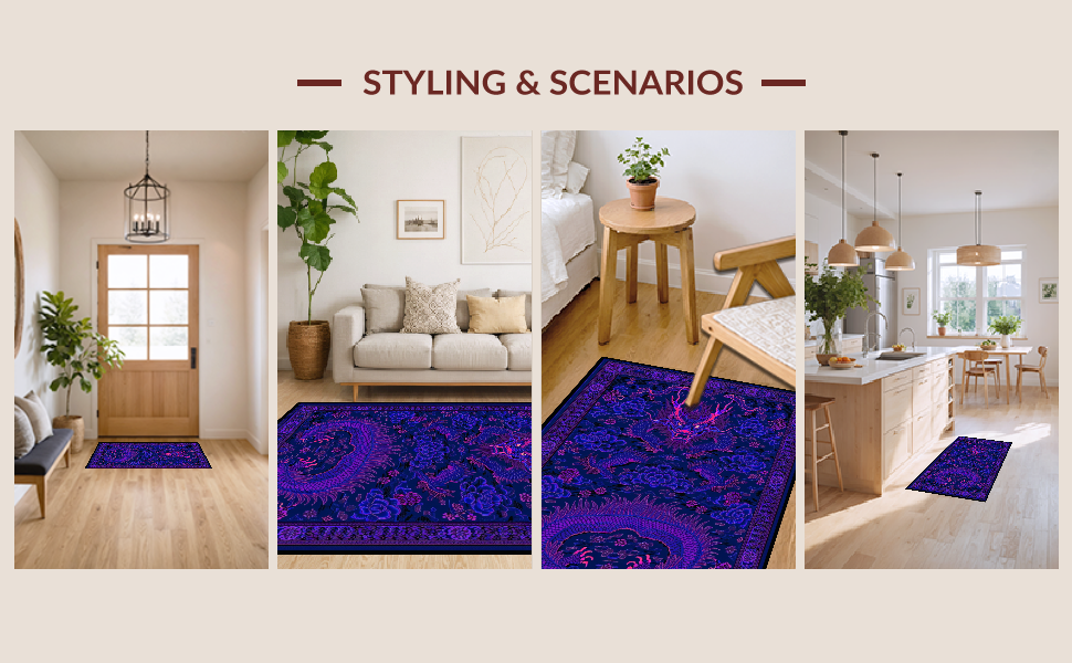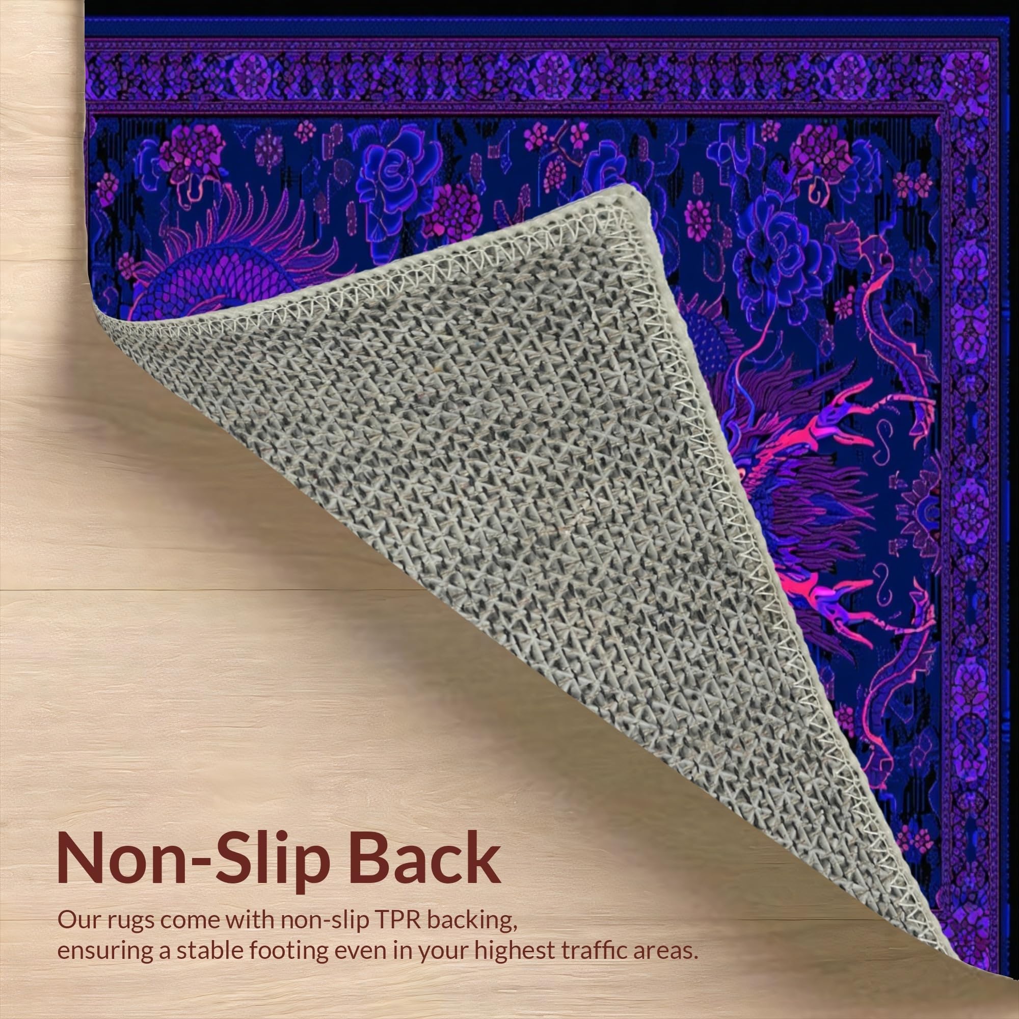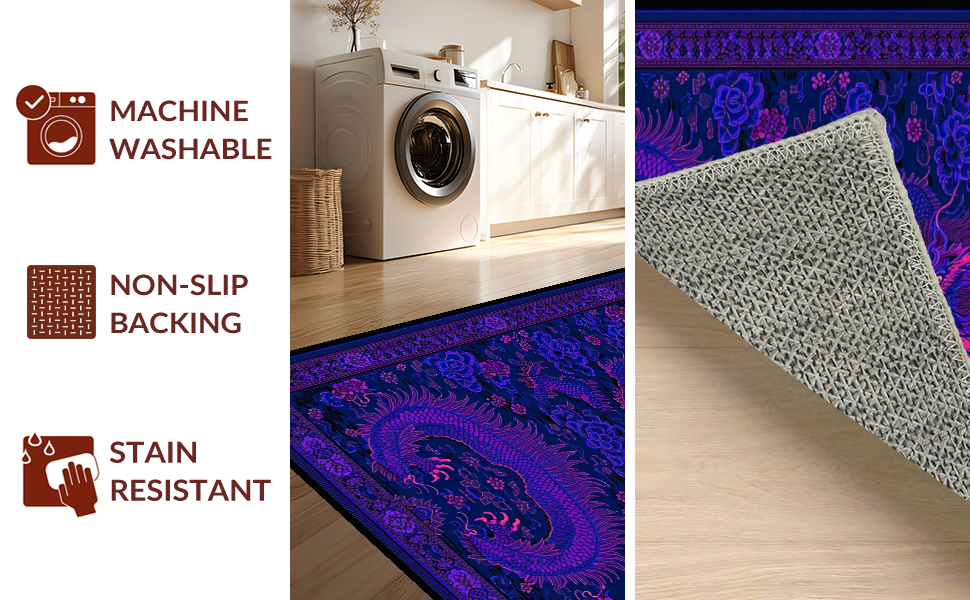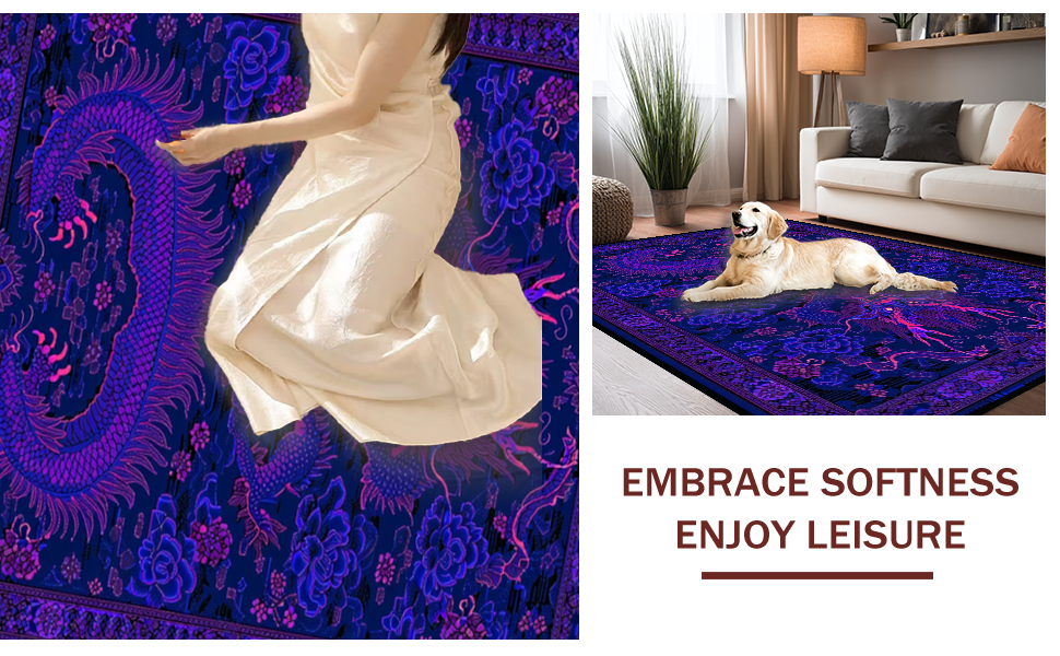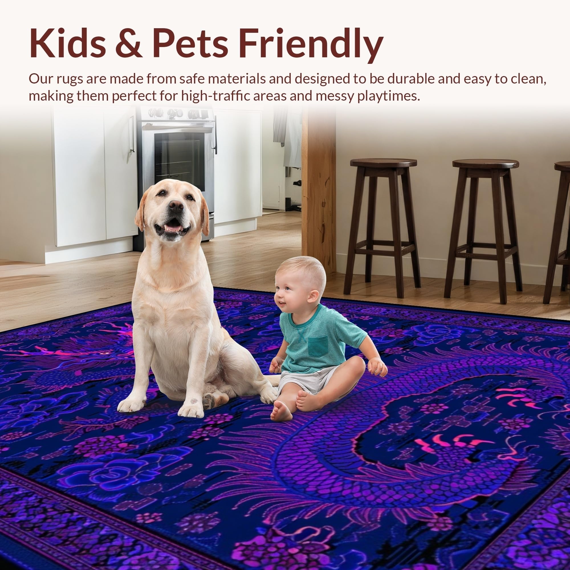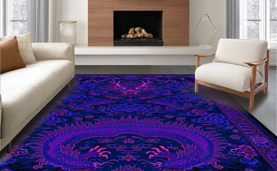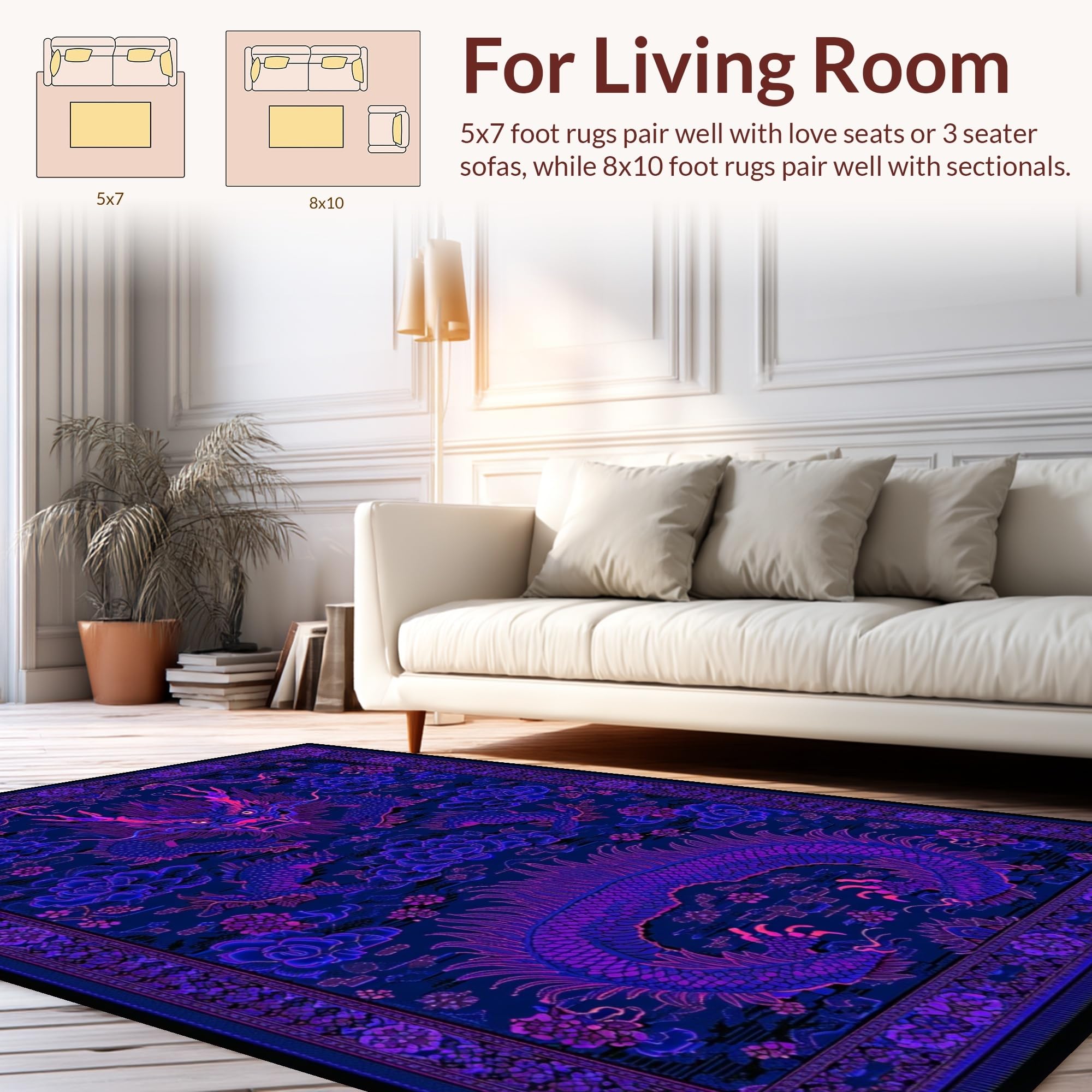 Ultra Soft Area Rug, Non Slip, Stain Resistant, Washable Area Rugs for Living Room, Bedroom, Contemporary Bold Dragon Imagery(Purple) Overview: